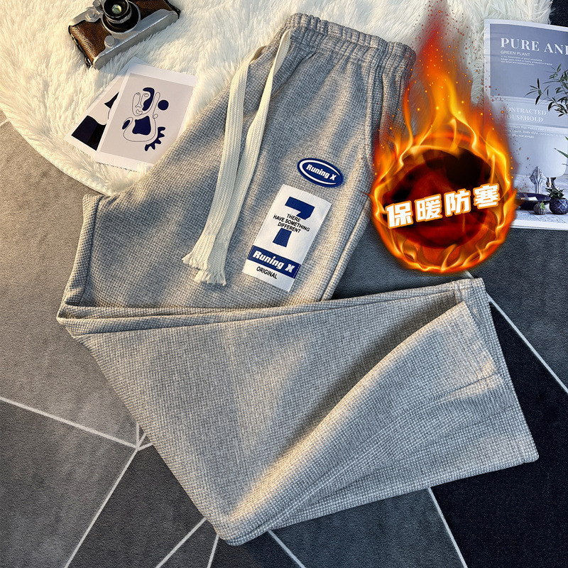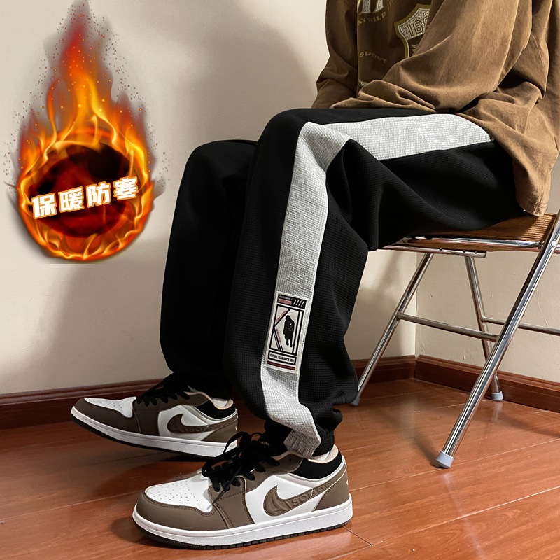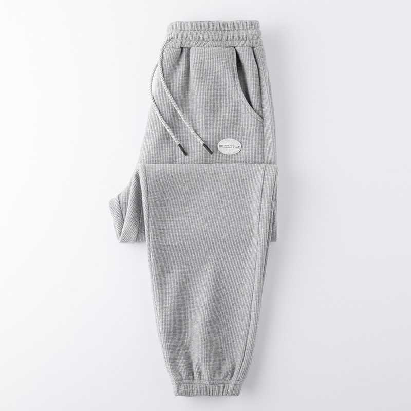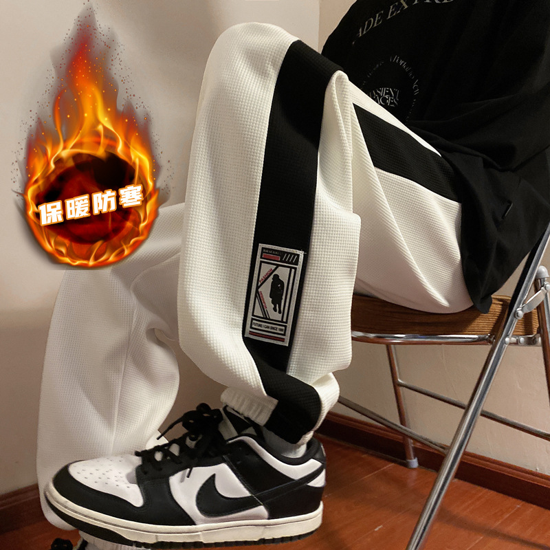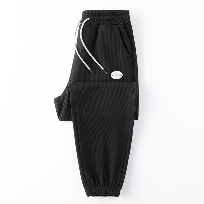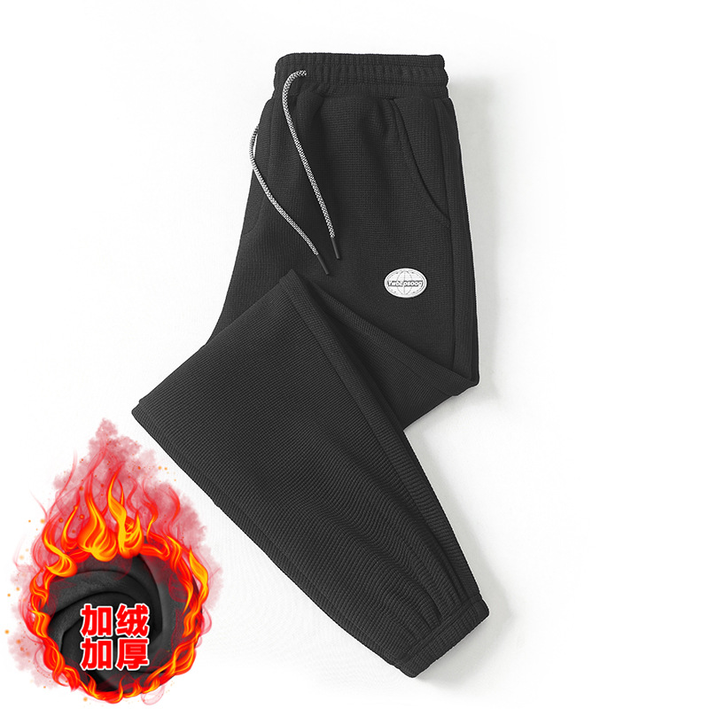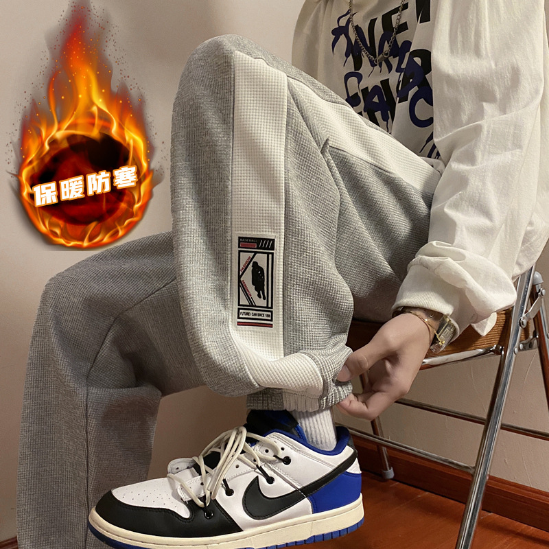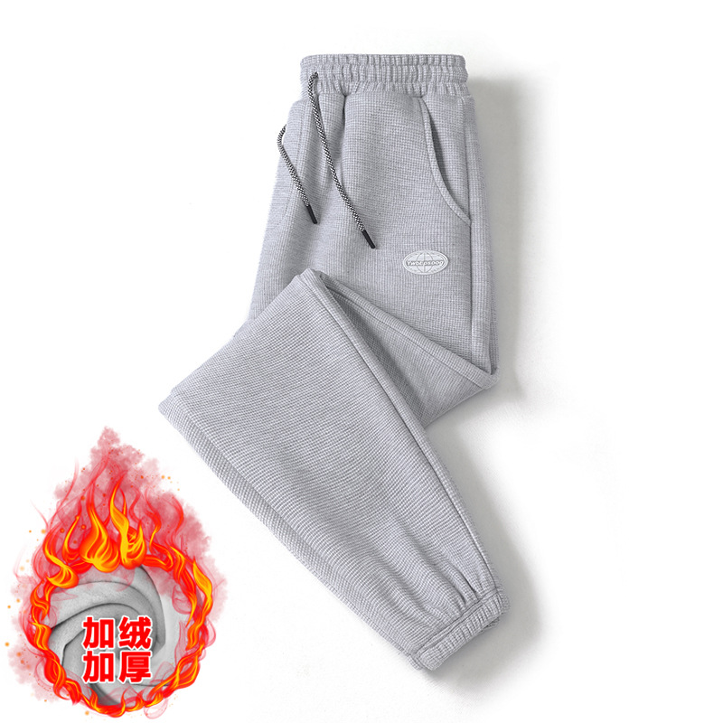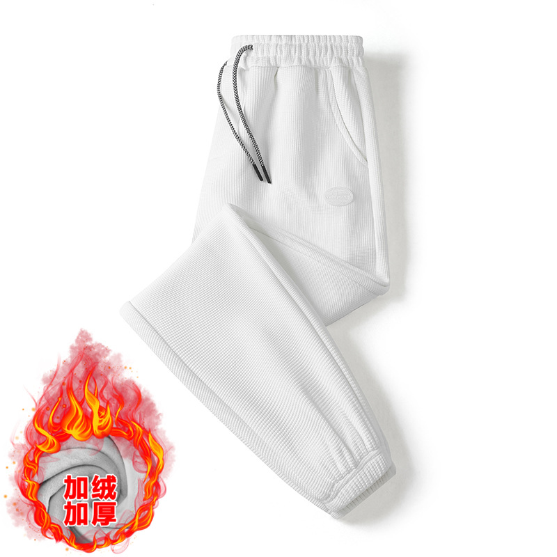 华夫格休闲裤男士秋冬季加绒新款潮流束脚卫裤抽绳宽松运动长裤男