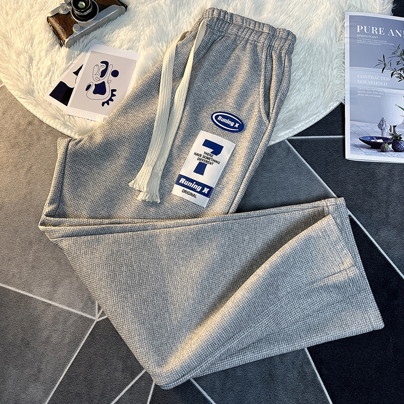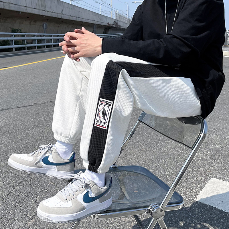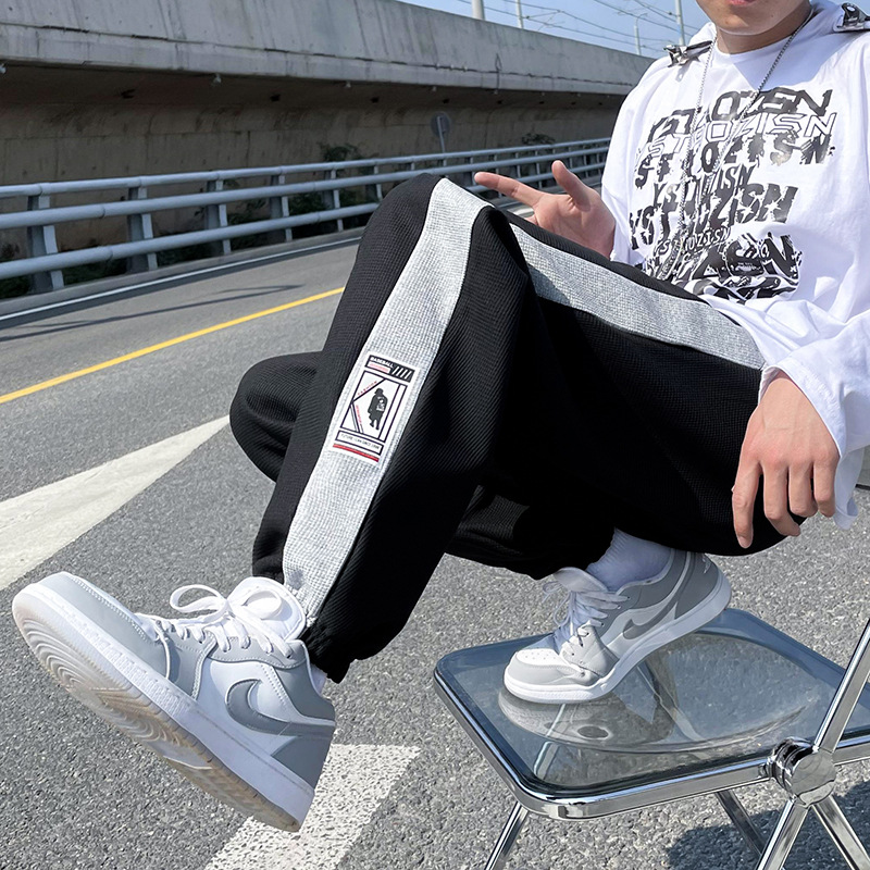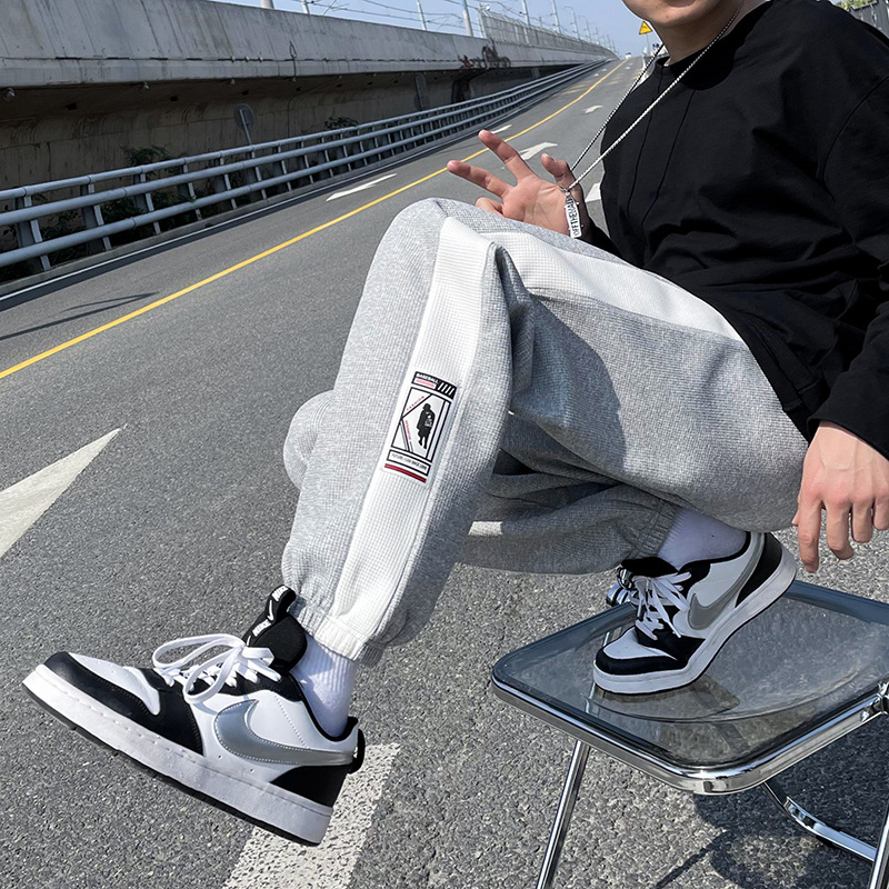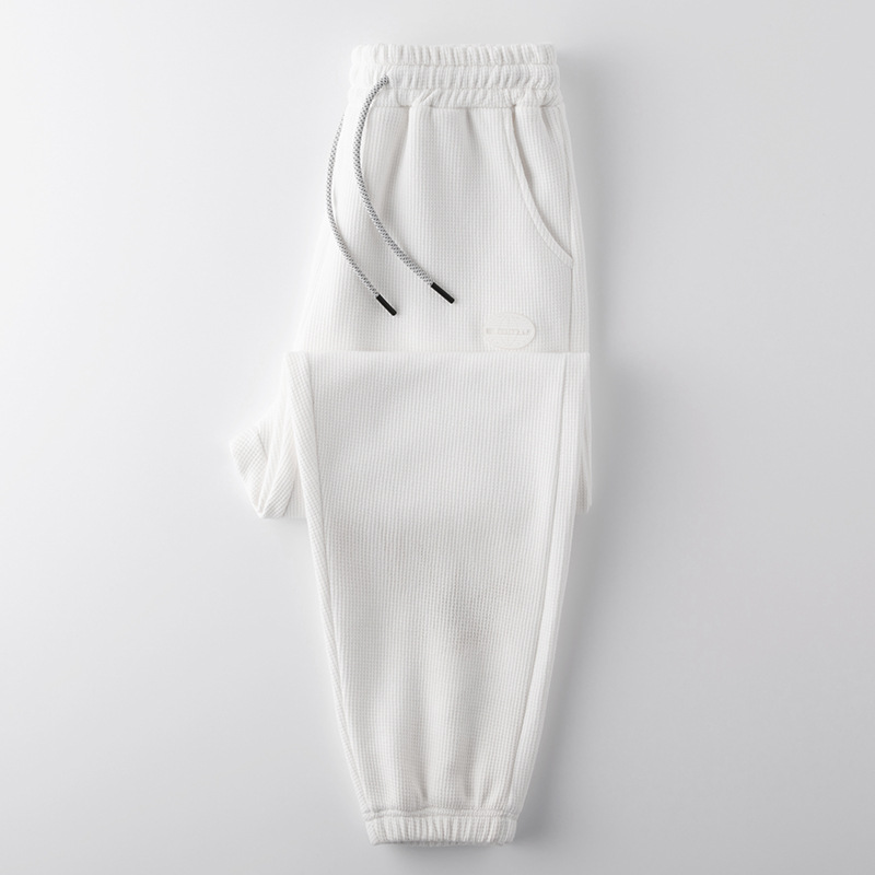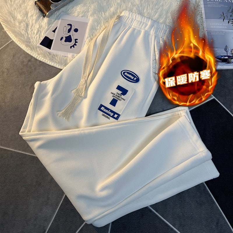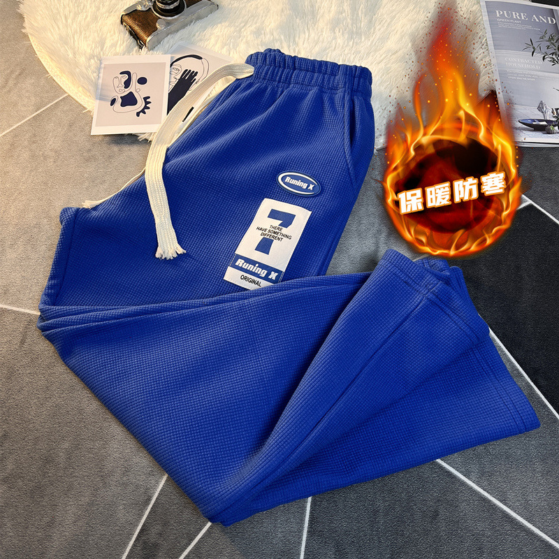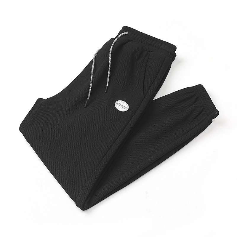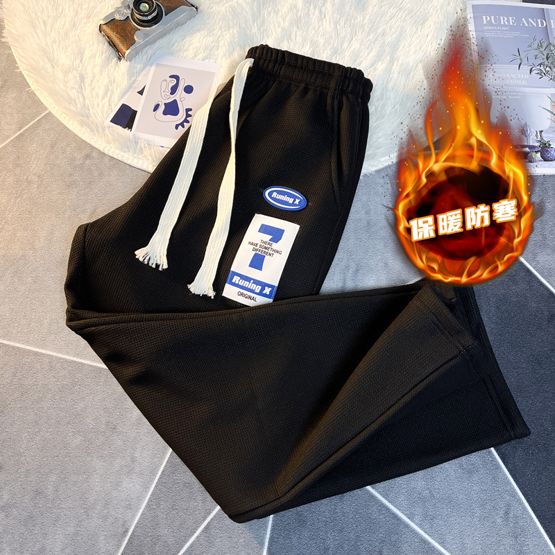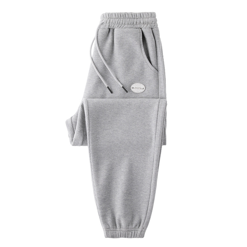 华夫格休闲裤男士秋冬季加绒新款潮流束脚卫裤抽绳宽松运动长裤男