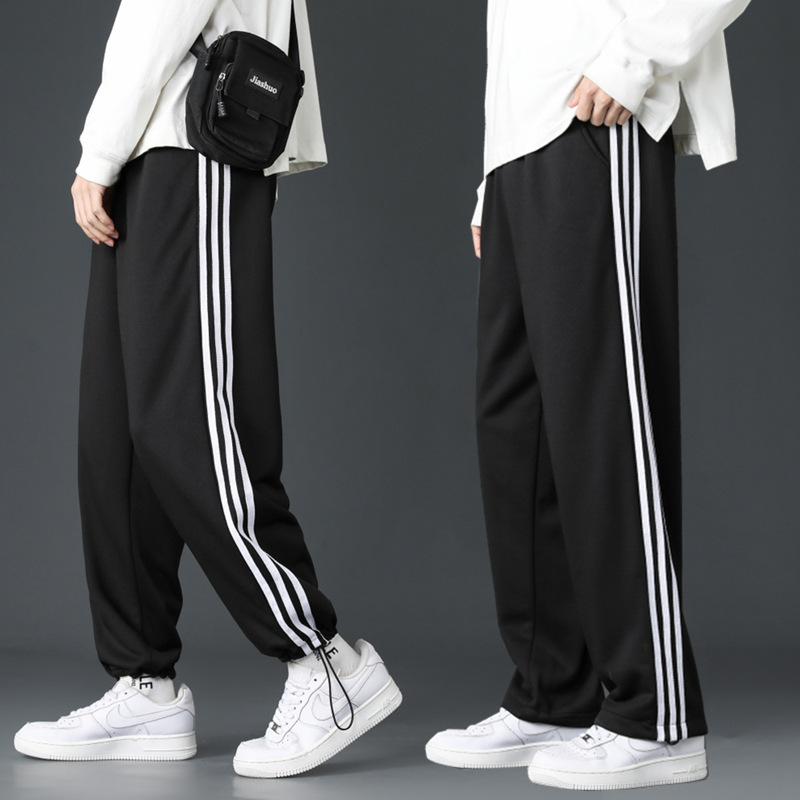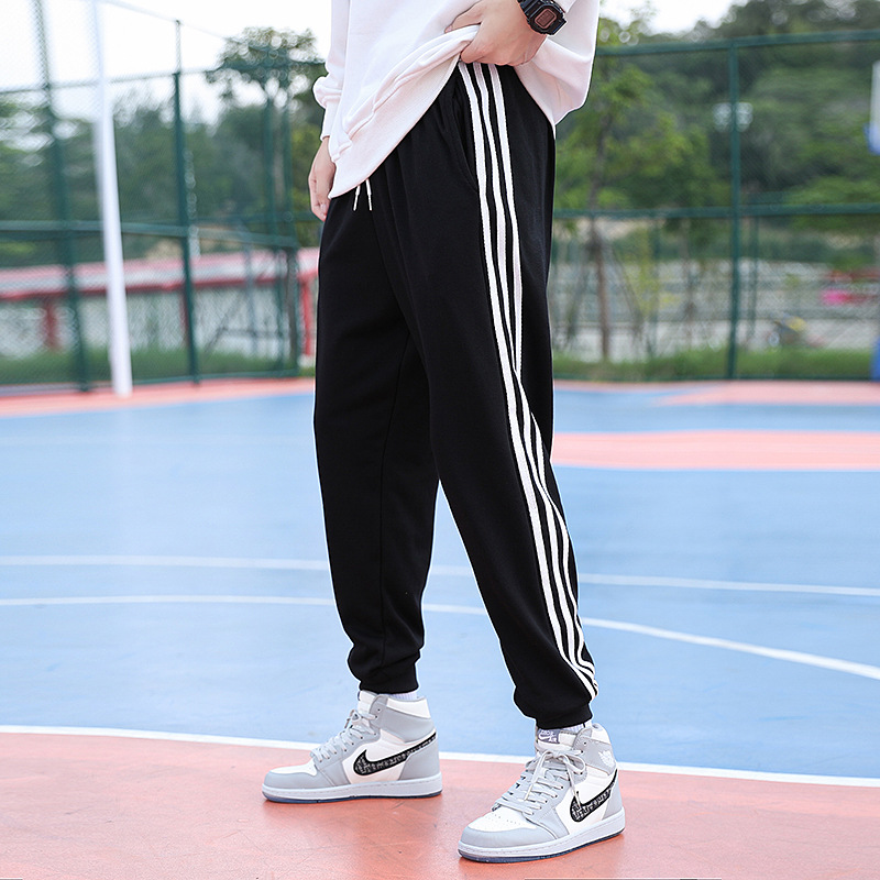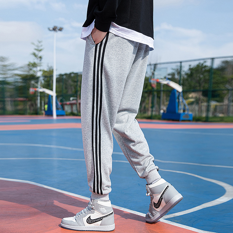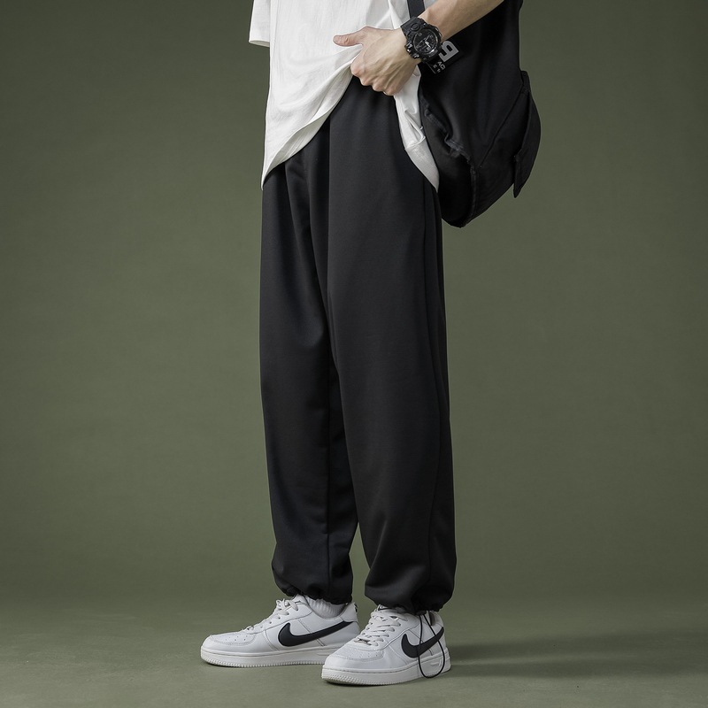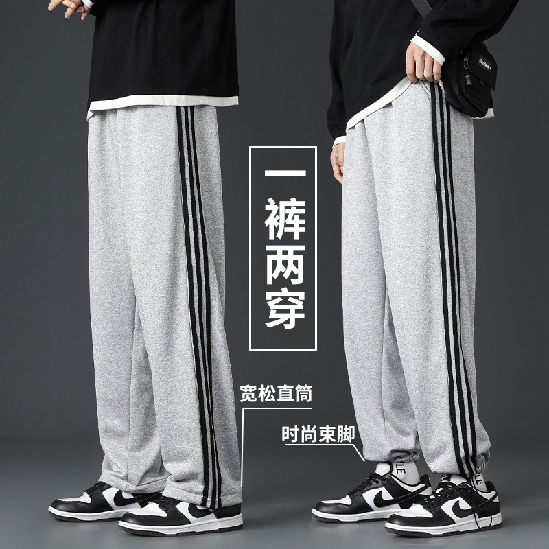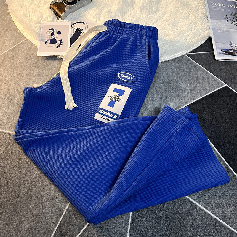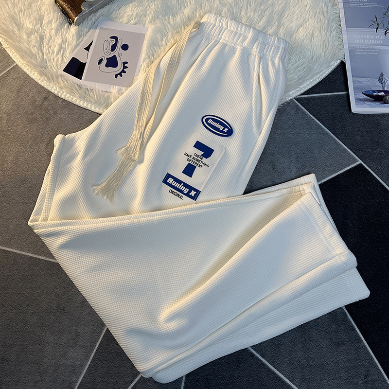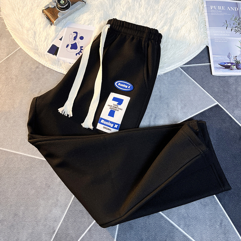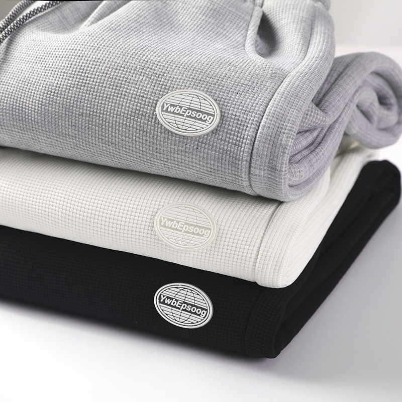 华夫格休闲裤男士秋冬季加绒新款潮流束脚卫裤抽绳宽松运动长裤男
