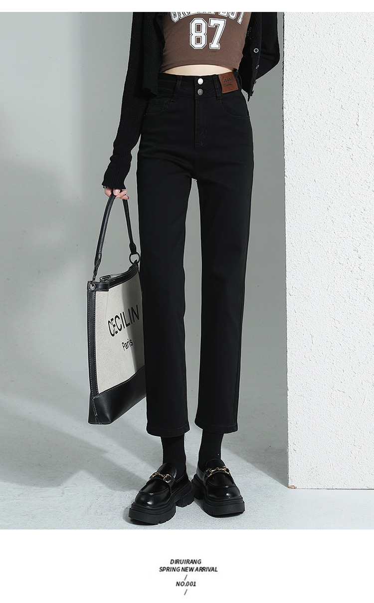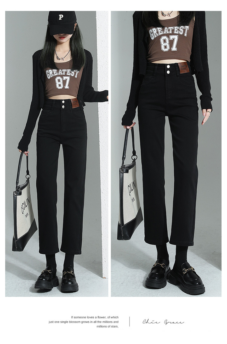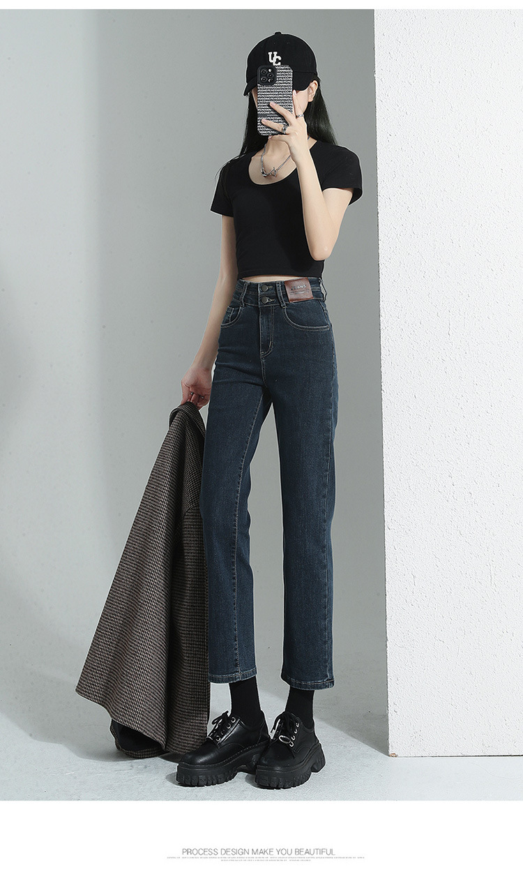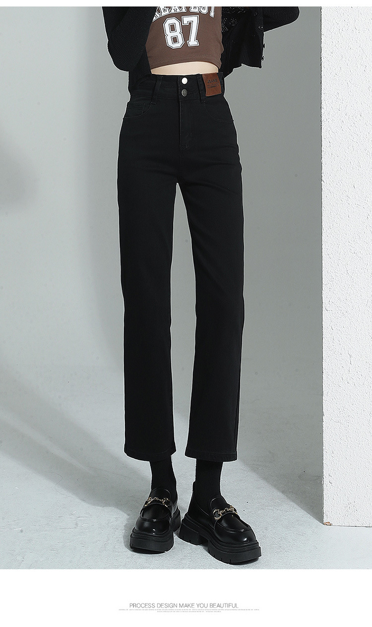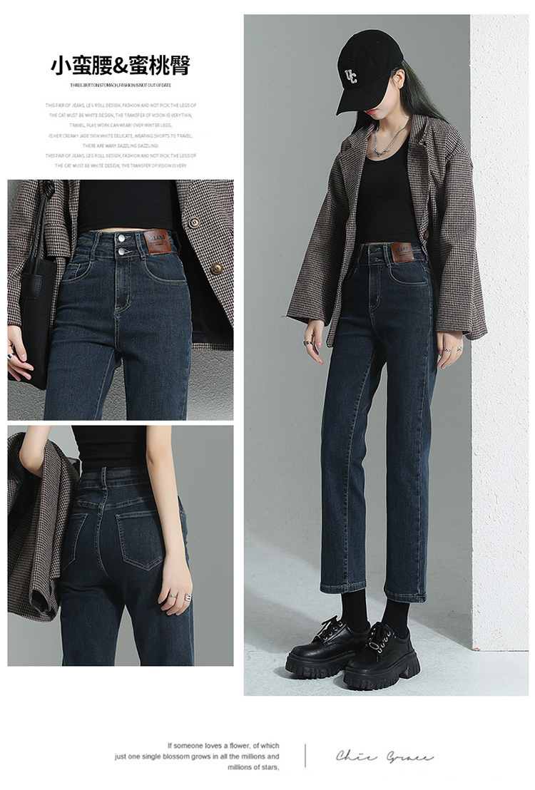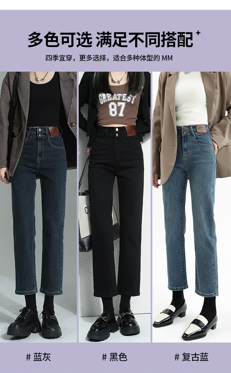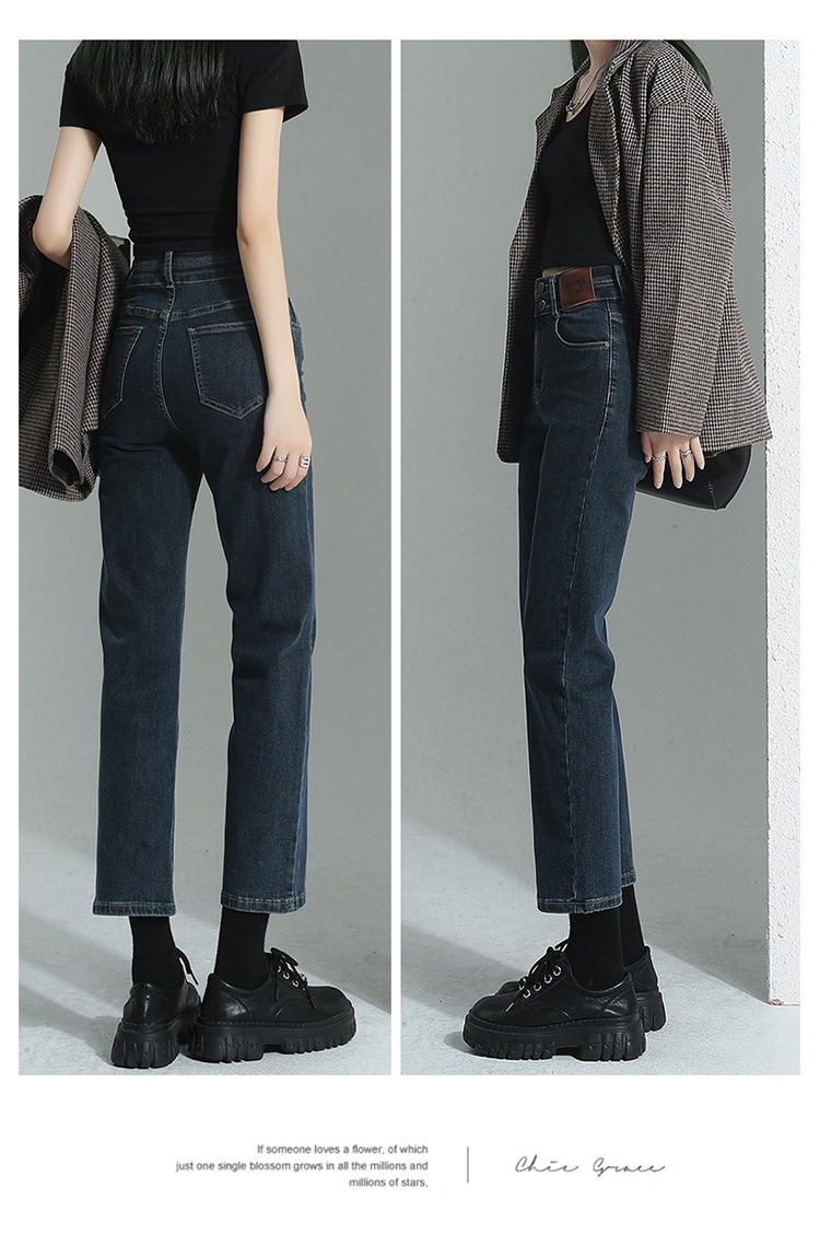 加绒加厚高腰九分直筒牛仔裤女2023秋冬新款弹力修身显瘦烟管裤子