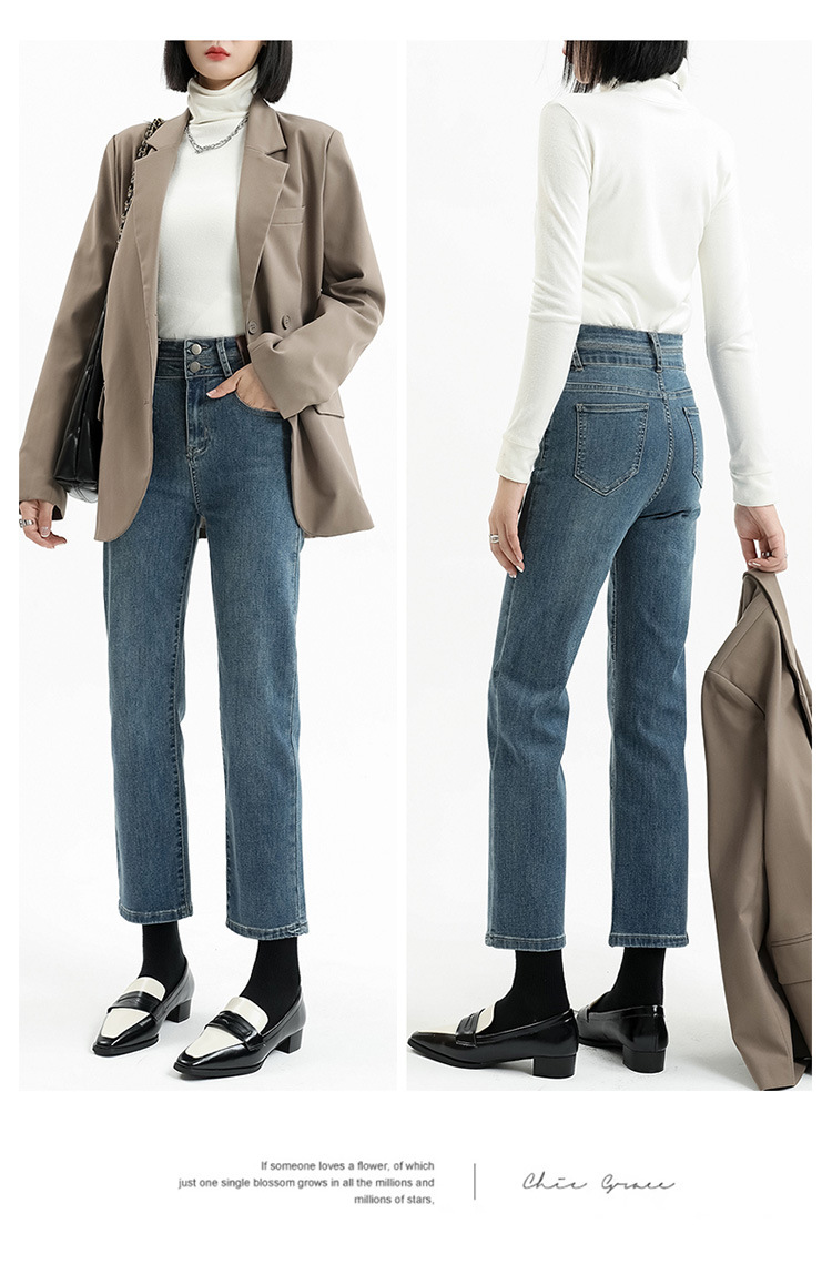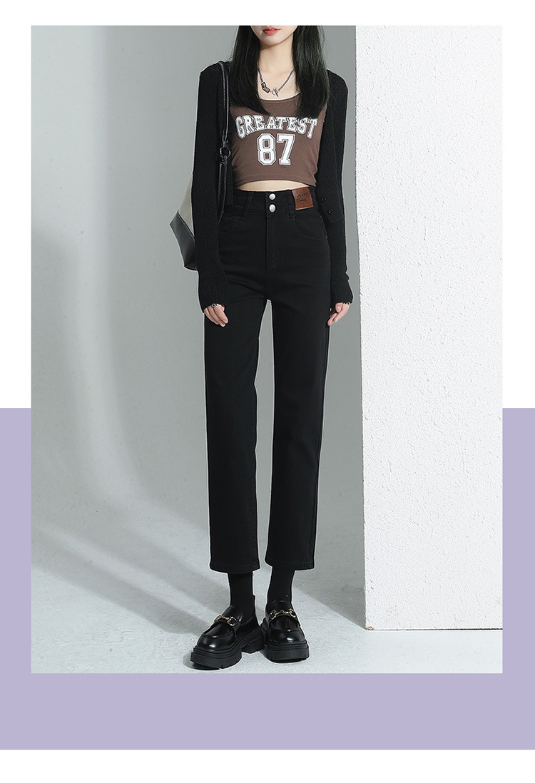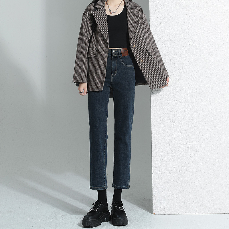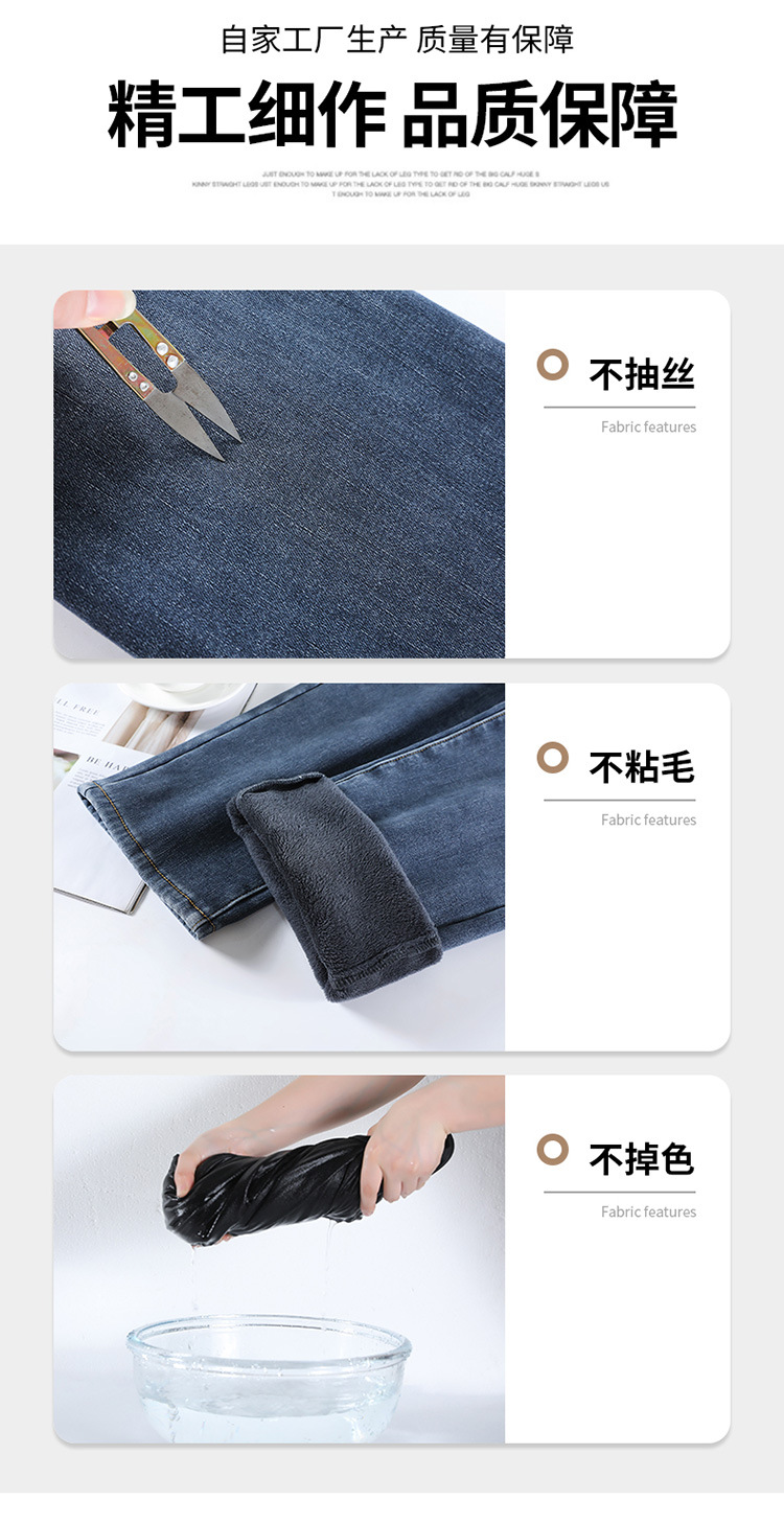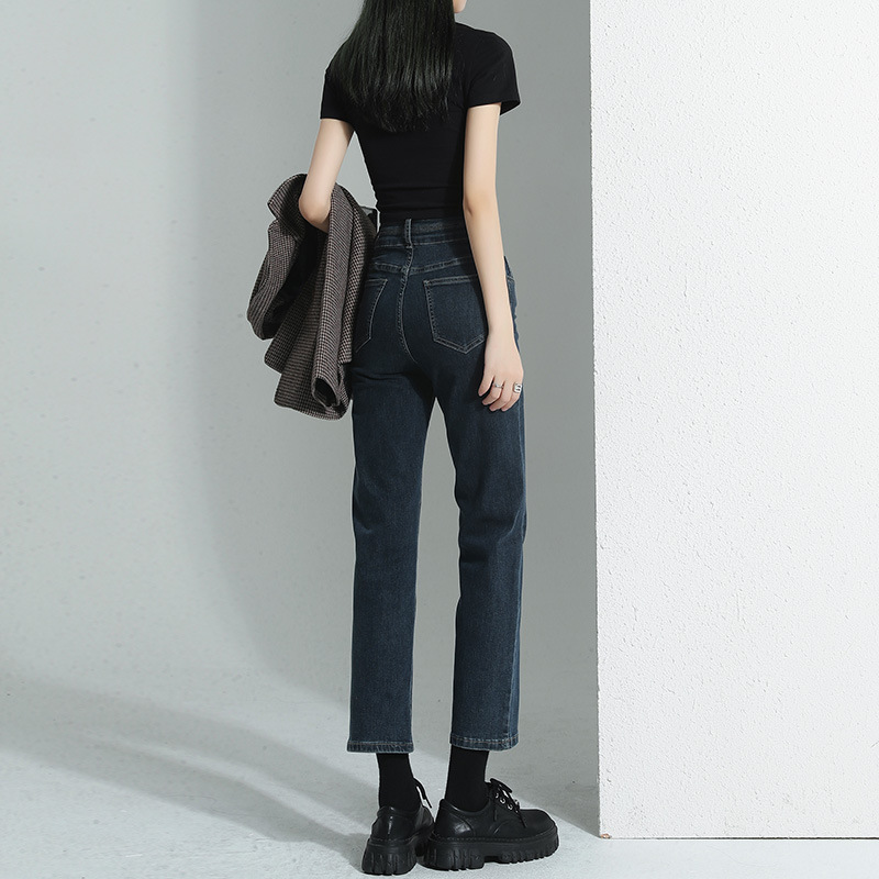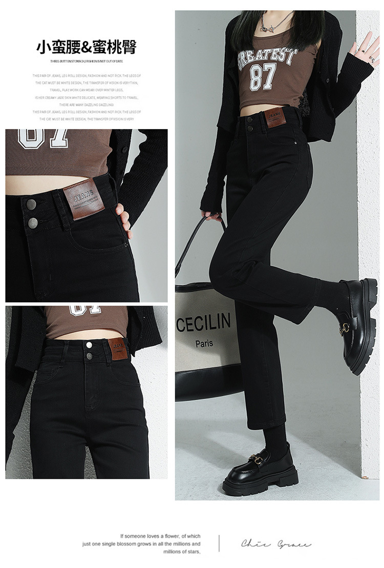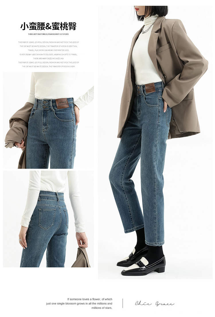加绒加厚高腰九分直筒牛仔裤女2023秋冬新款弹力修身显瘦烟管裤子