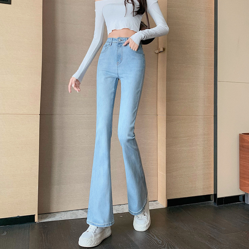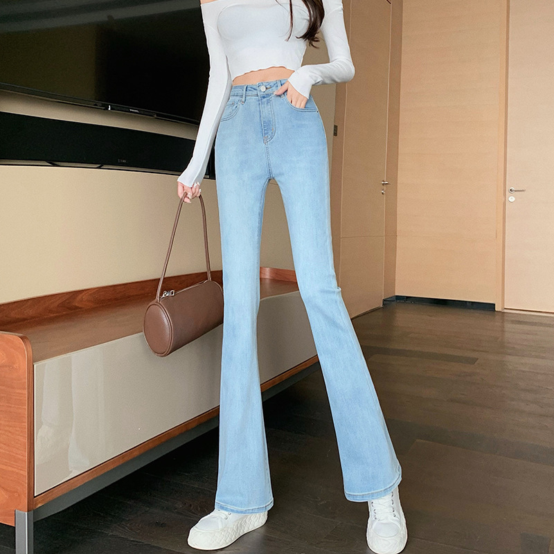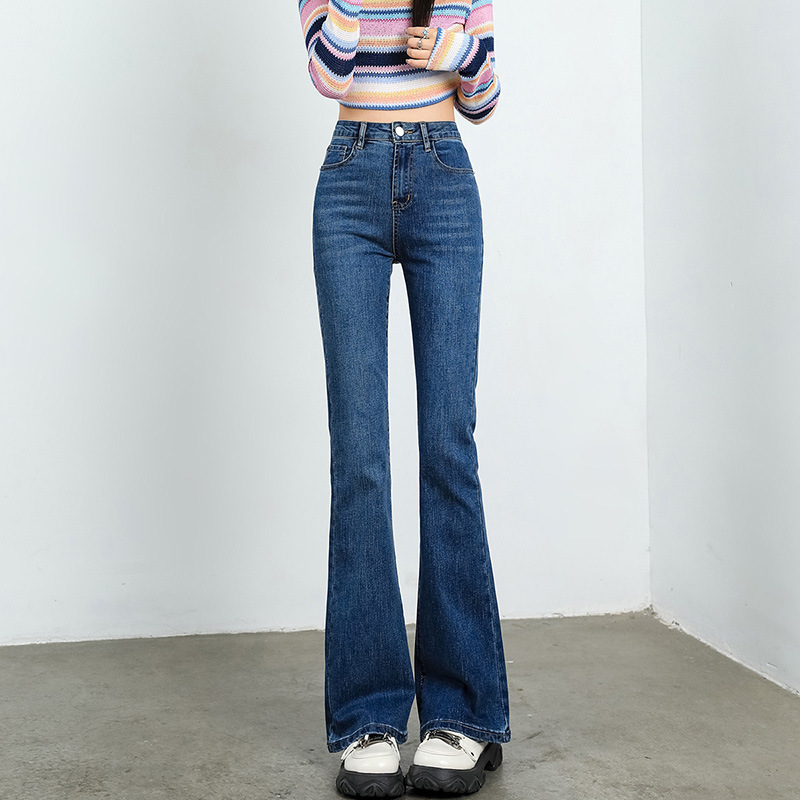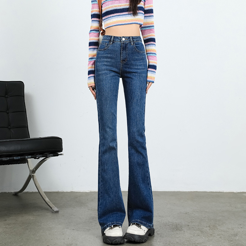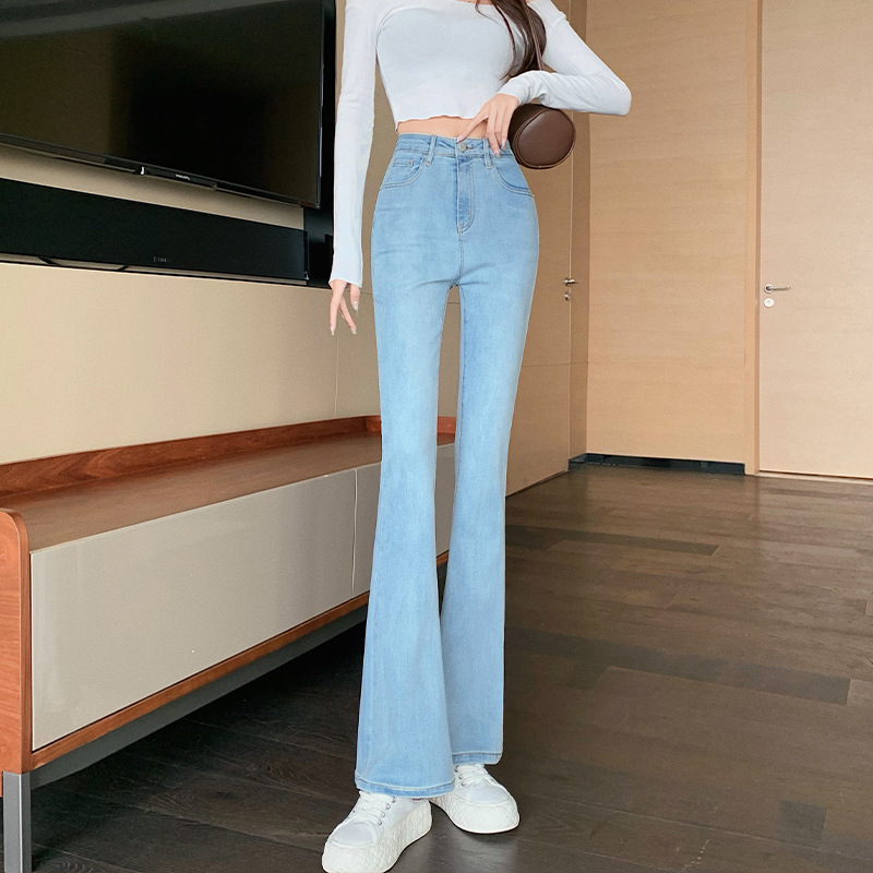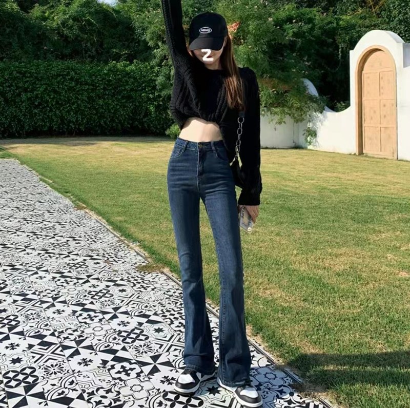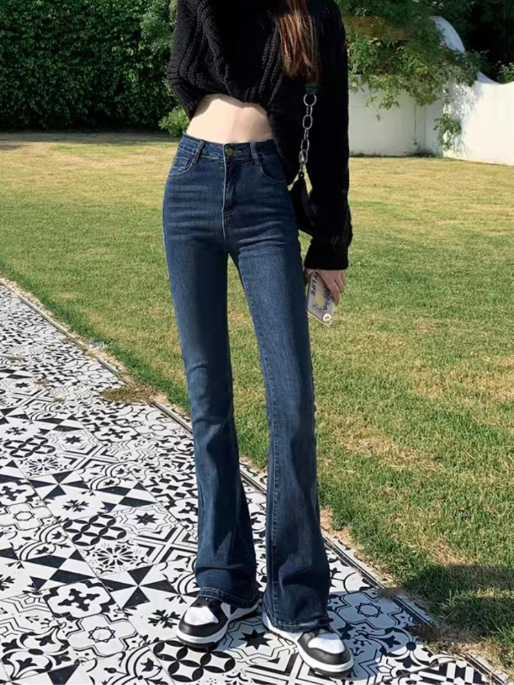 加绒牛仔裤女士马蹄微喇叭裤秋冬季2023新款高腰弹力阔腿黑色显瘦