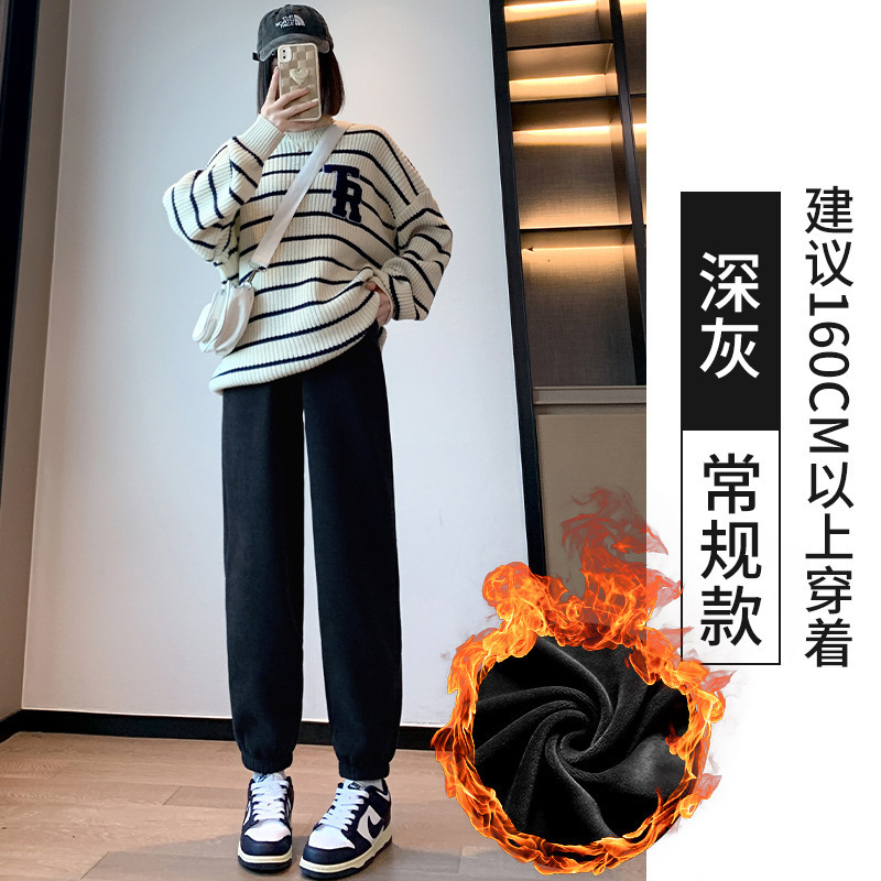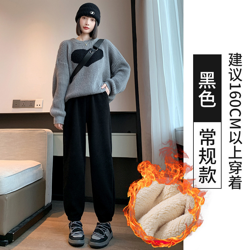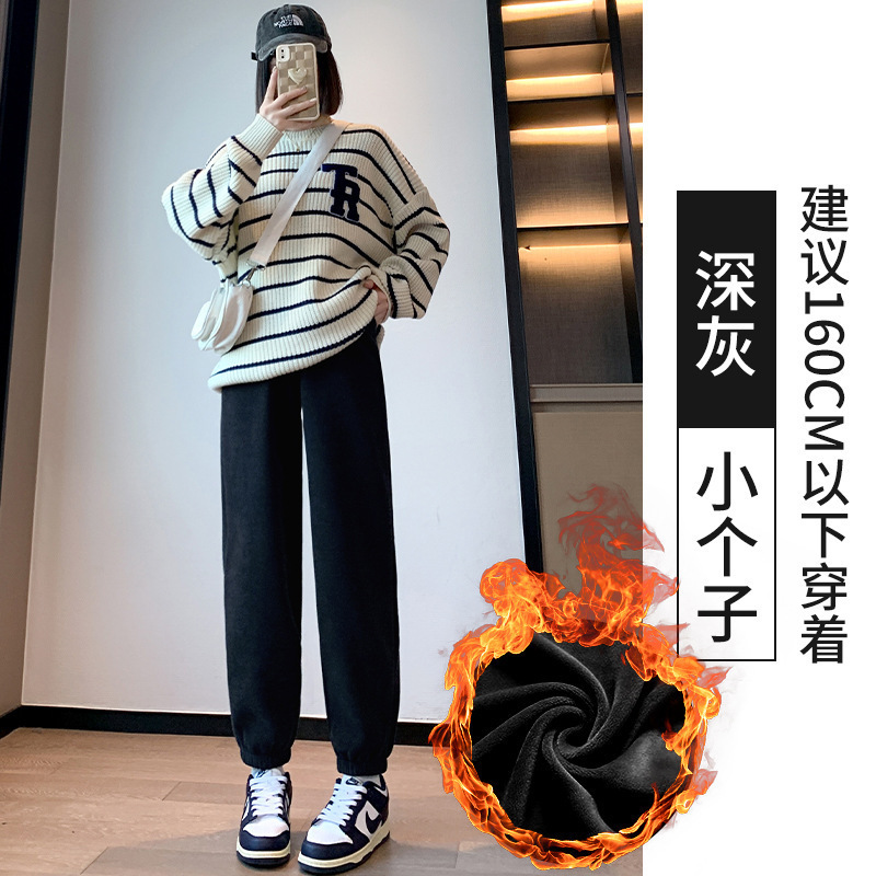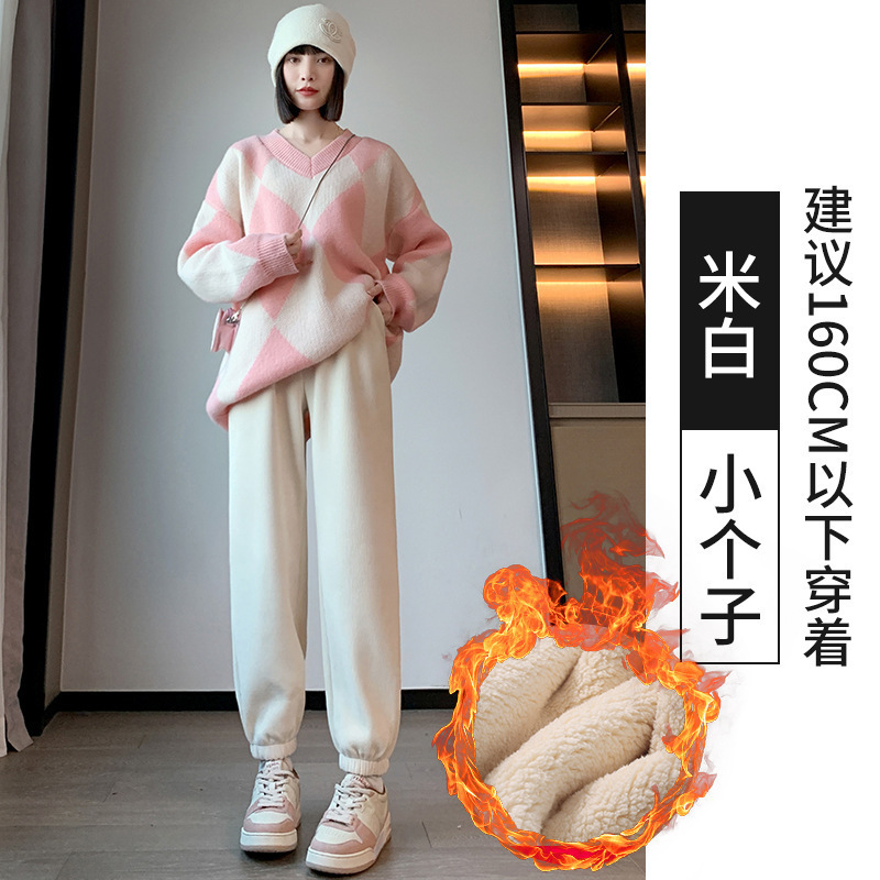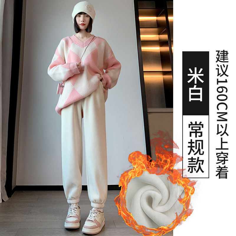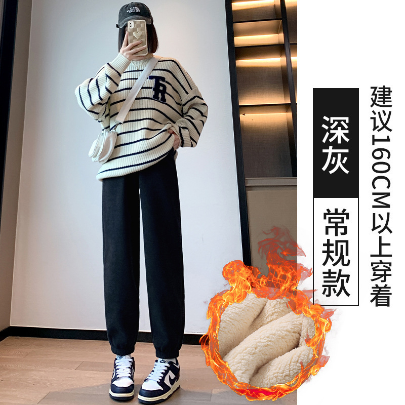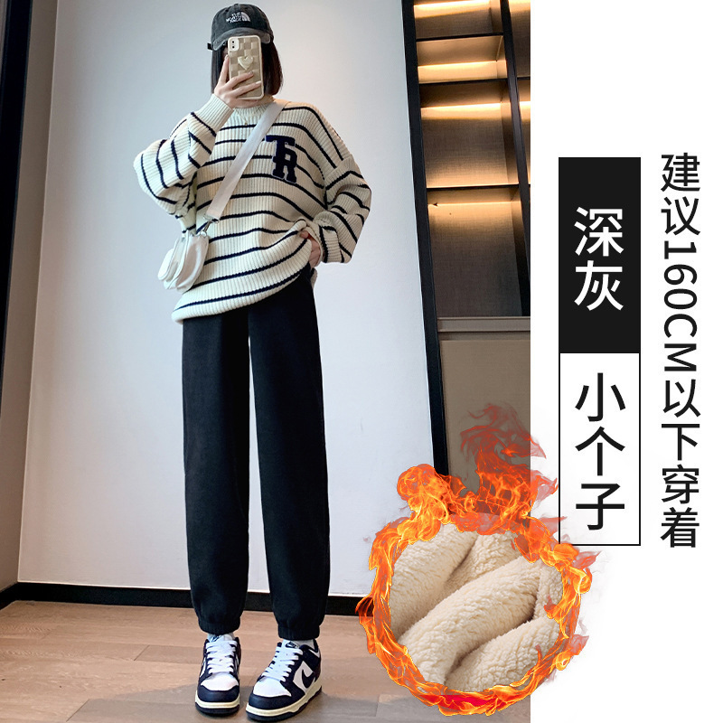 加绒束脚运动裤女秋冬新款高腰加厚羊羔绒休闲裤外穿保暖显瘦卫裤