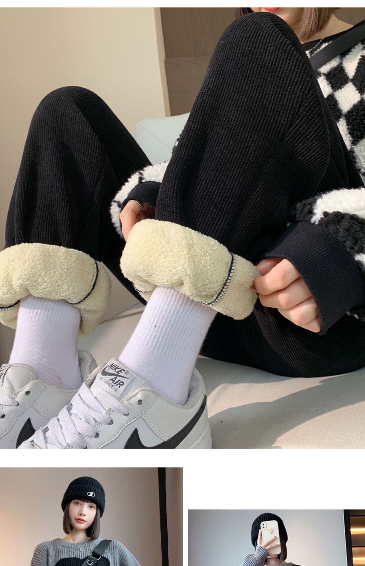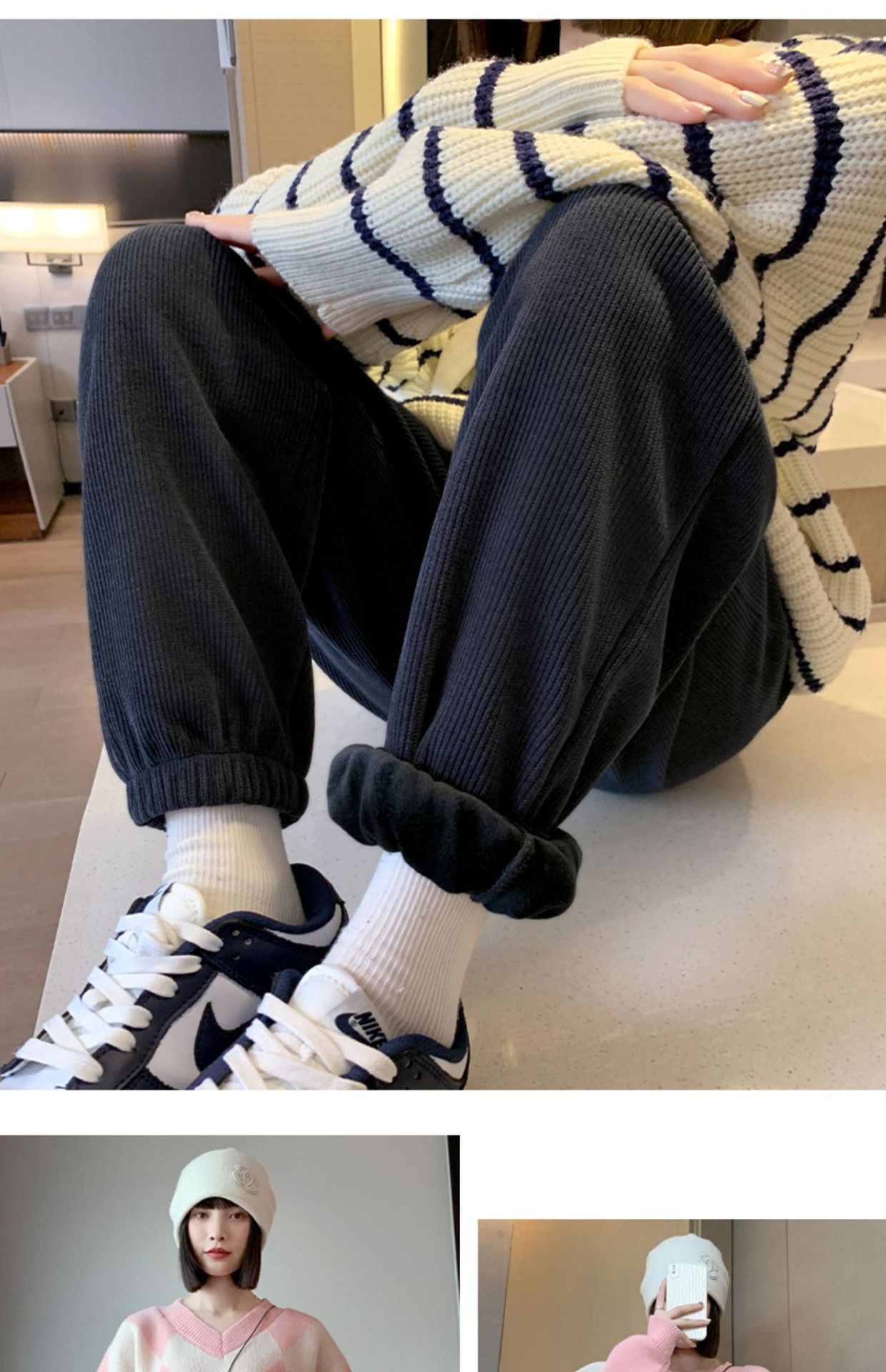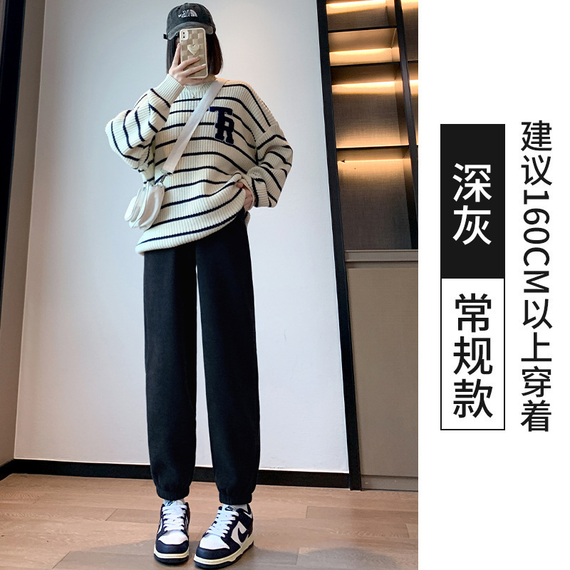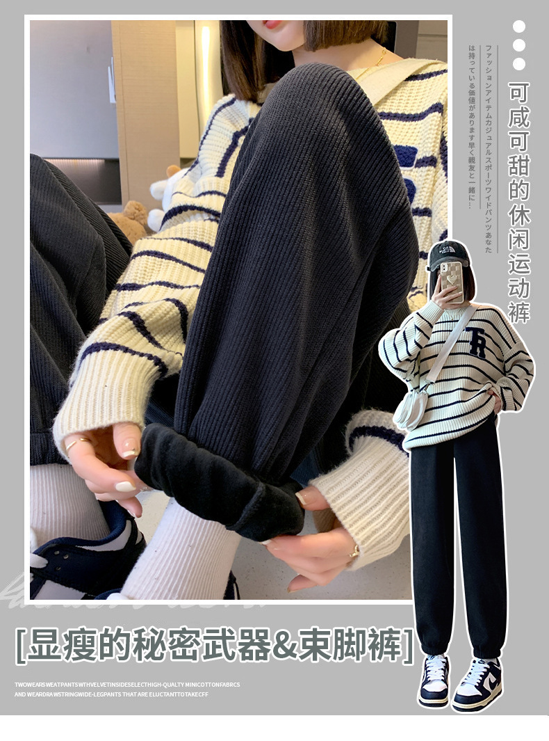 加绒束脚运动裤女秋冬新款高腰加厚羊羔绒休闲裤外穿保暖显瘦卫裤
