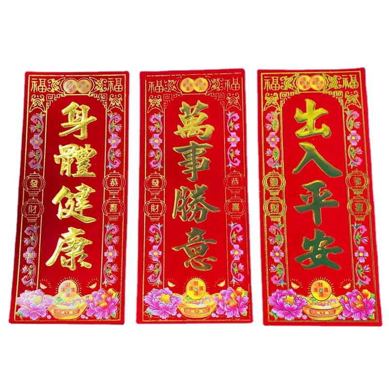 挥春新年高档植绒挥春节门贴门条门幅利是钱四字竖联小对联吊钱
