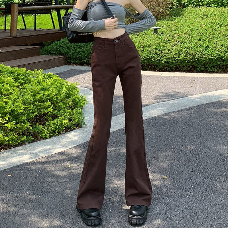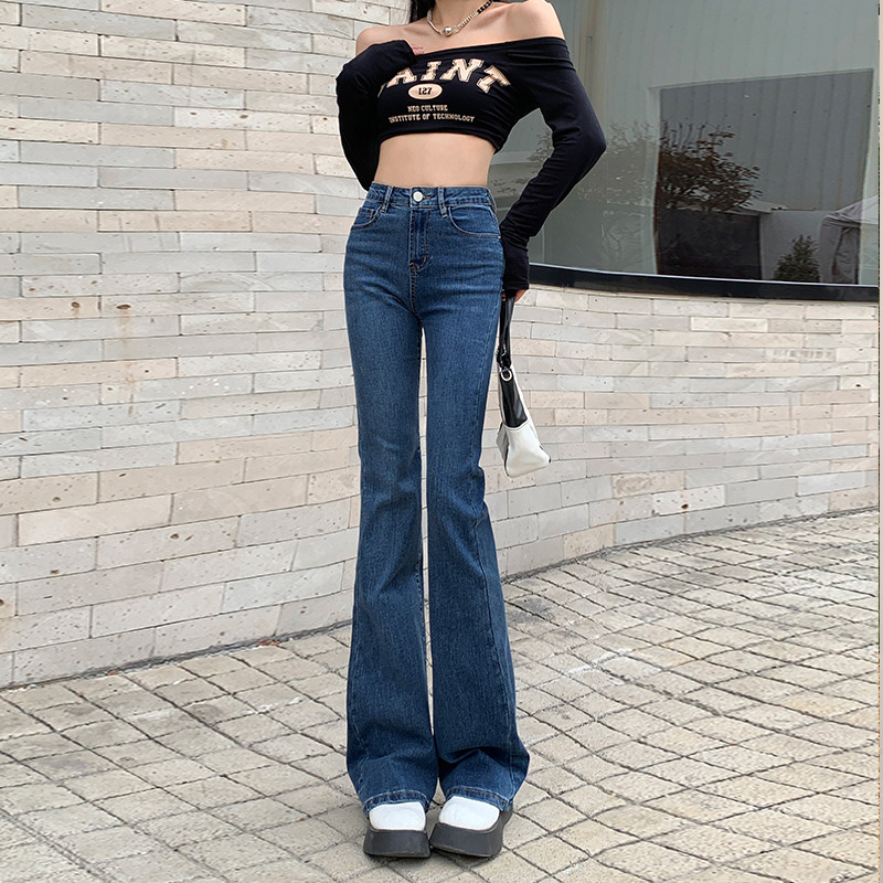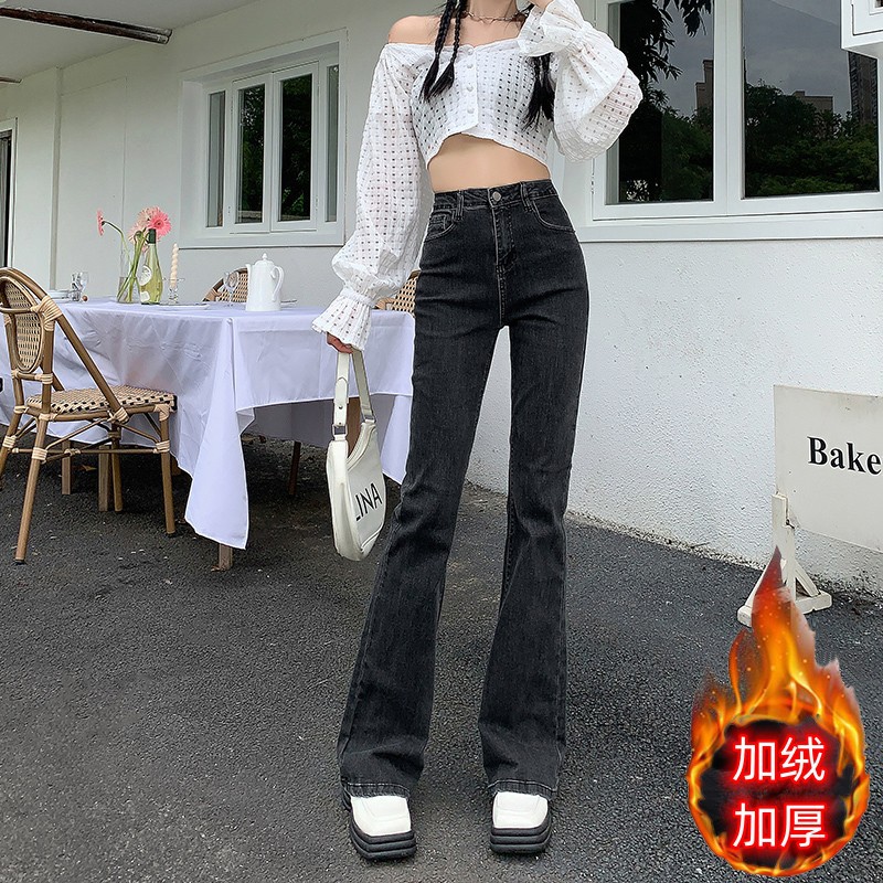 加绒加厚喇叭牛仔裤女秋冬新款高腰弹力紧身显瘦保暖微喇拖地长裤