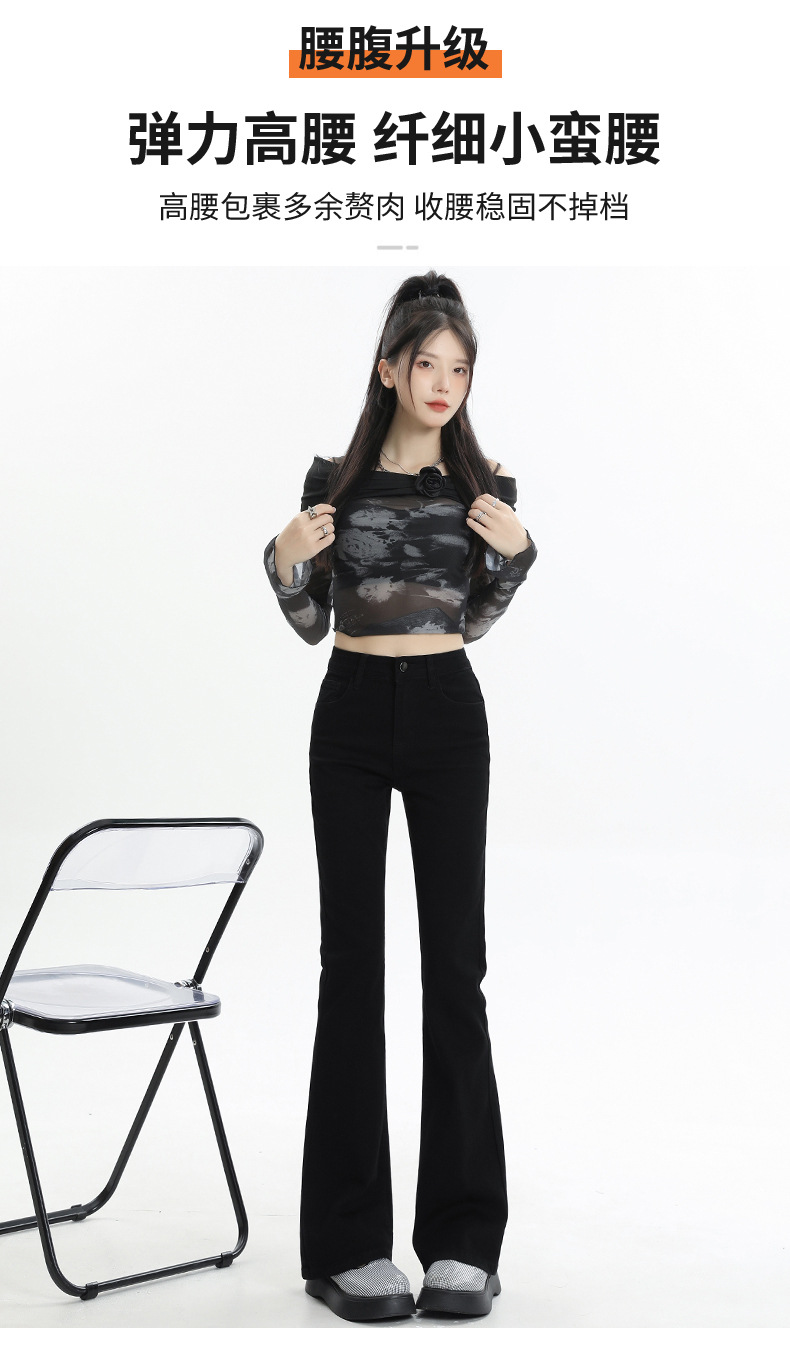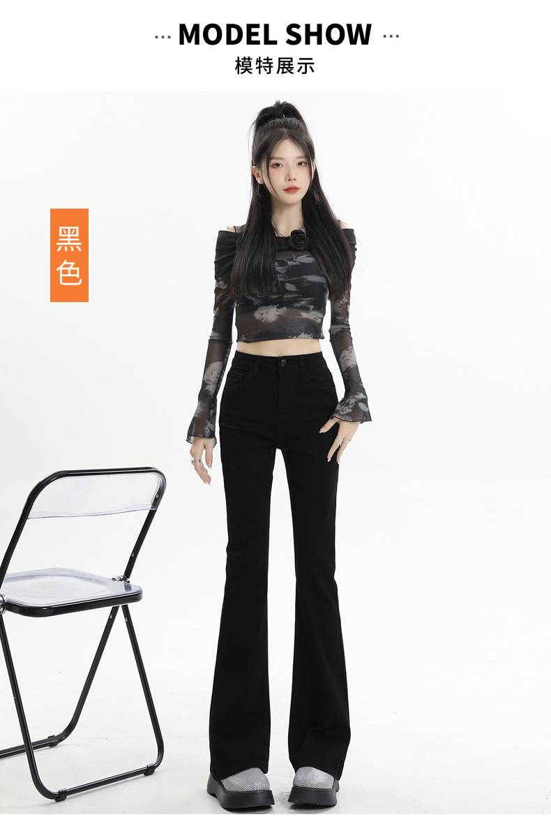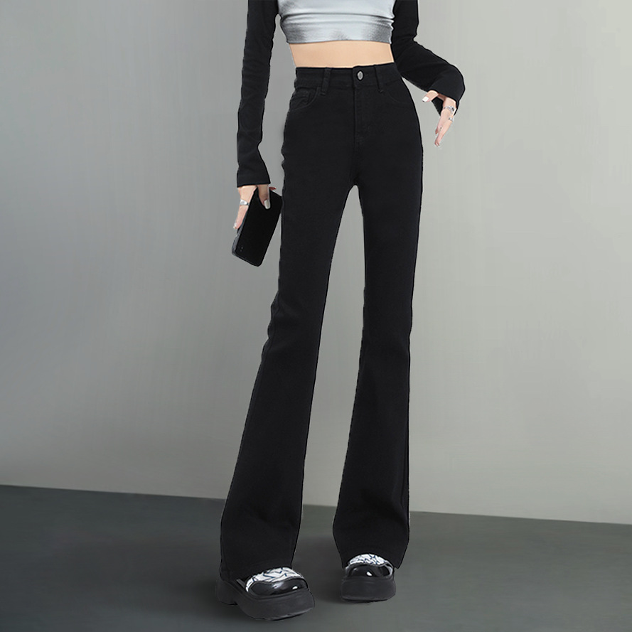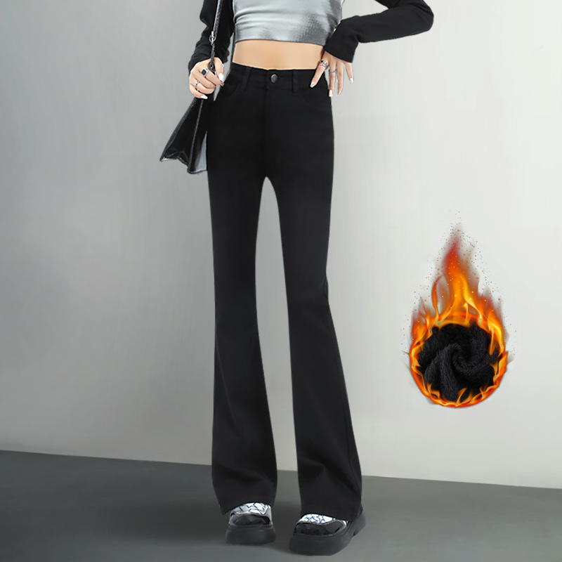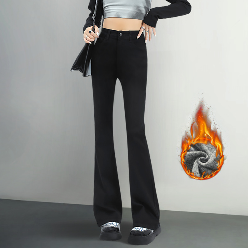 黑色微喇高腰牛仔裤女秋冬新款显瘦修身加绒加厚保暖弹力喇叭长款