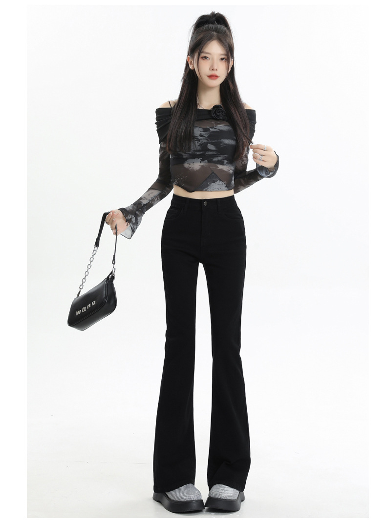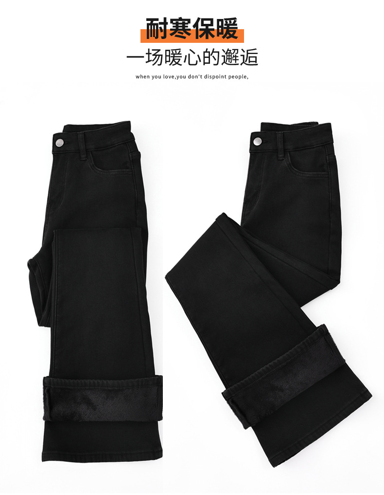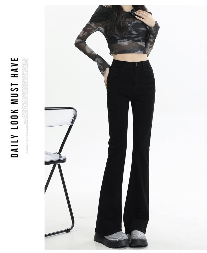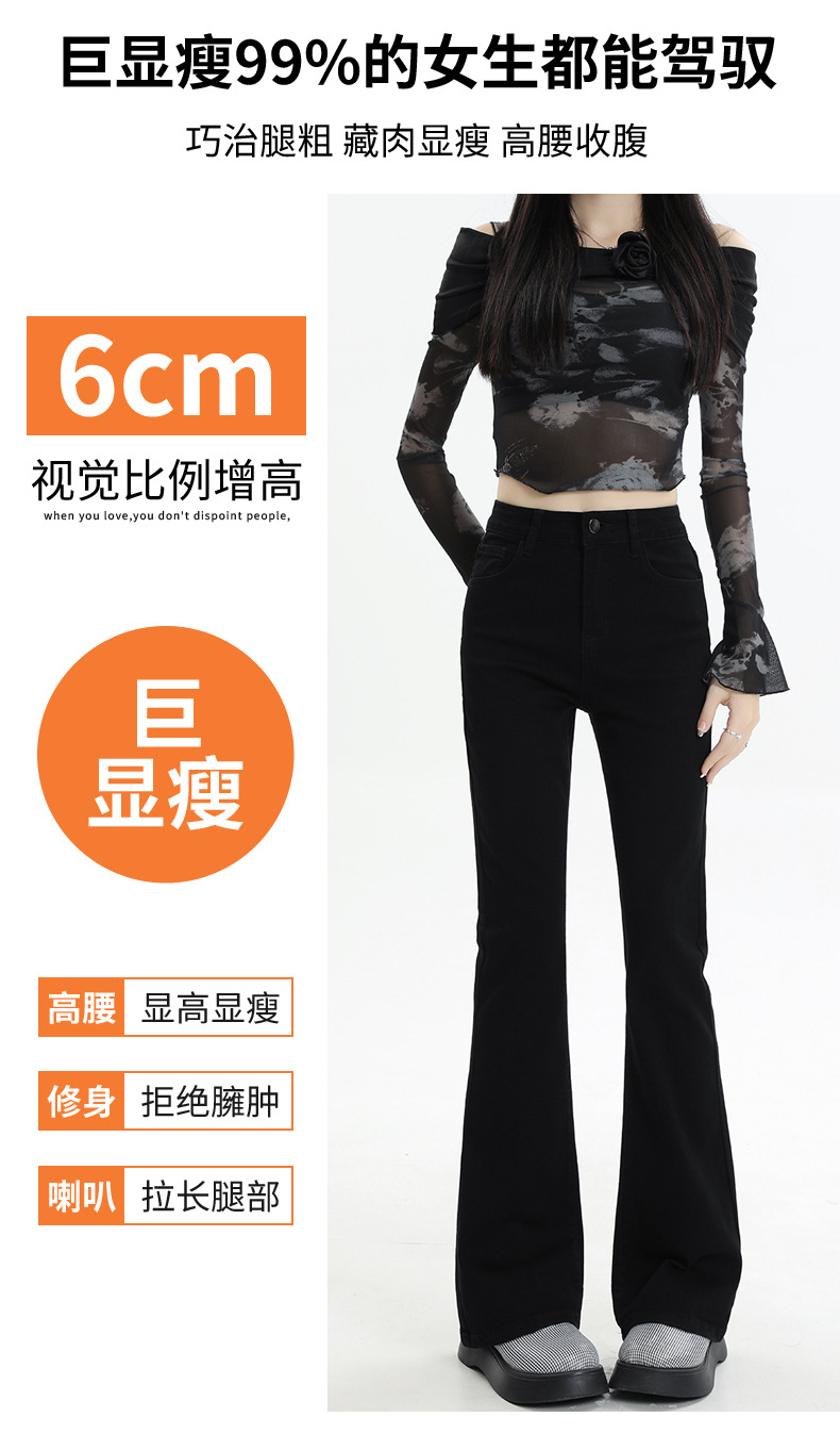 黑色微喇高腰牛仔裤女秋冬新款显瘦修身加绒加厚保暖弹力喇叭长款