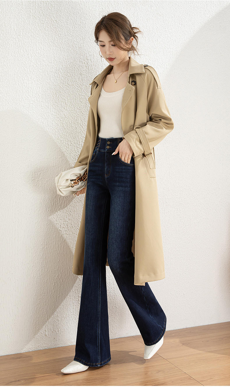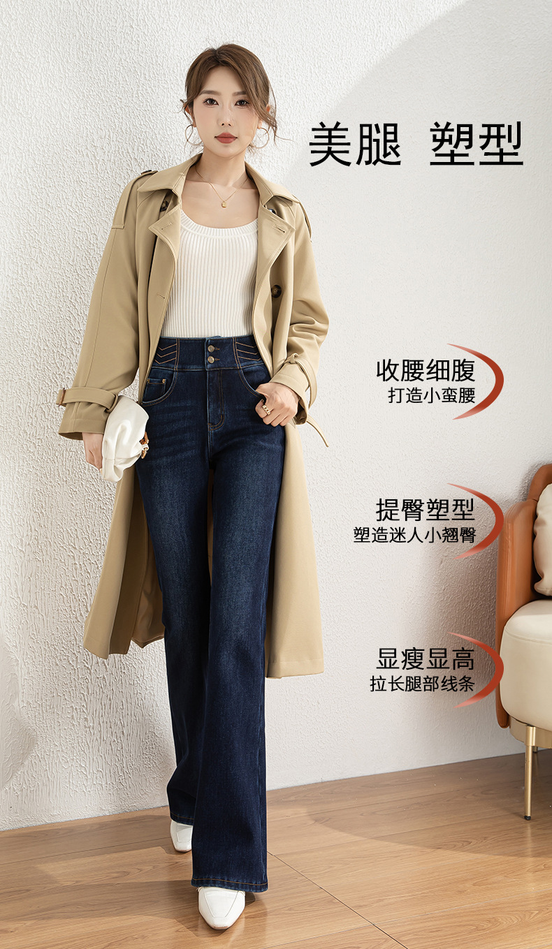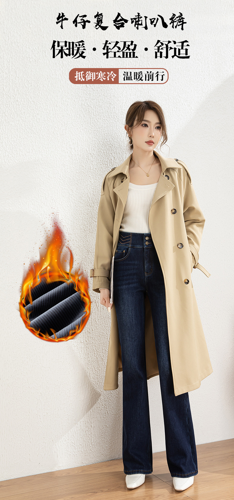 2023年冬季创意新款高腰刺绣牛仔喇叭裤韩版加绒加厚微喇长裤8051