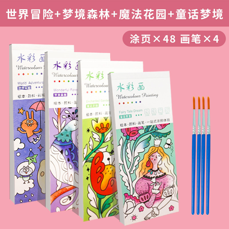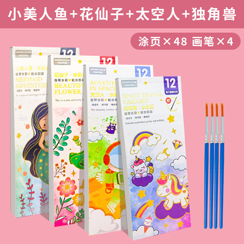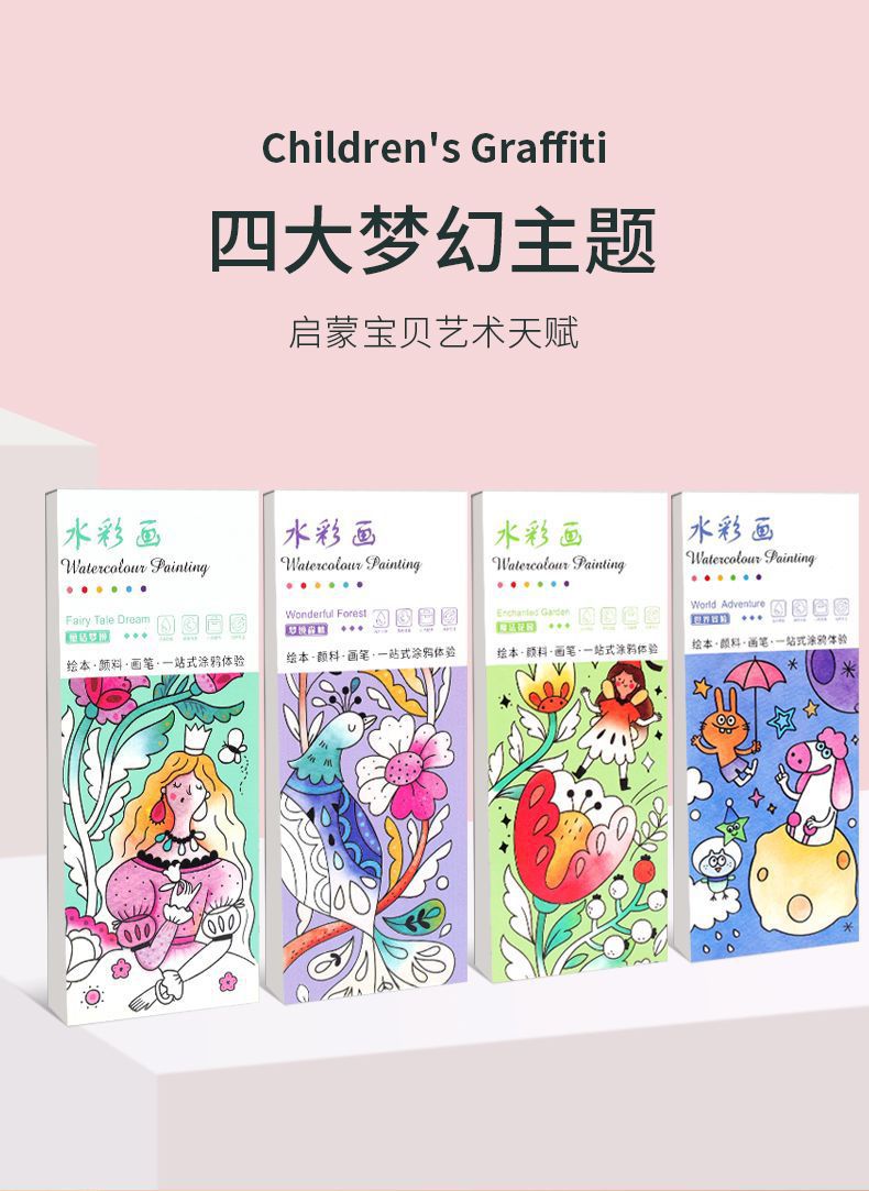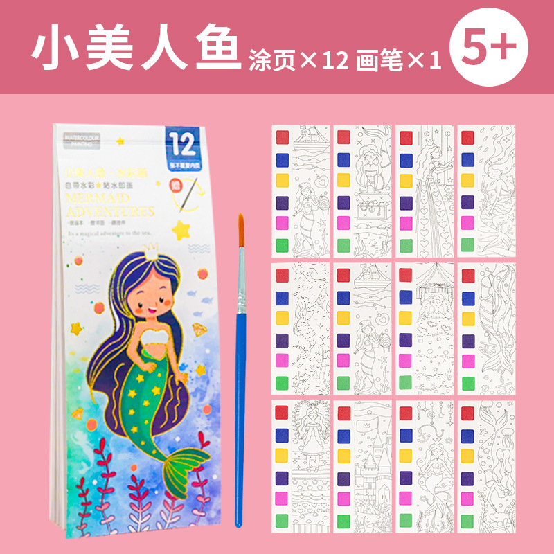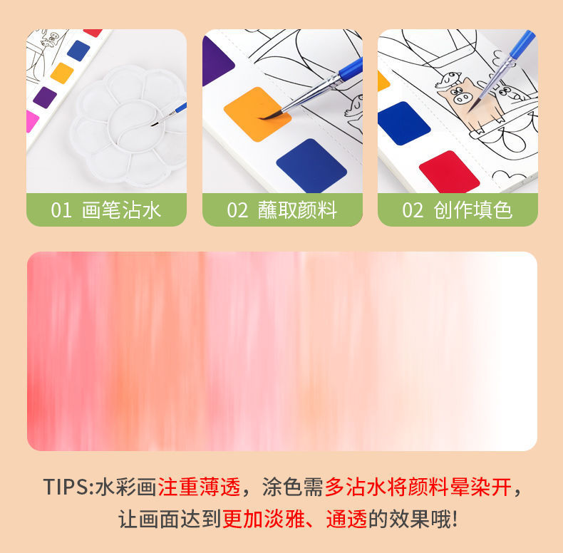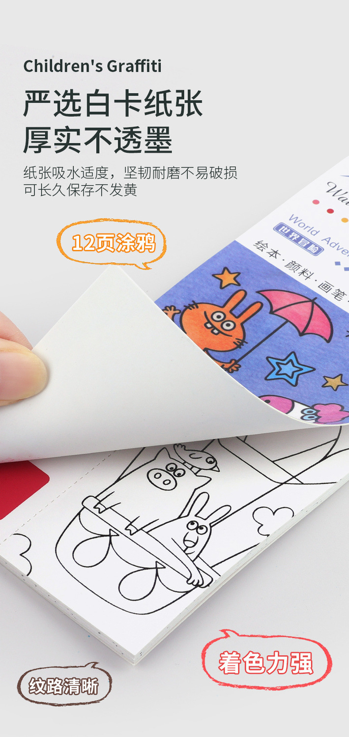 益智填色绘本儿童可爱颜料水彩涂色画本卡通学生沾水画涂鸦画批发