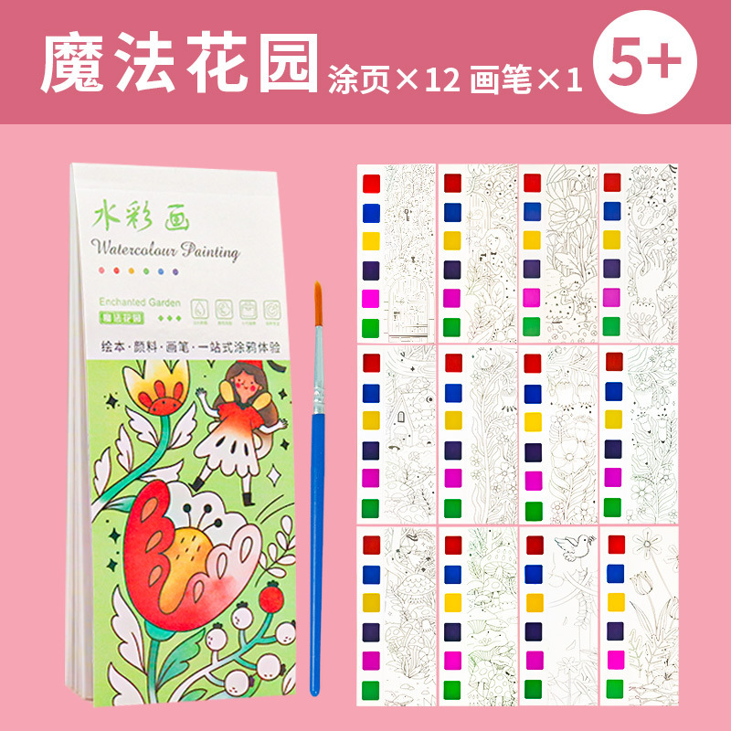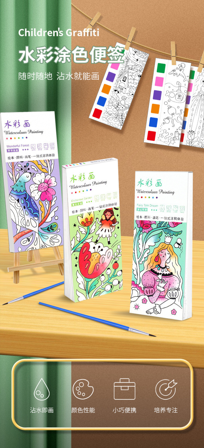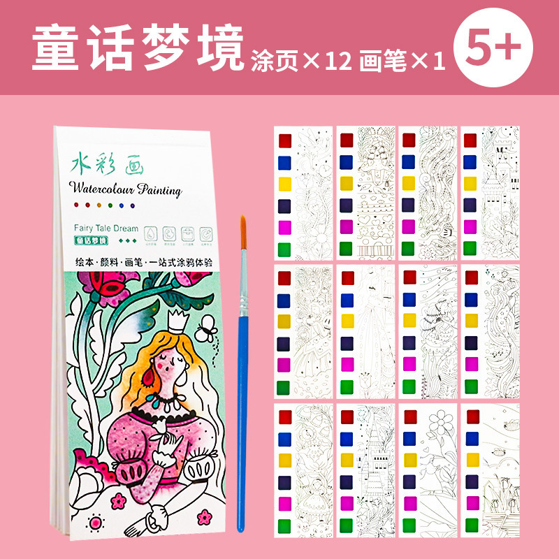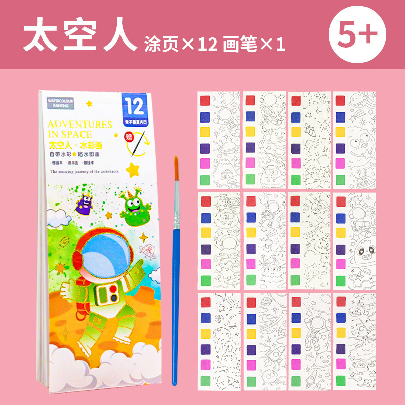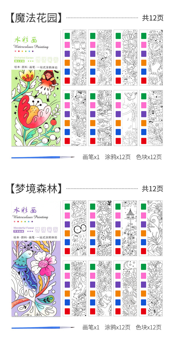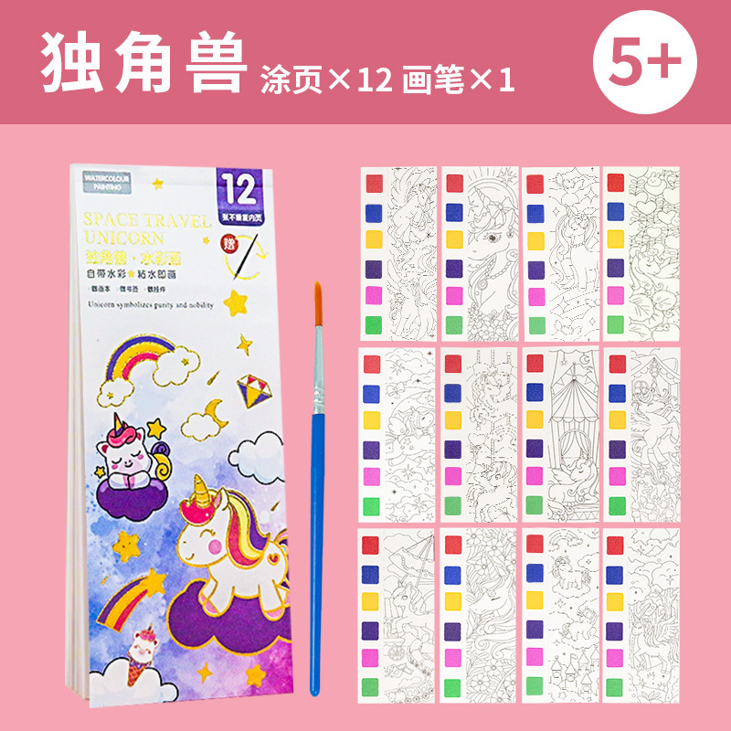 益智填色绘本儿童可爱颜料水彩涂色画本卡通学生沾水画涂鸦画批发