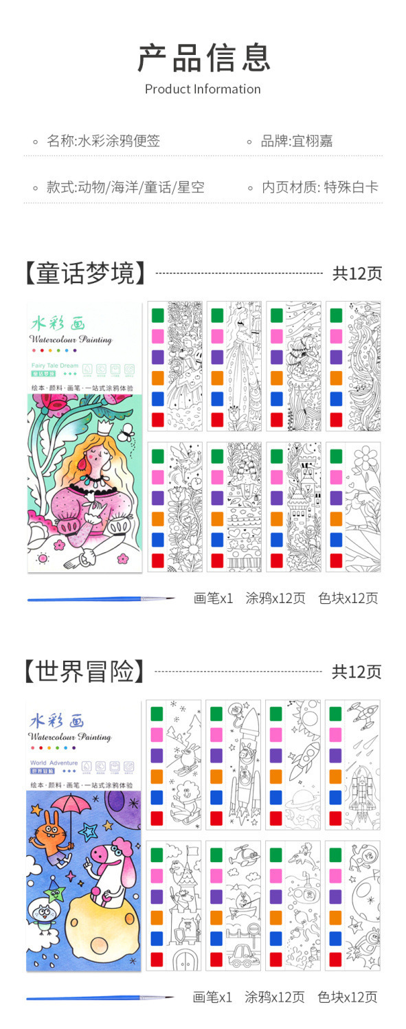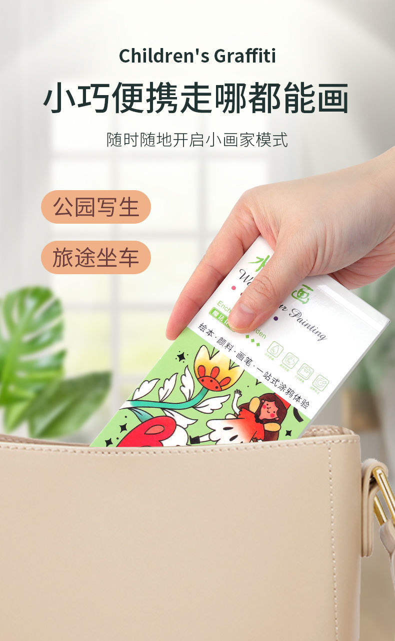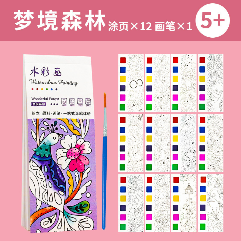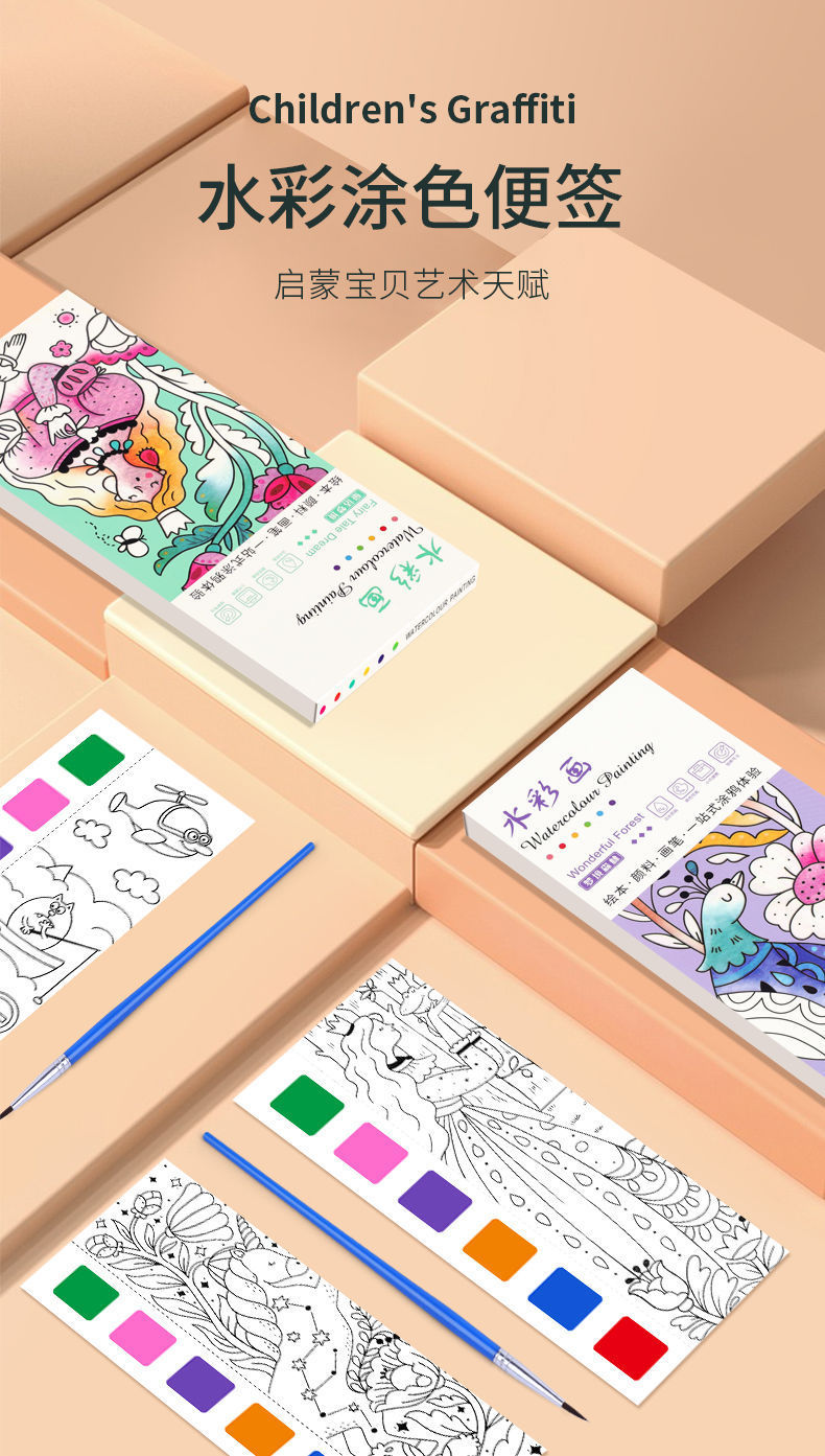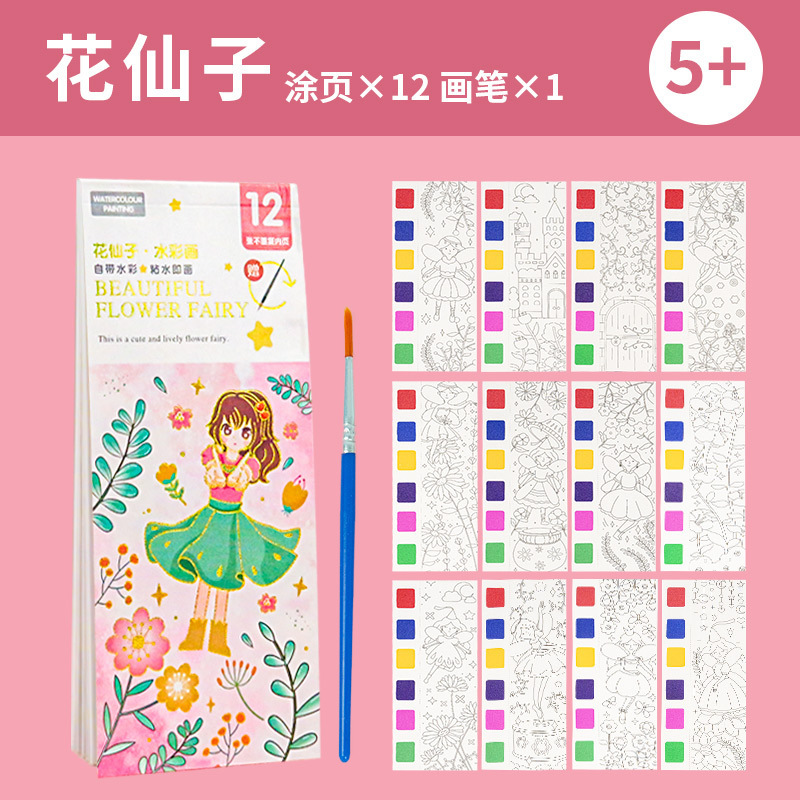 益智填色绘本儿童可爱颜料水彩涂色画本卡通学生沾水画涂鸦画批发