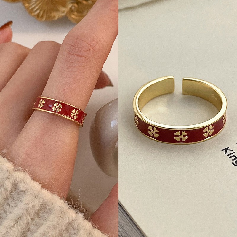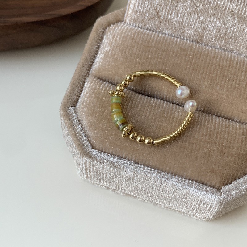 中古饰品复古重工戒指女ins风镀金18k拉丝轻奢镶钻小众高级感新品