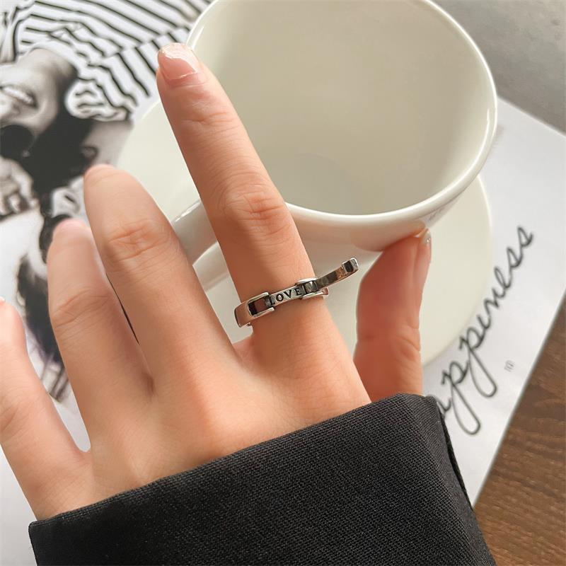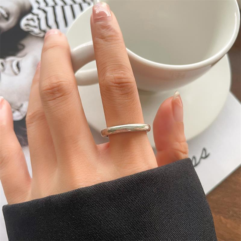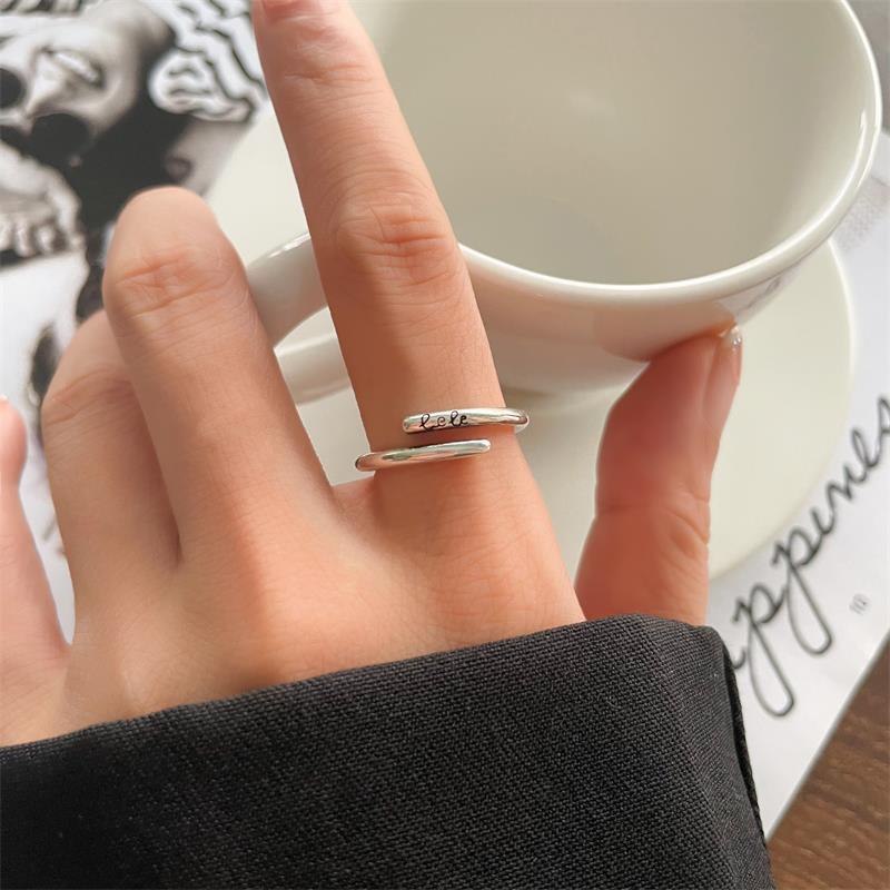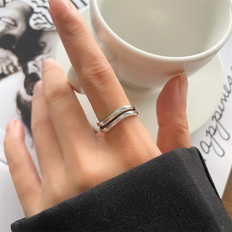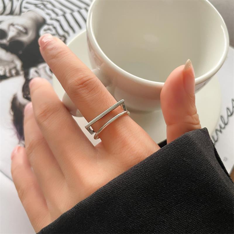 个性简约925纯银戒指女批发百搭中性风小众潮流饰品嘻哈开口戒指