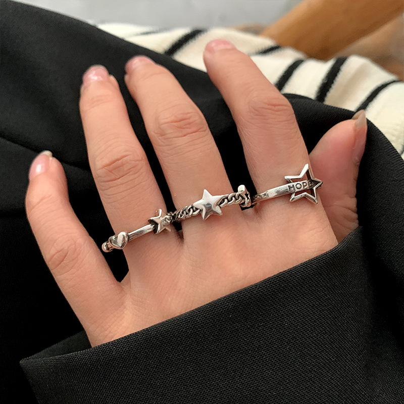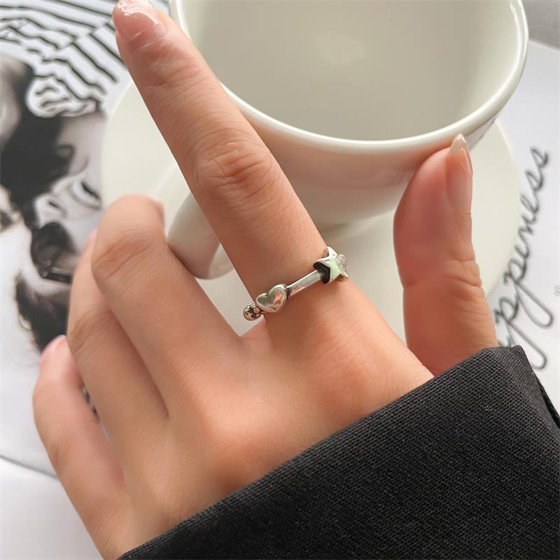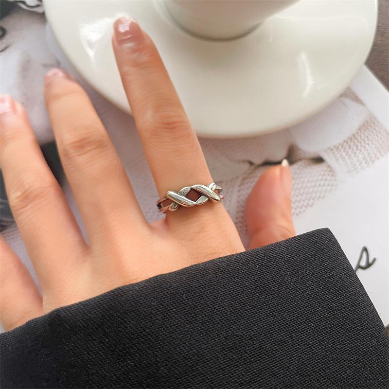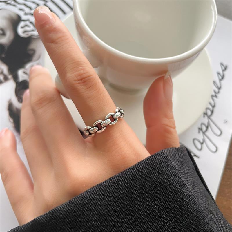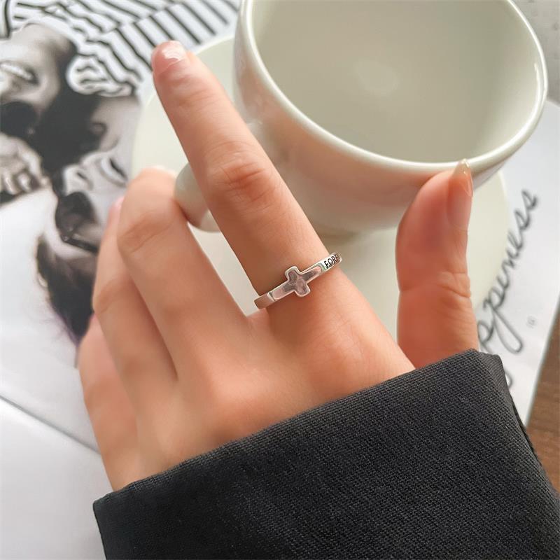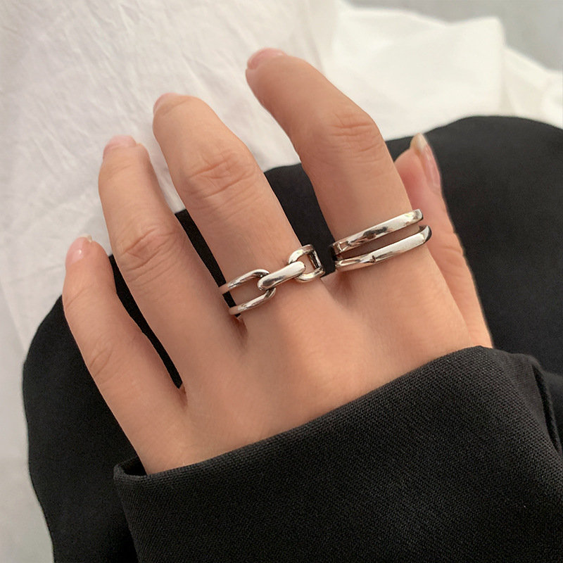 个性简约925纯银戒指女批发百搭中性风小众潮流饰品嘻哈开口戒指