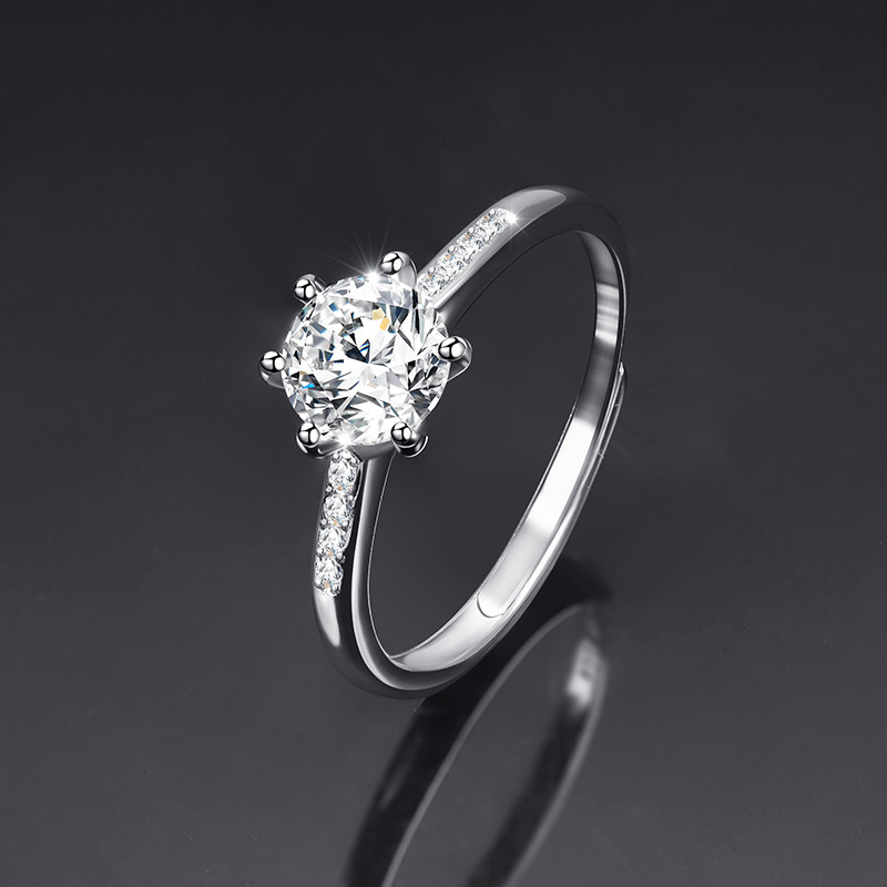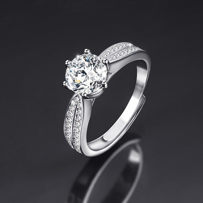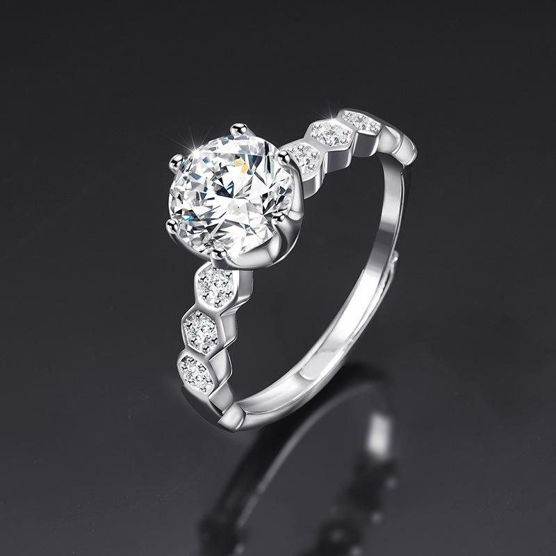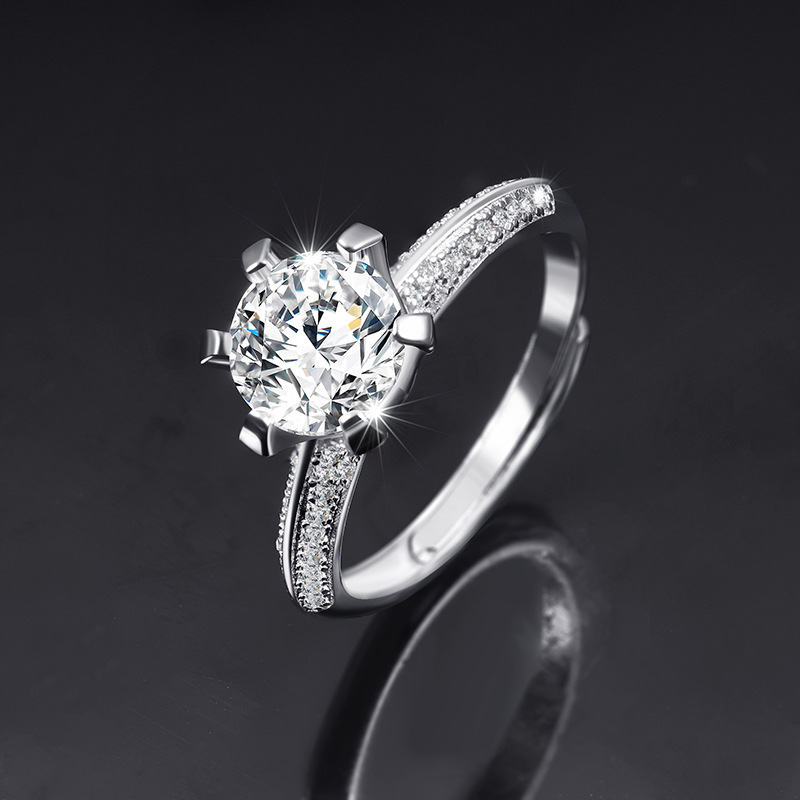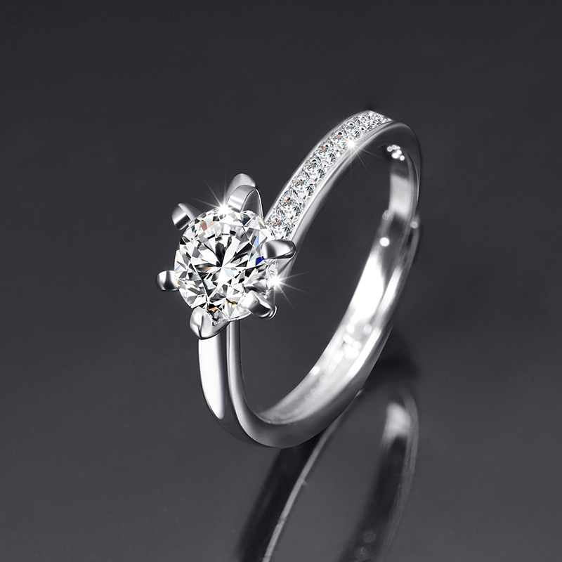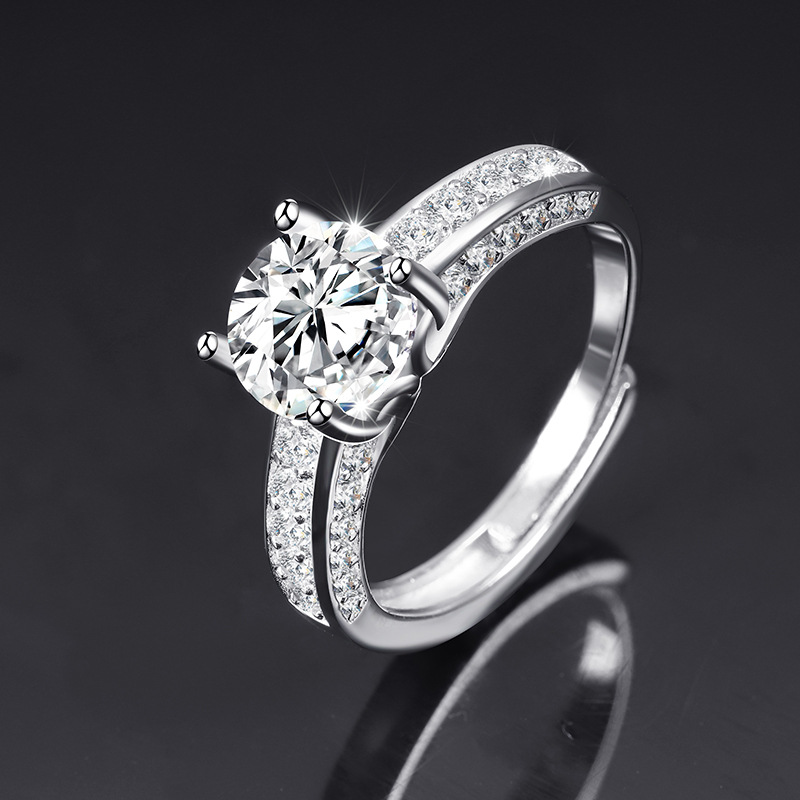 莫桑石戒指一克拉钻戒女高端大气活口对戒直播货源外贸莫桑钻戒指