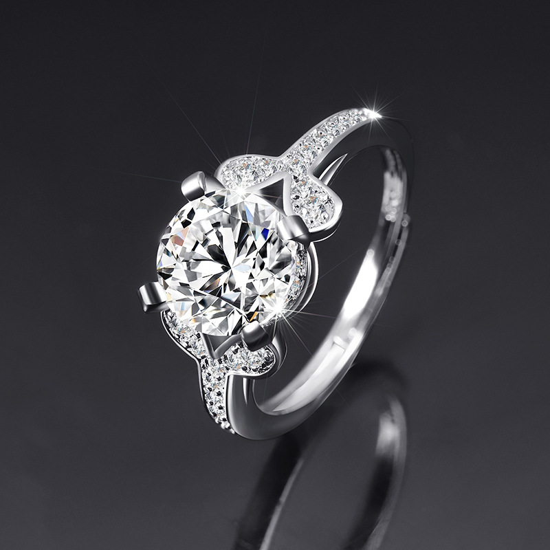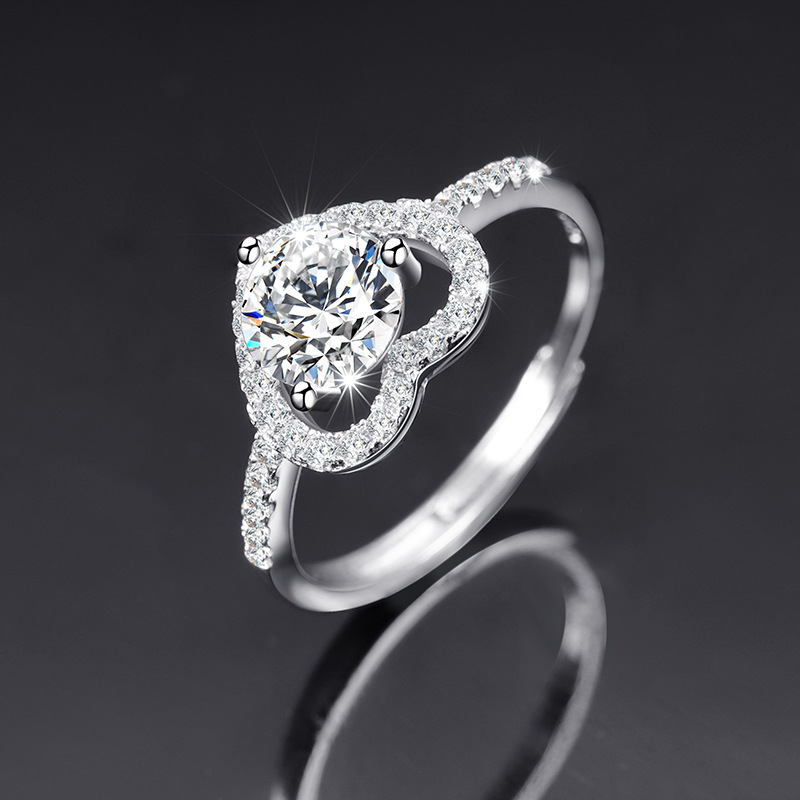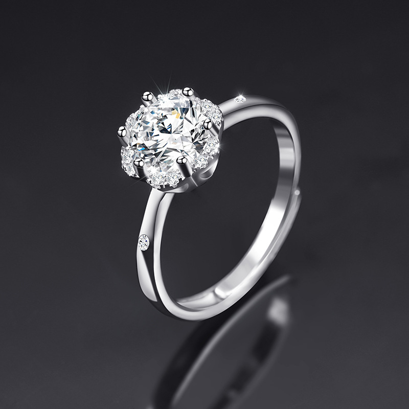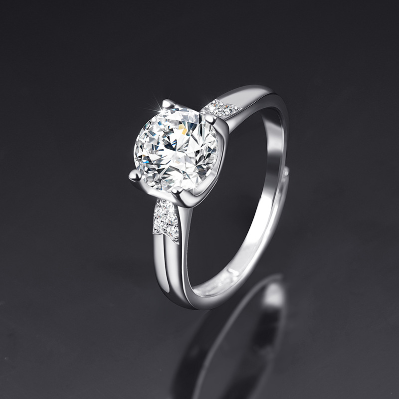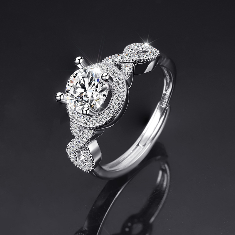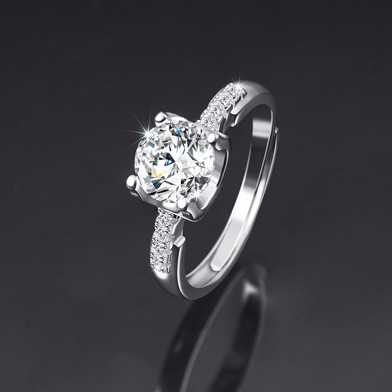 莫桑石戒指一克拉钻戒女高端大气活口对戒直播货源外贸莫桑钻戒指