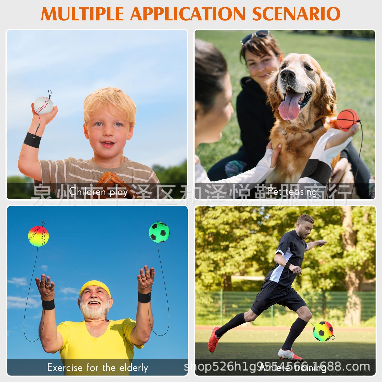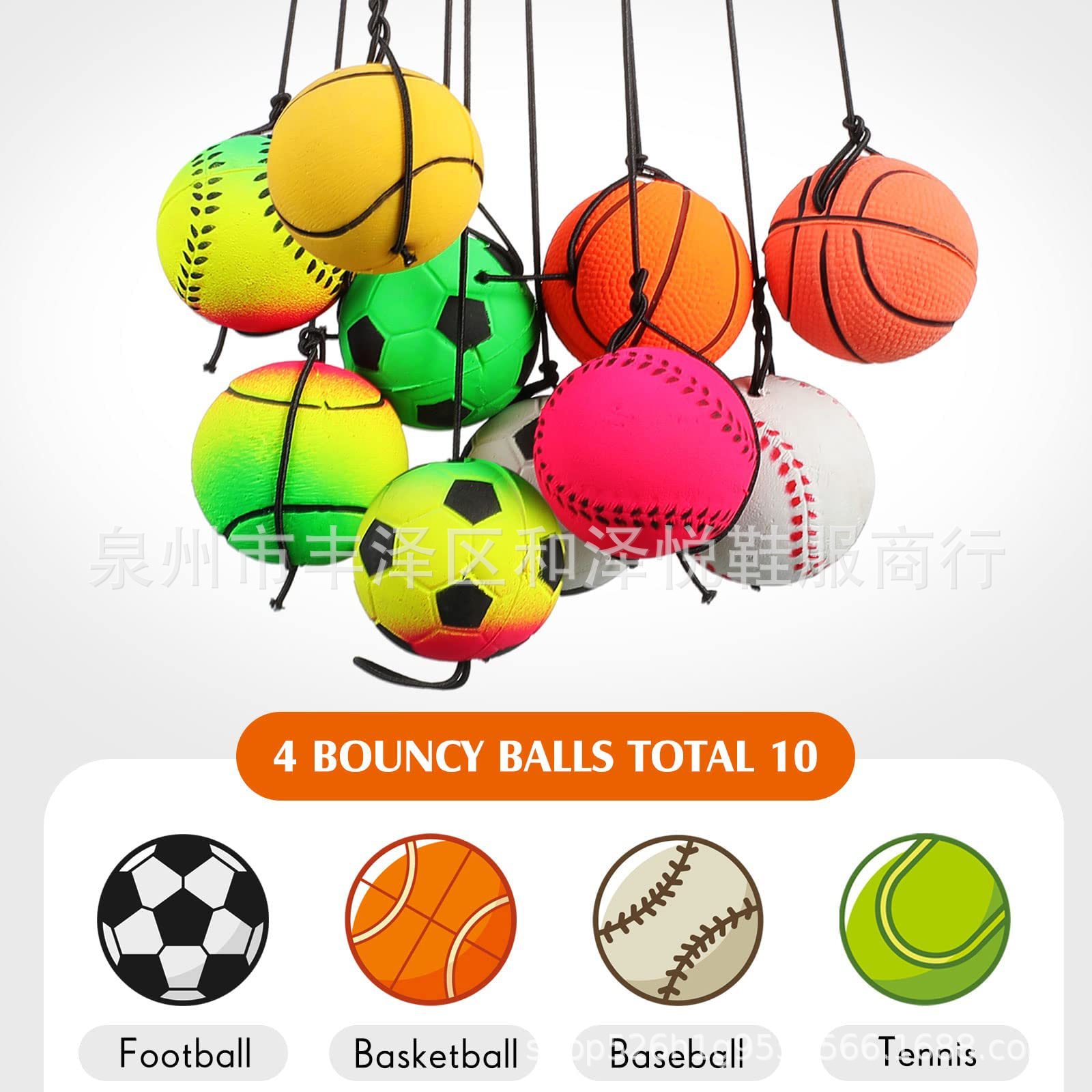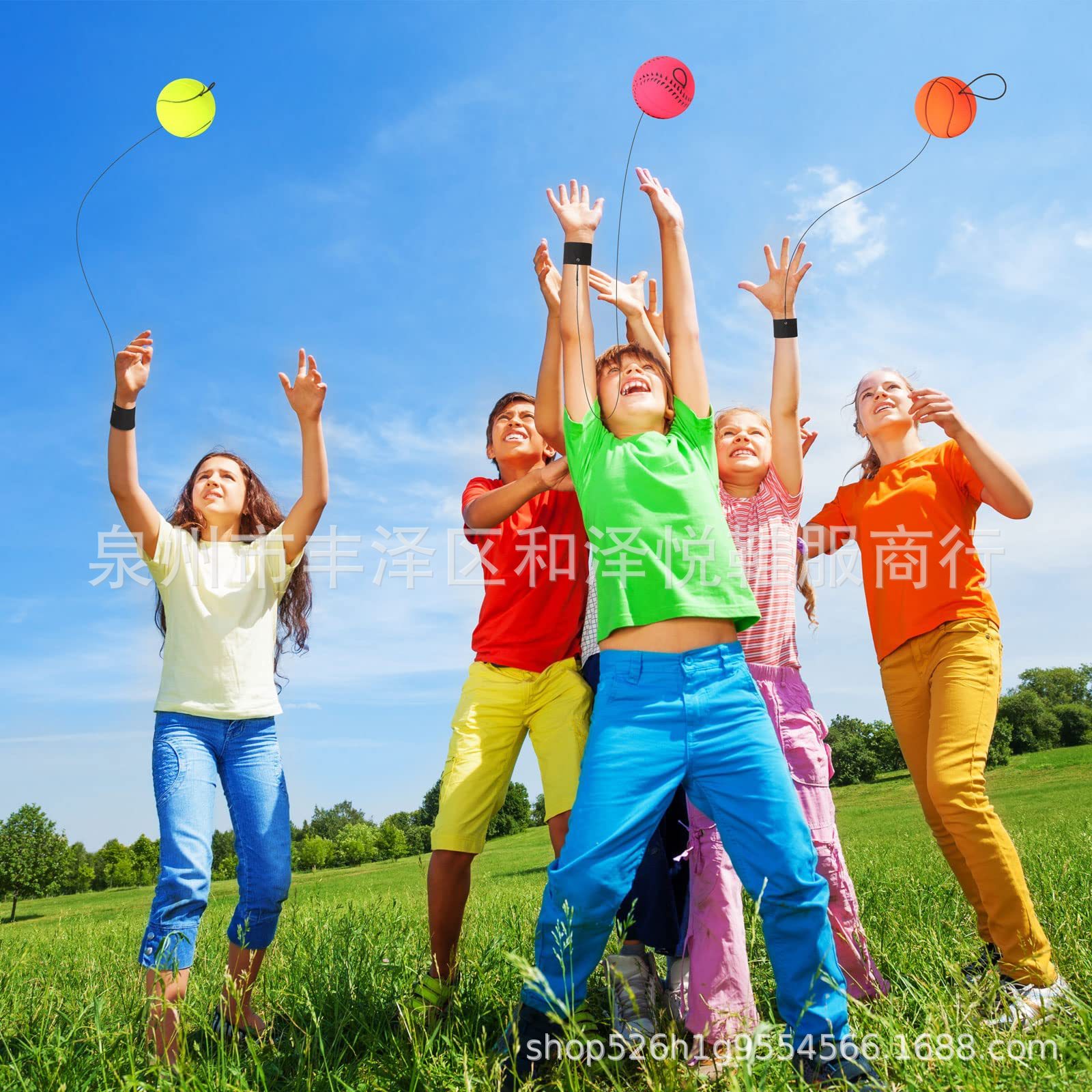 跨境Temu速卖通橡胶手腕穿绳回弹球63mm荧光弹力球手抛减压玩具球