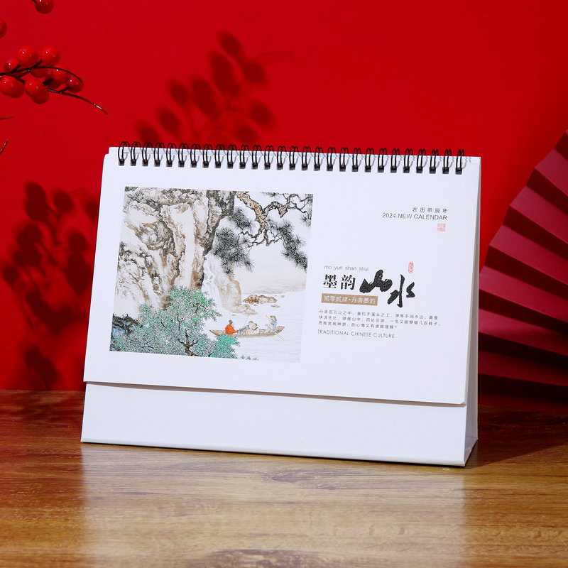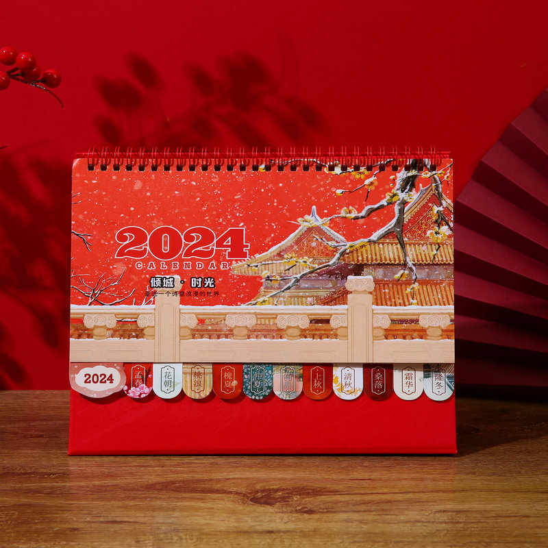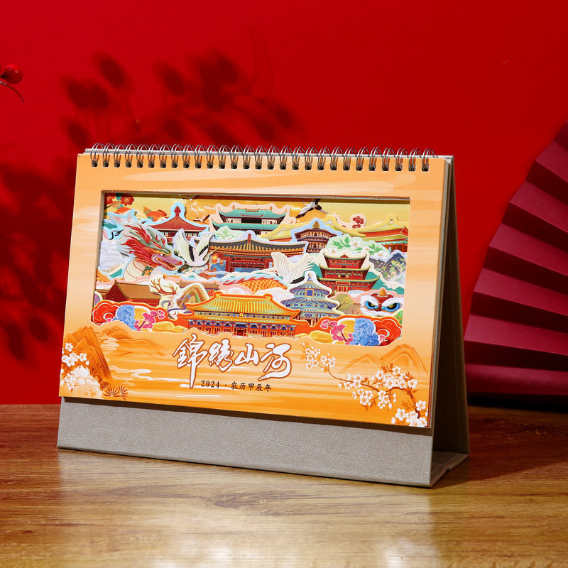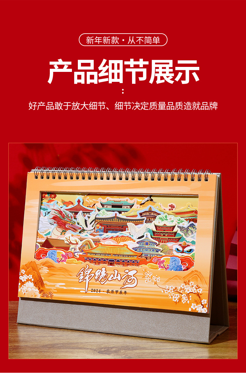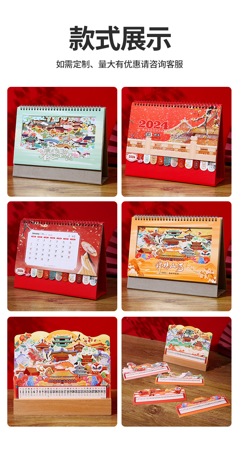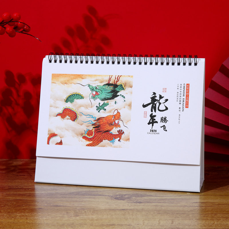 2024年中式台历桌面龙年日历办公桌家用台历年历广告印刷LOGO批发