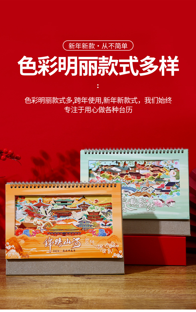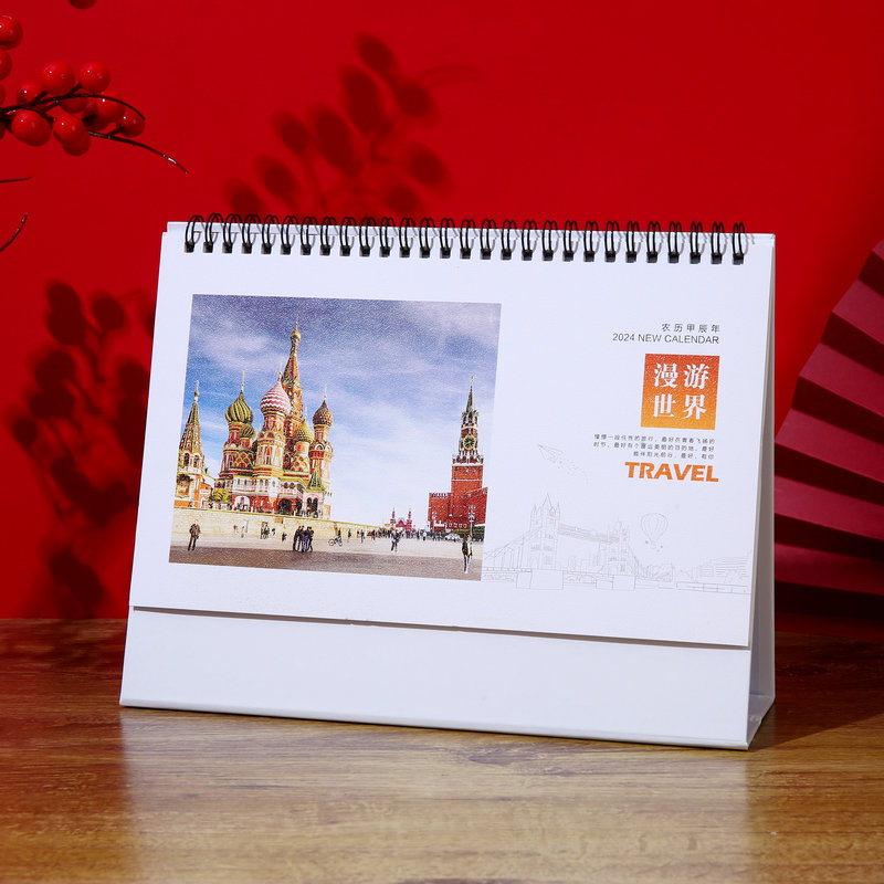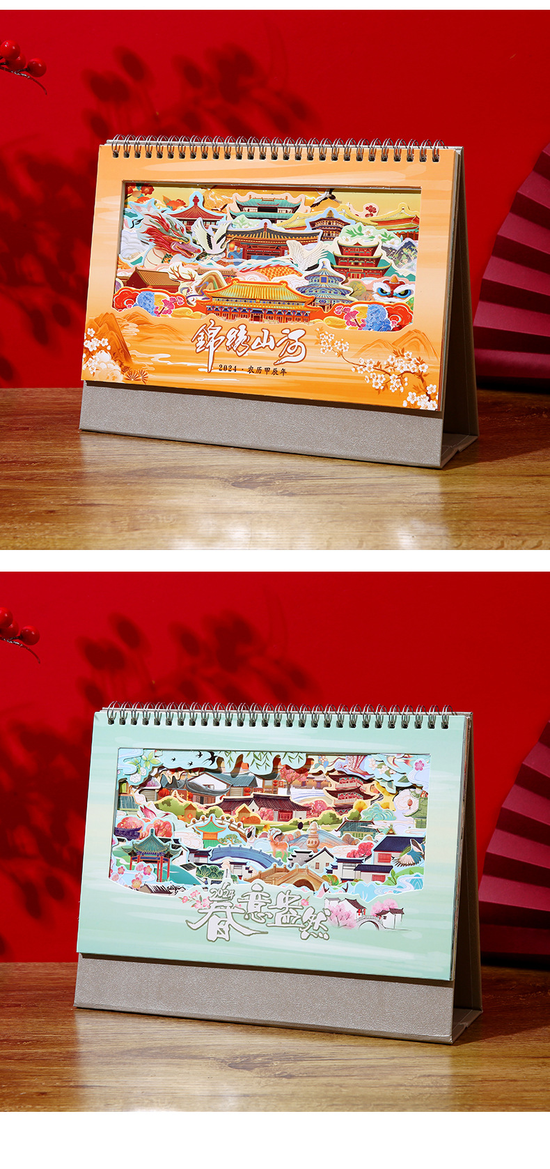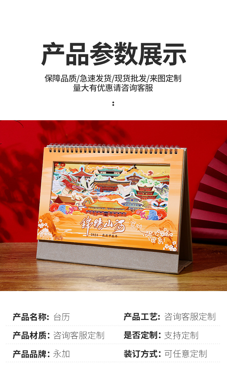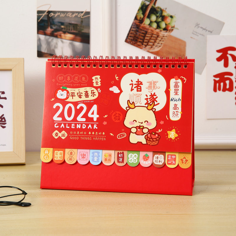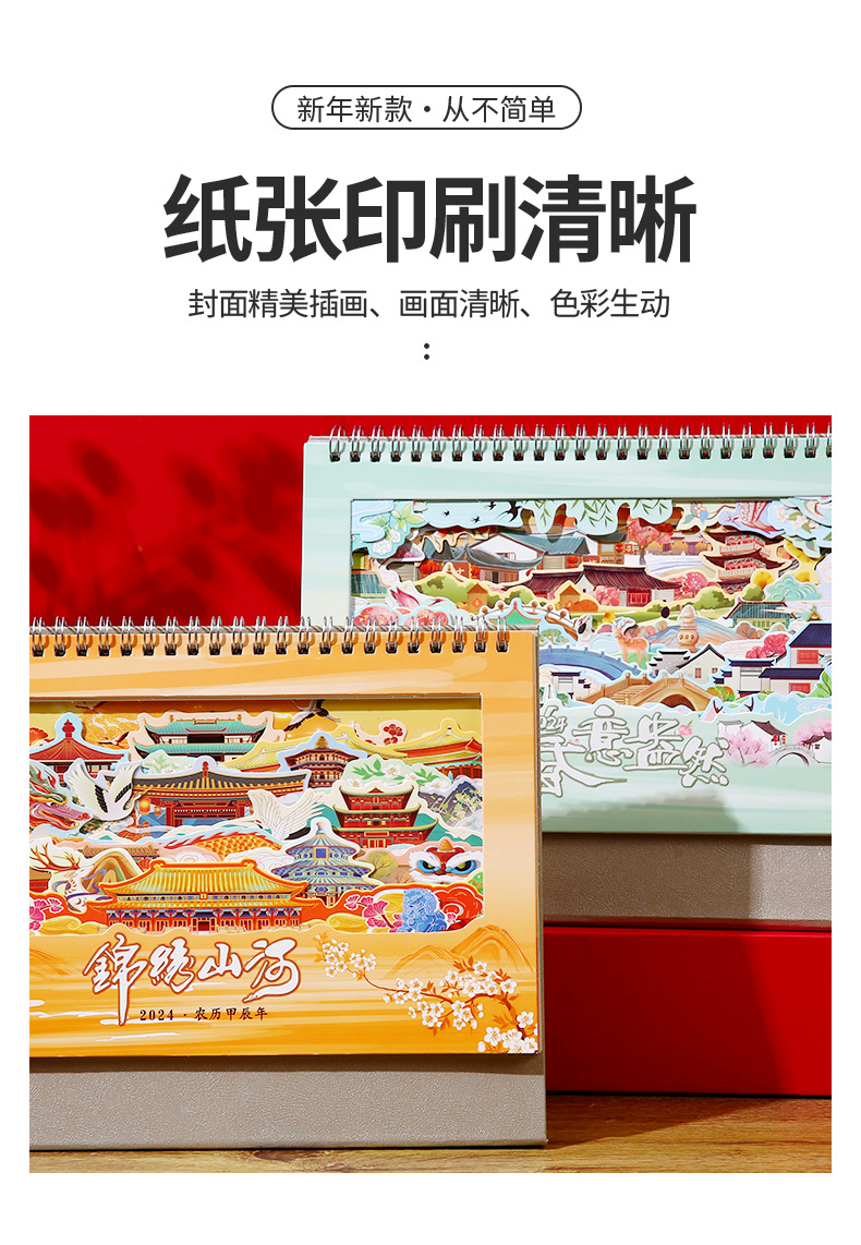 2024年中式台历桌面龙年日历办公桌家用台历年历广告印刷LOGO批发