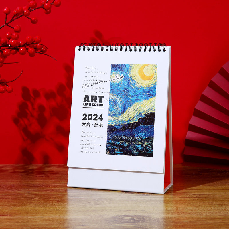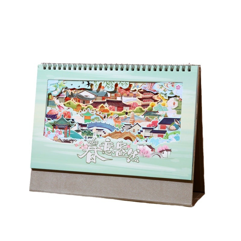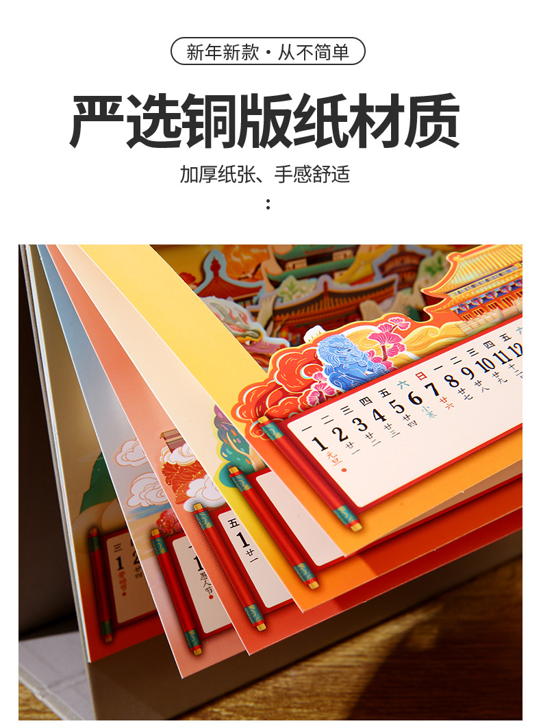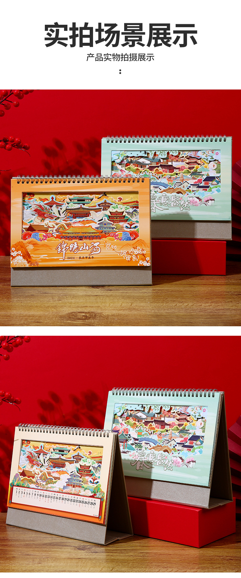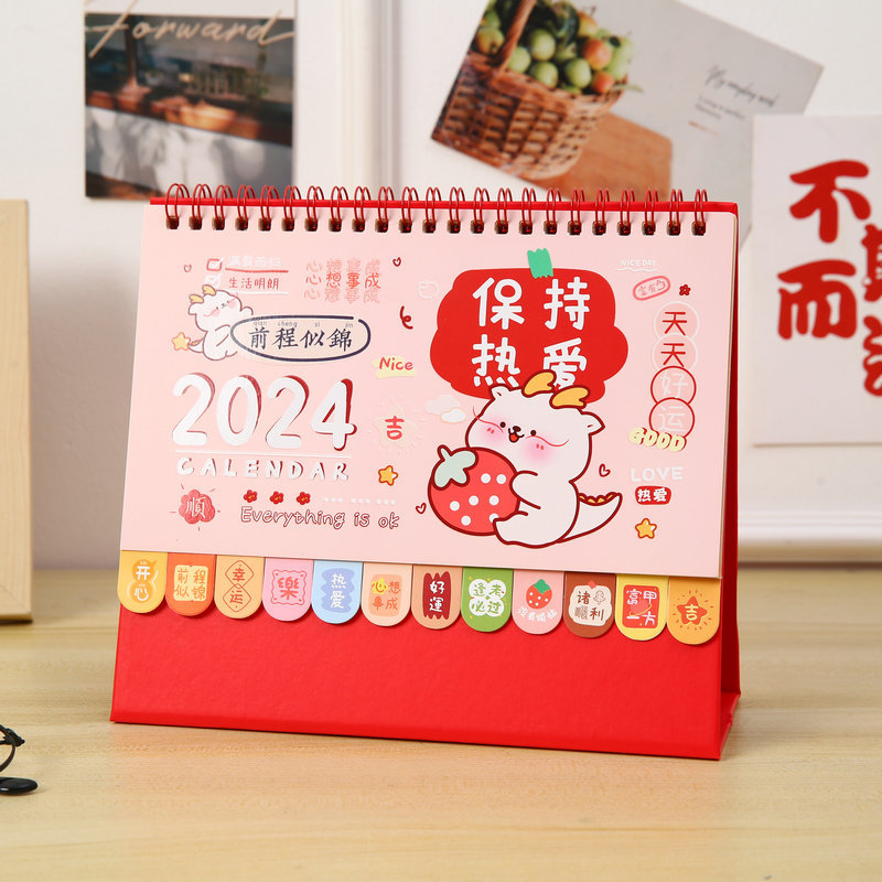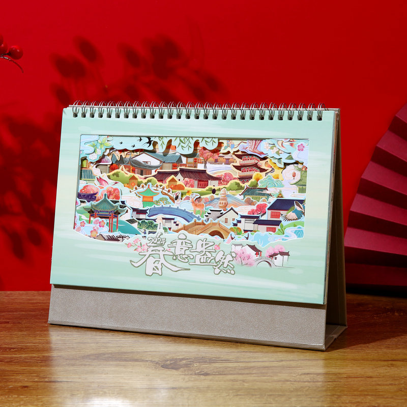 2024年中式台历桌面龙年日历办公桌家用台历年历广告印刷LOGO批发