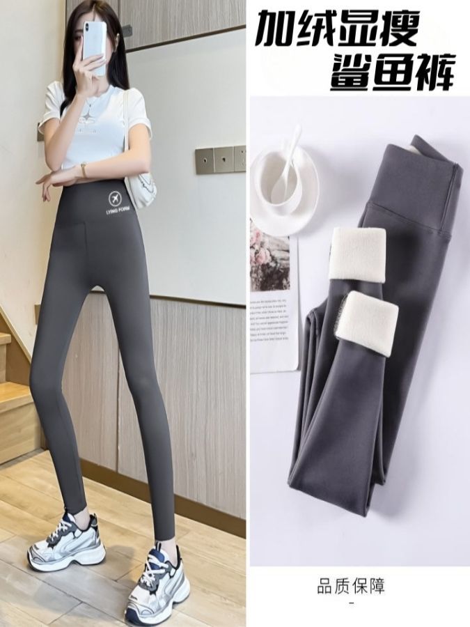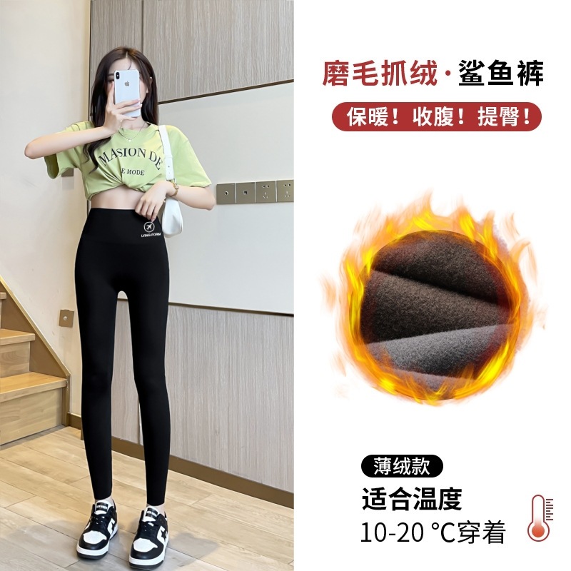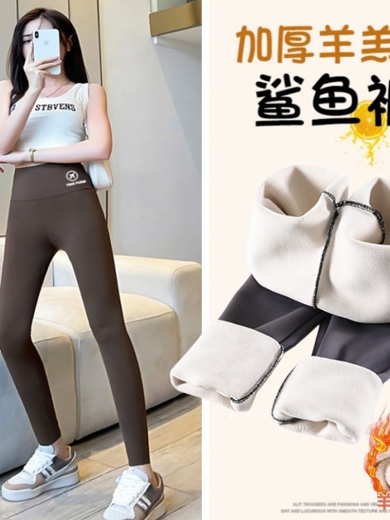 羊羔绒鲨鱼裤女高腰外穿紧身秋冬加绒加厚打底裤女收腹提臀芭比裤