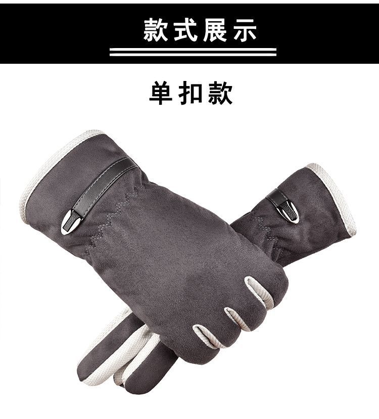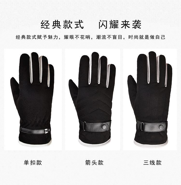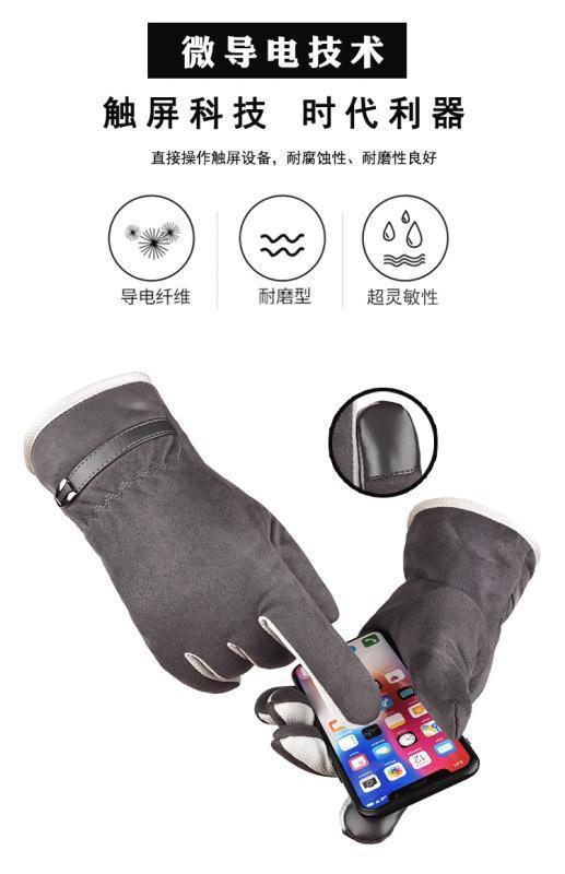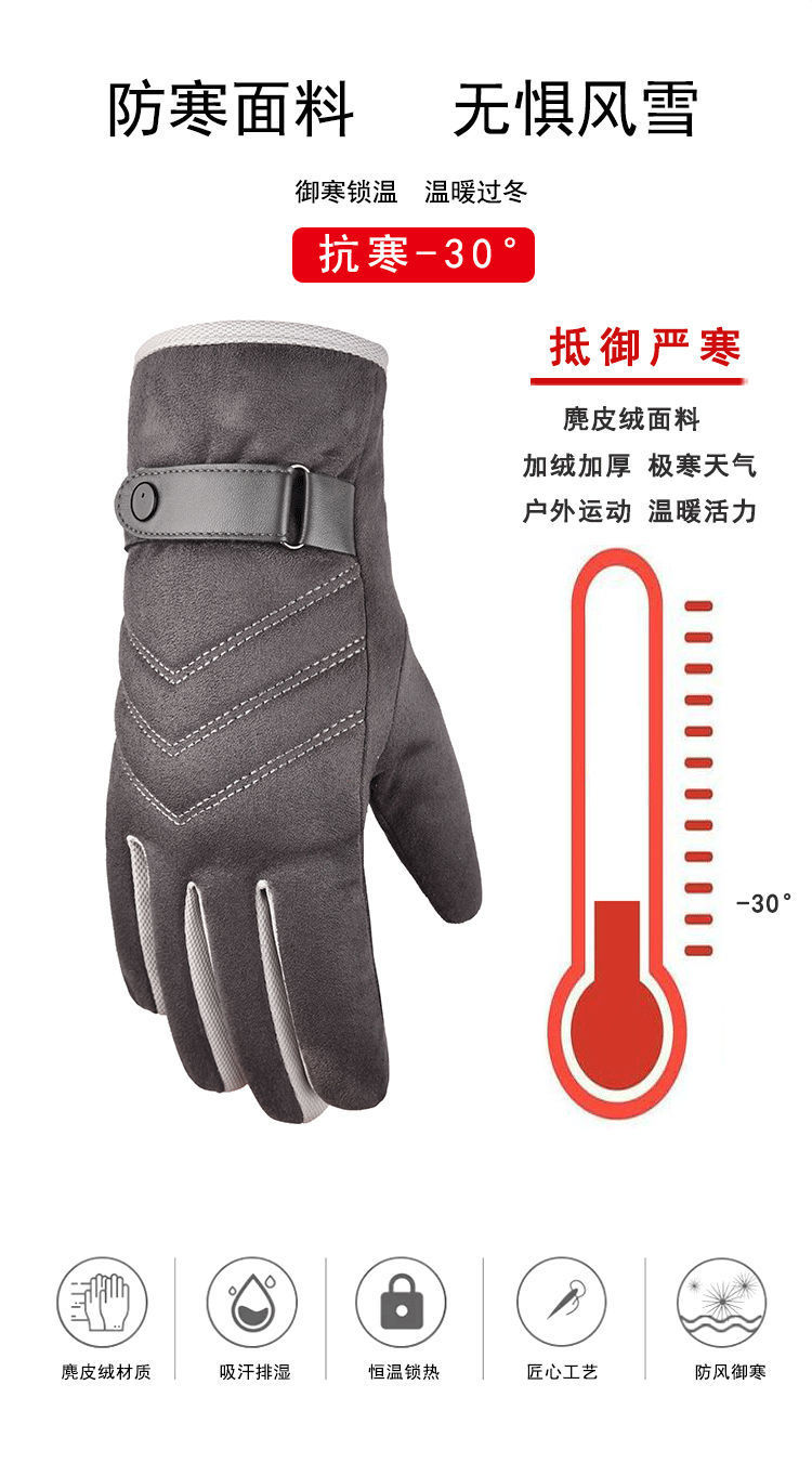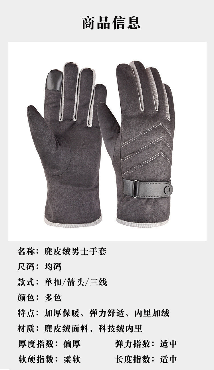 新款麂皮绒保暖手套男秋冬季户外骑行加绒加厚骑行开车防风棉手套