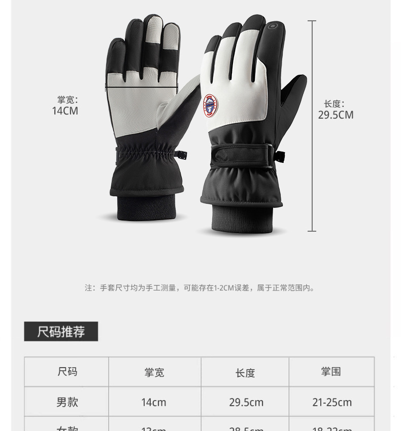 新款滑雪手套男士户外加绒加厚保暖电动车骑行防滑防水触屏手套女