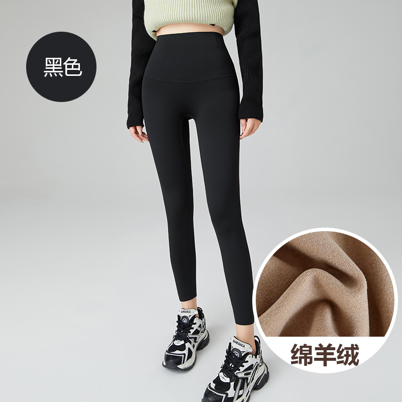 秋冬加绒加厚打底裤女款外穿保暖黑色大码鲨鱼裤羊羔绒芭比瑜伽裤