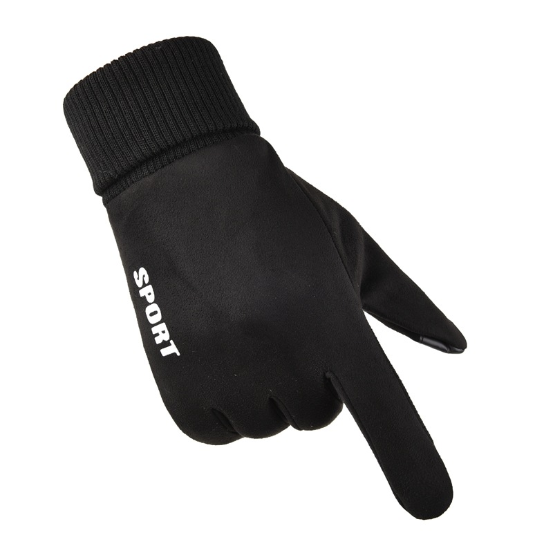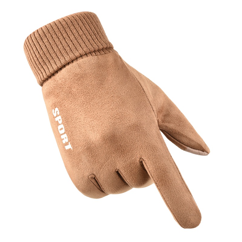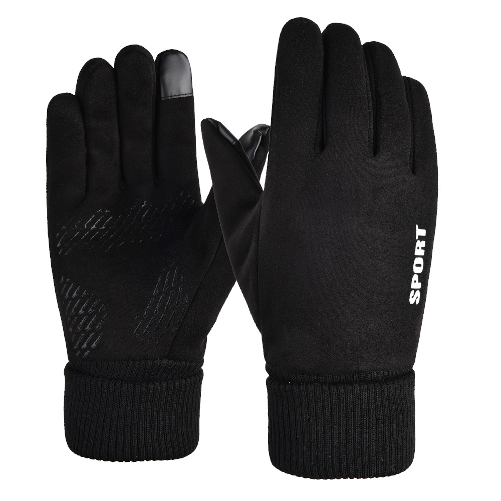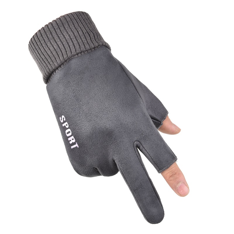 麂皮绒手套男秋冬季户外防风加绒保暖加长锁温半指露二指骑行手套