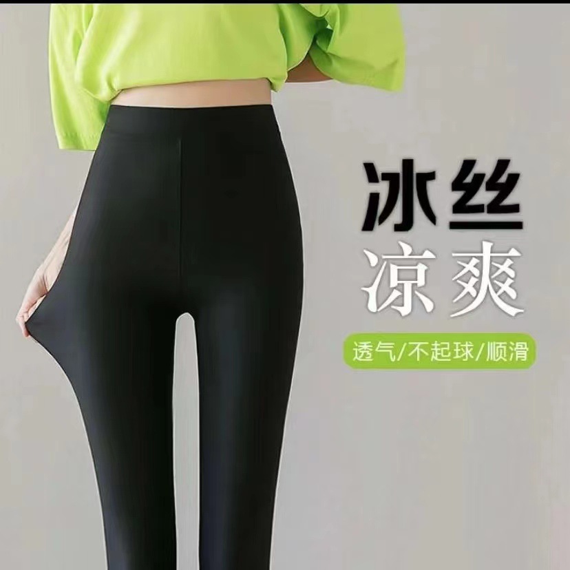 凉凉裤春秋黑色冰丝裤子修身显瘦百搭弹力高腰夏季打底裤外穿凉爽
