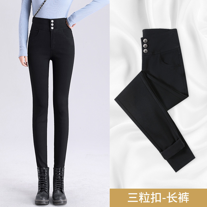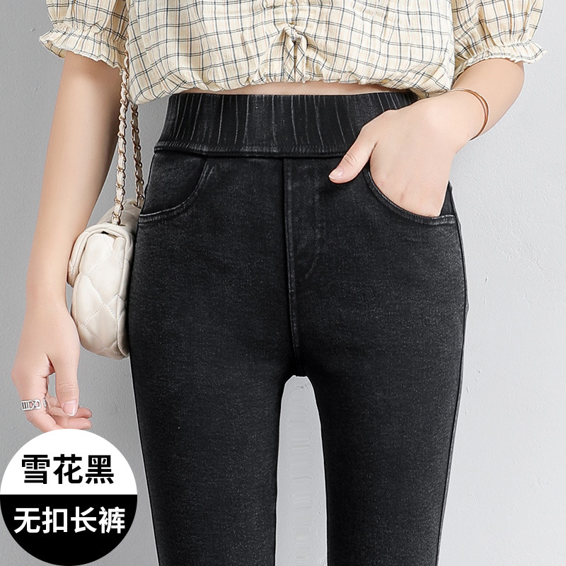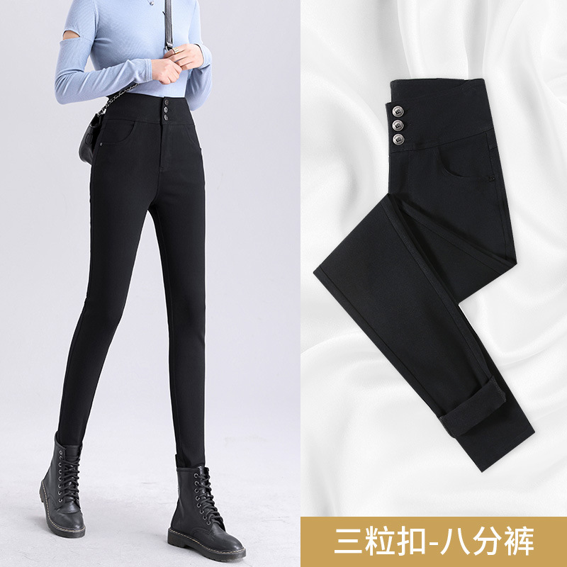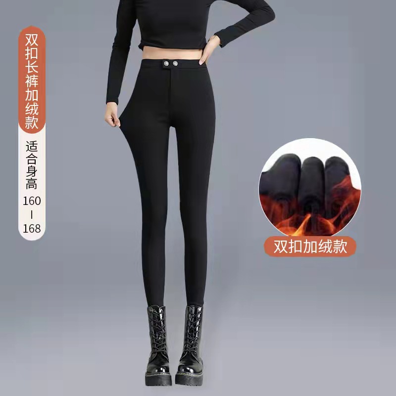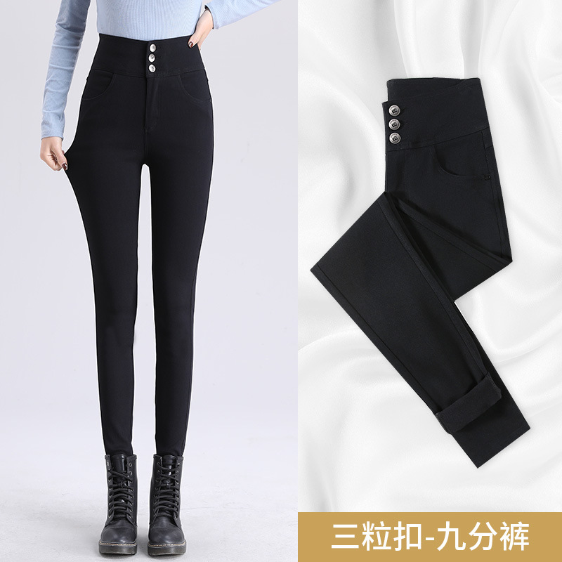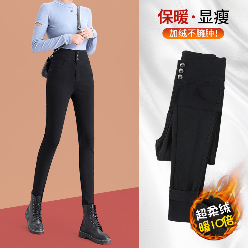 打底裤女外穿秋冬加绒黑色大码高腰弹力小脚黑裤紧身铅笔魔术裤子