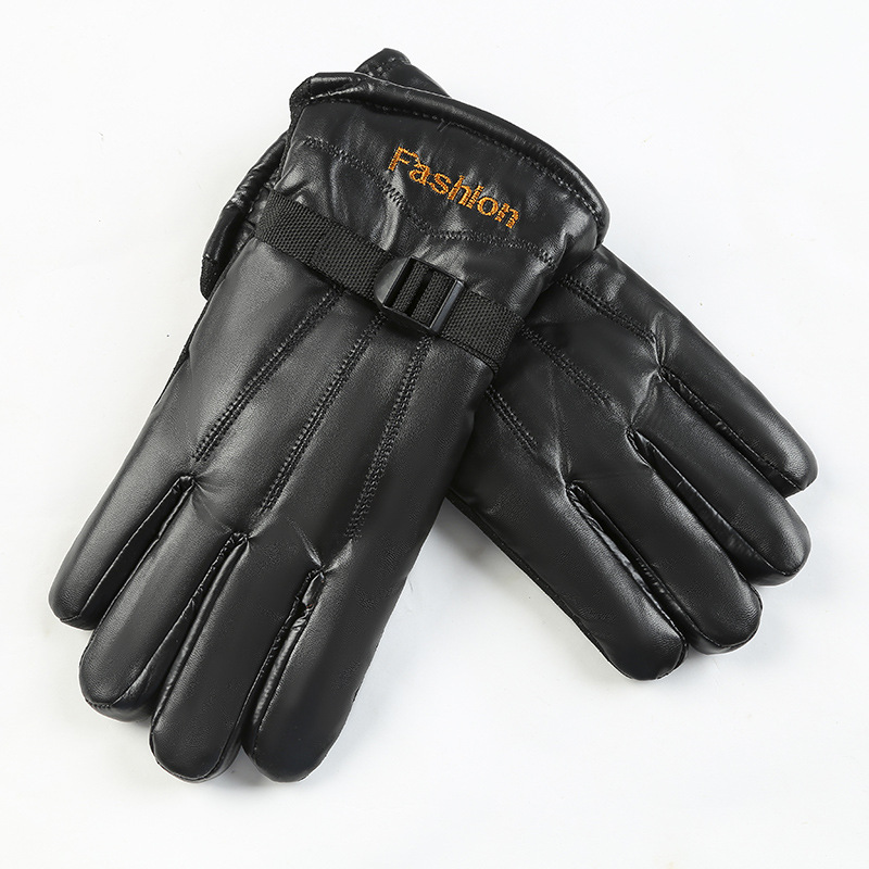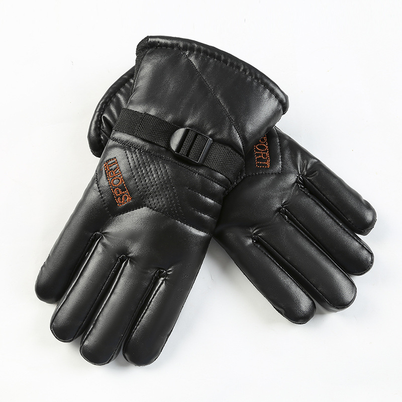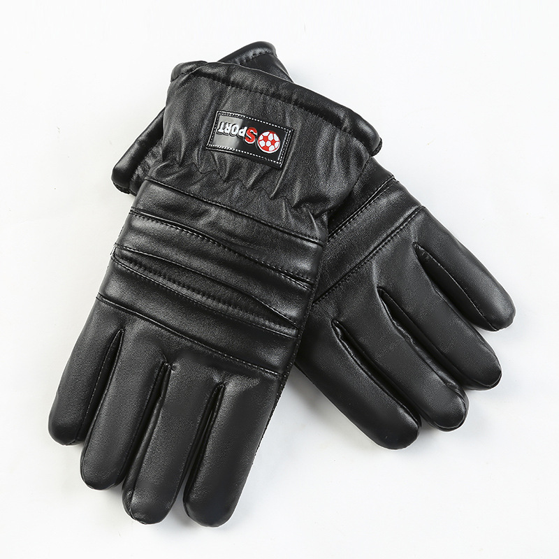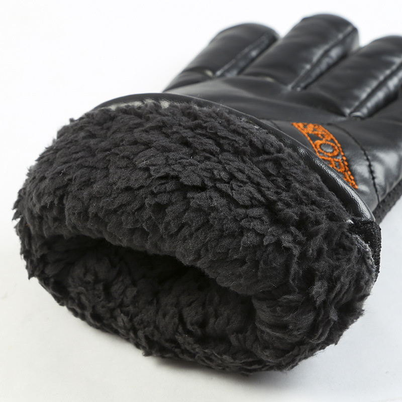 保暖手套男加绒加厚PU皮手套时尚经典开口笑手套户外骑行防风防寒
