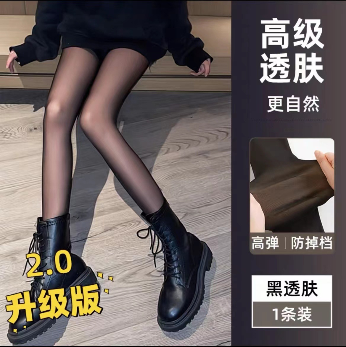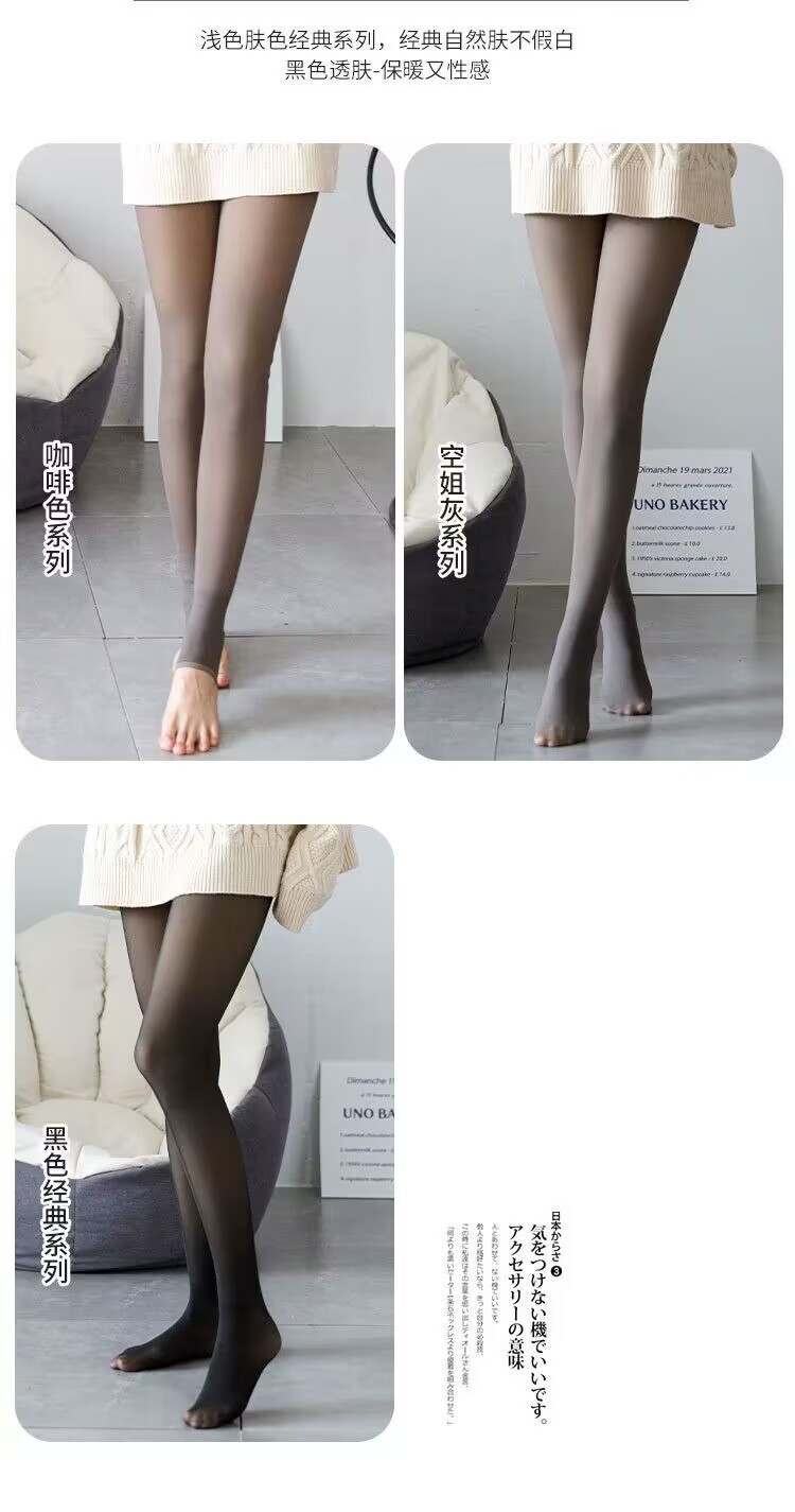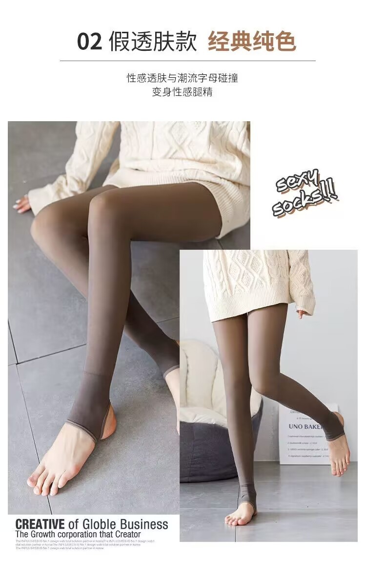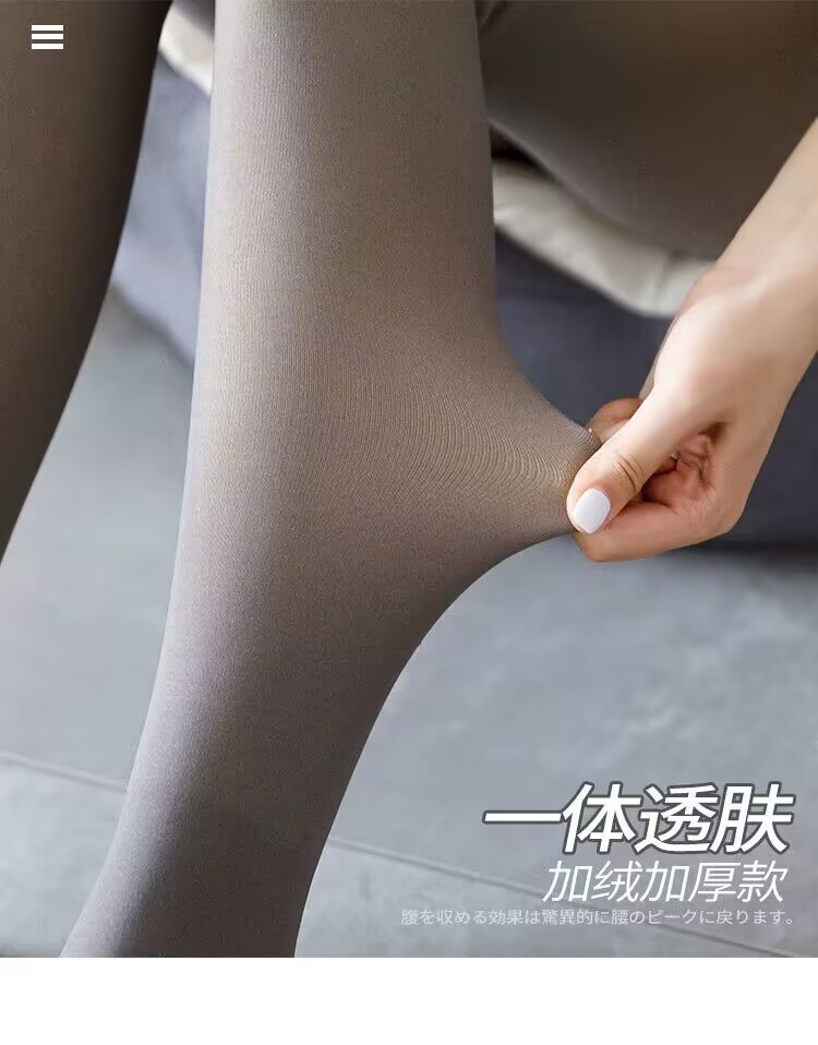外穿假透肉秋冬透肤大码打底裤加绒女空姐灰一体裤光腿加厚连裤袜