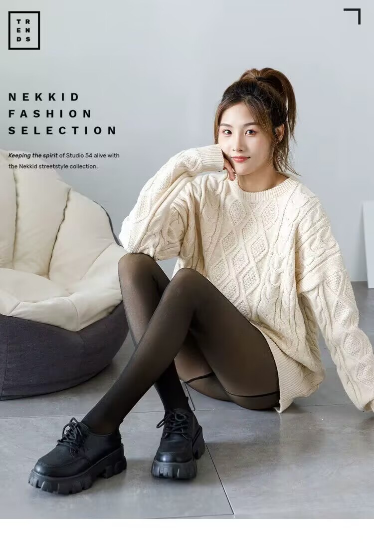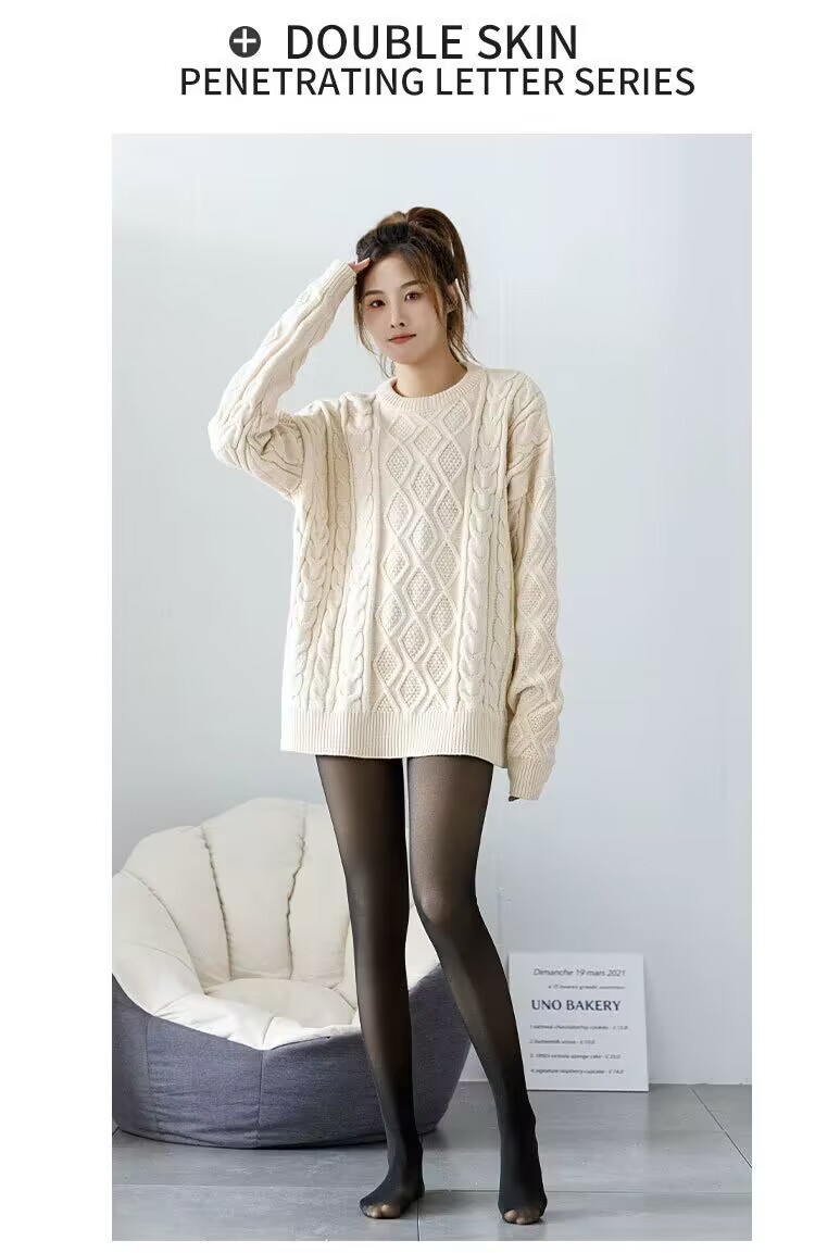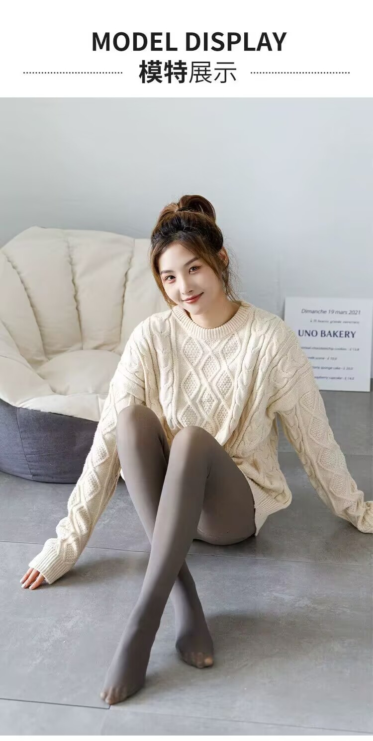 外穿假透肉秋冬透肤大码打底裤加绒女空姐灰一体裤光腿加厚连裤袜