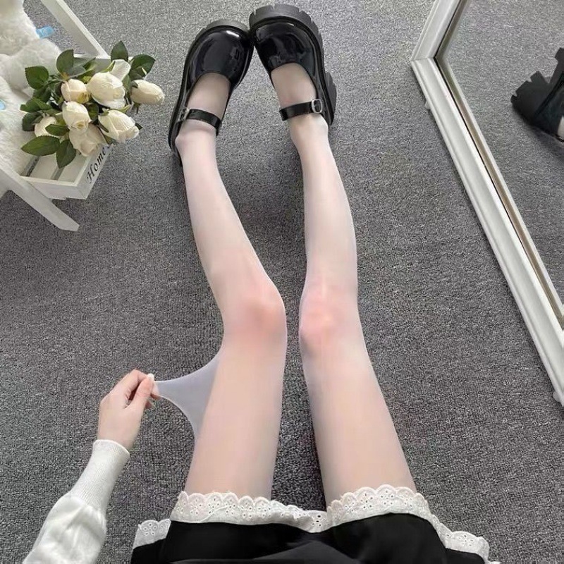 爱心白丝袜女春夏季薄款甜美蝴蝶结白色连裤袜洛丽塔圆波点jk黑丝