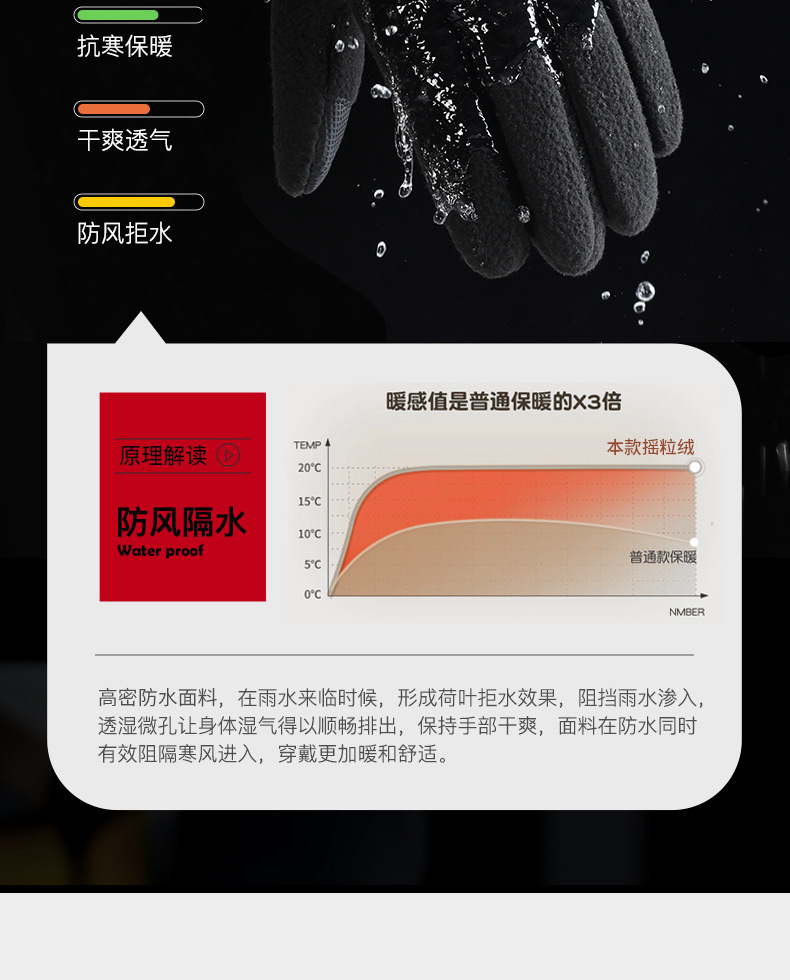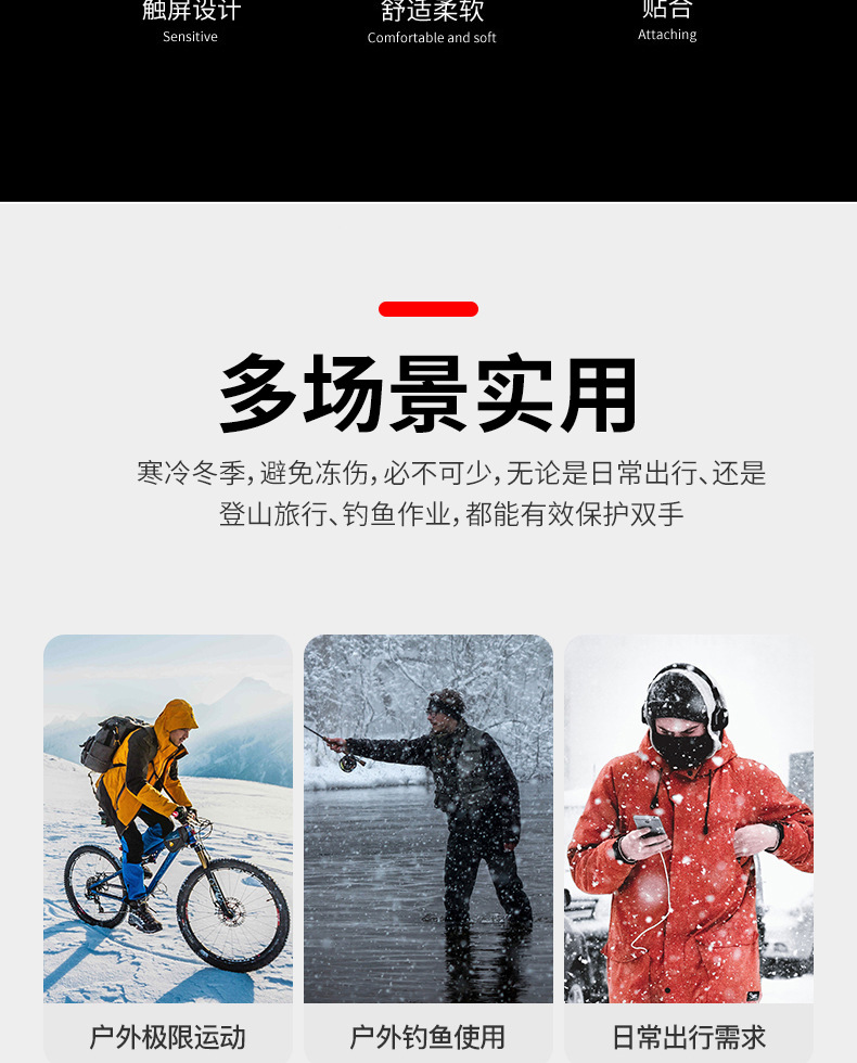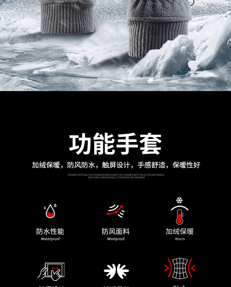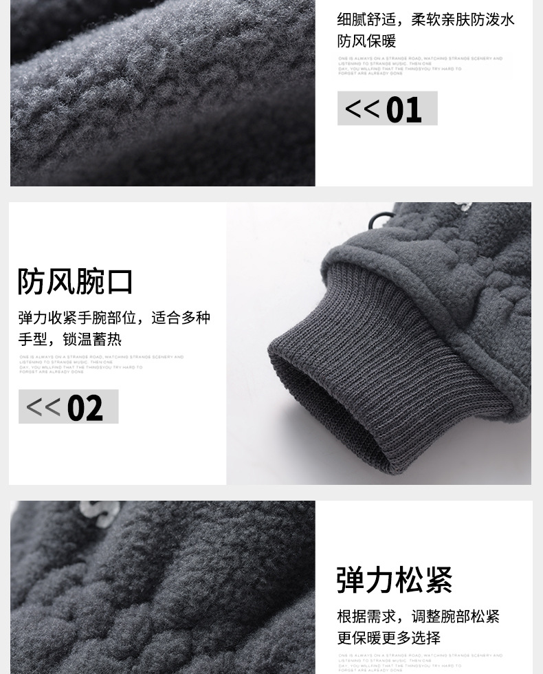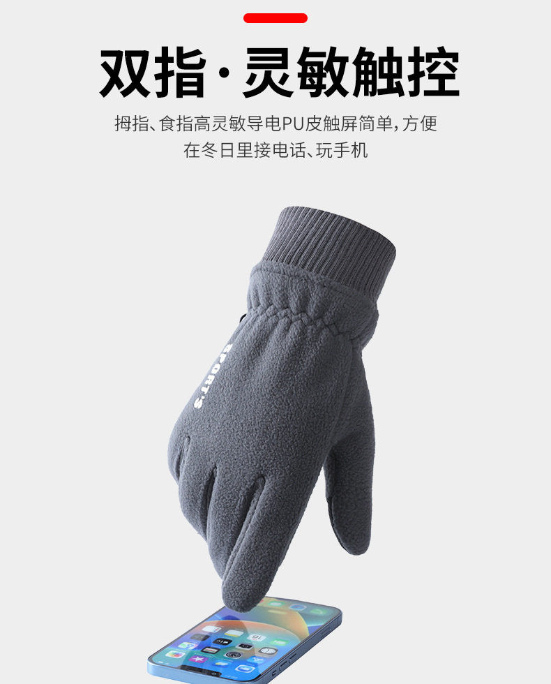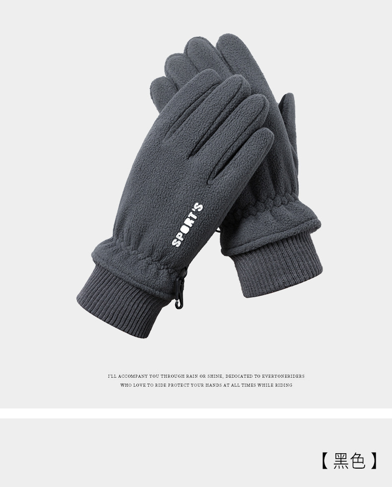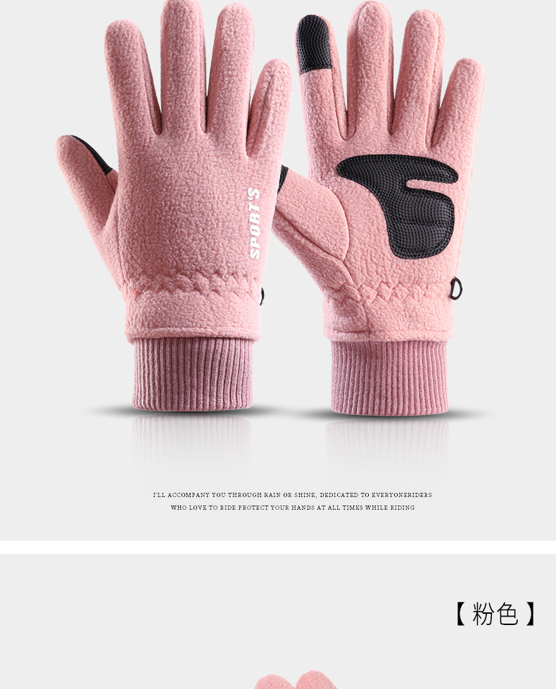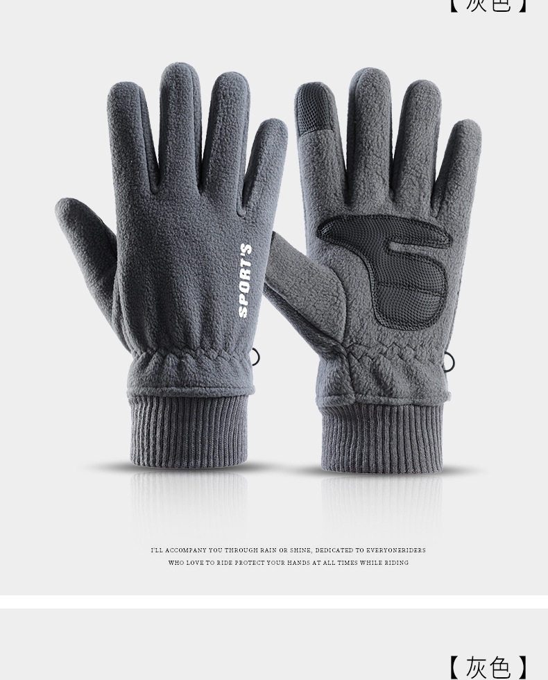 保暖手套男士摇粒绒秋冬季户外骑行运动加绒防风防寒防滑触屏手套