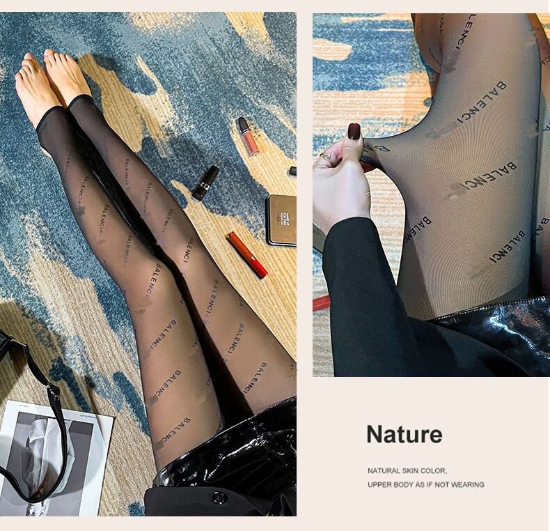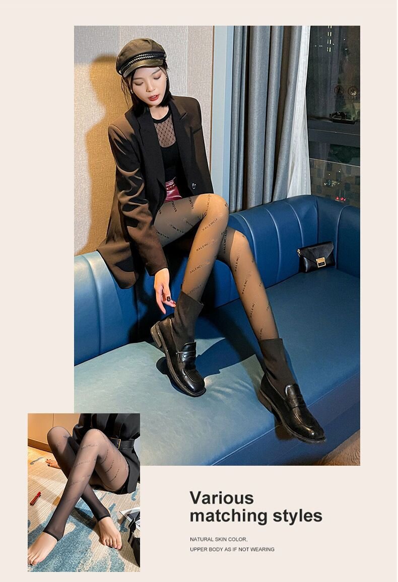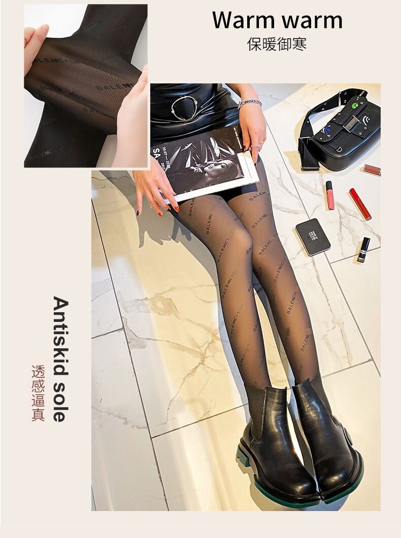 假透肉爱心波点植绒丝袜秋冬款黑透肤一体裤加绒加厚假透肤打底裤