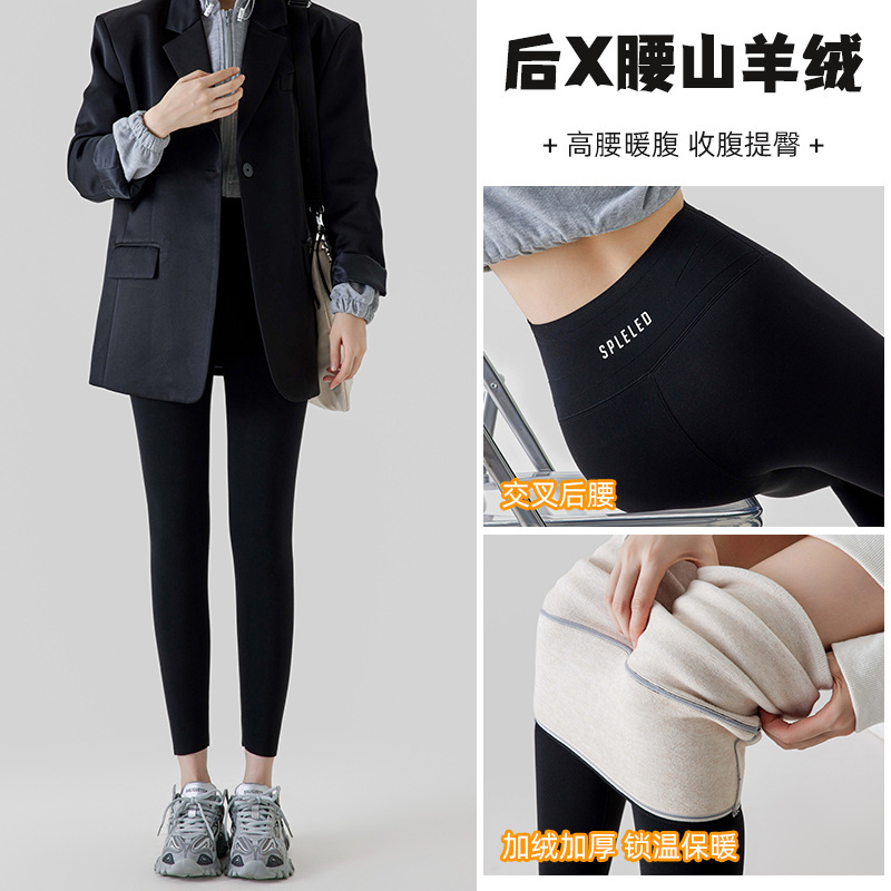 义乌秋冬加绒打底裤女外穿新款大码高腰收腹裤鲨鱼保暖显瘦芭比裤