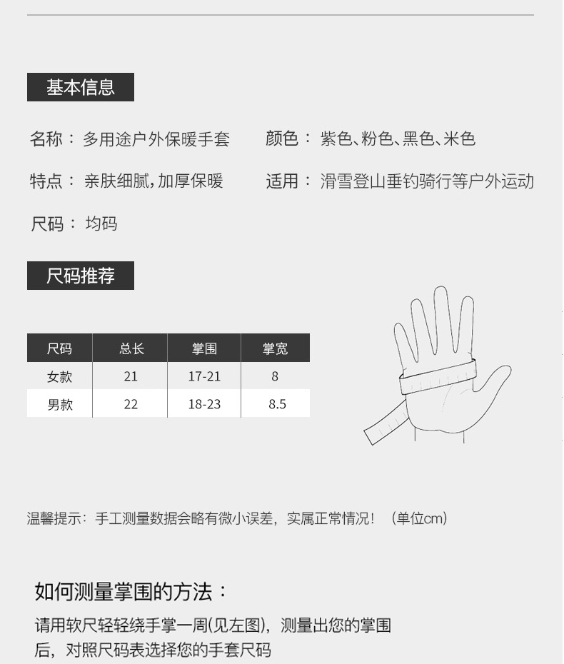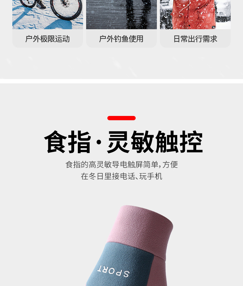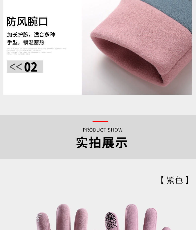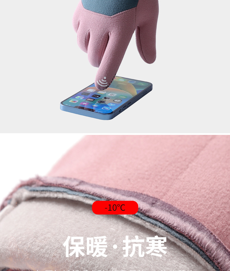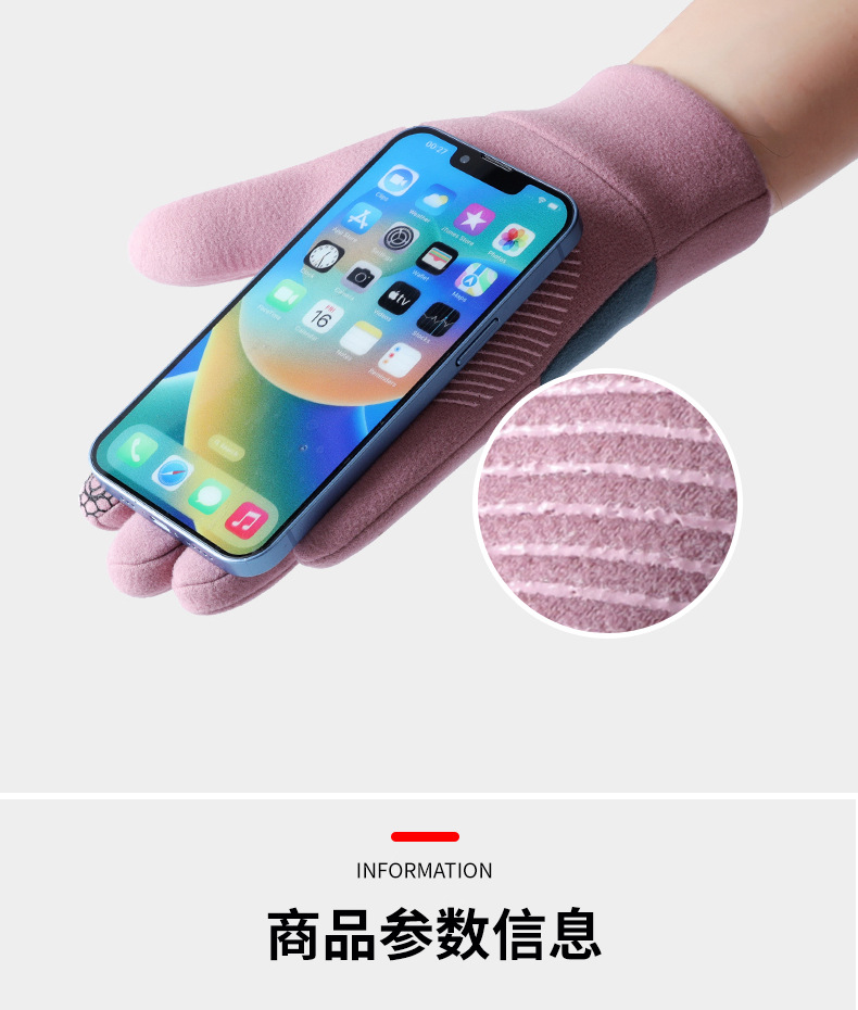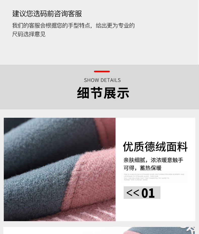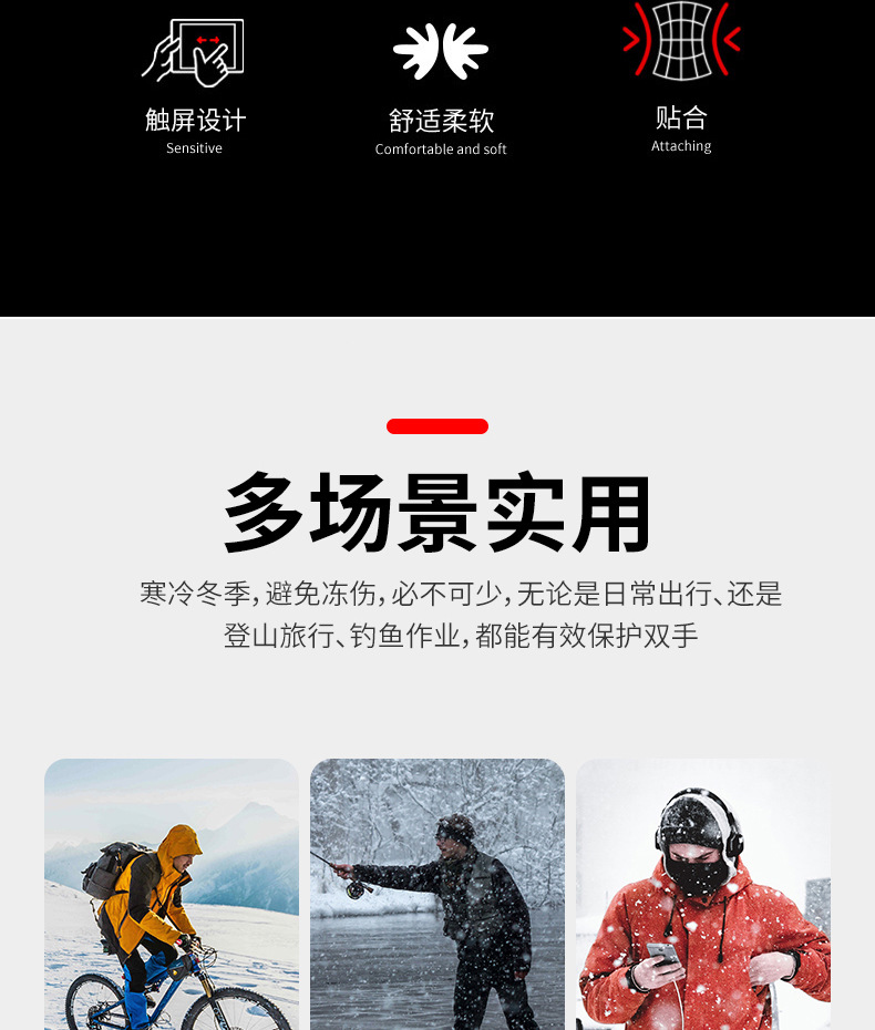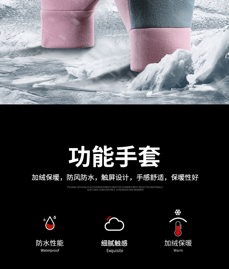 德绒手套秋冬季保暖自发热触屏秋冬季加绒户外骑行抗寒防风手套女