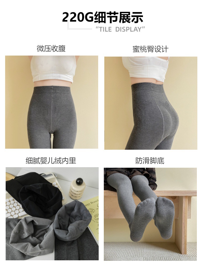 秋冬加绒加厚打底裤女外穿显瘦竖条纹灰色保暖羊绒袜高腰连裤袜