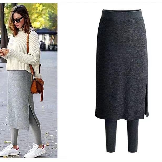 外贸欧美风200斤大码秋冬高腰打底裤裙女外穿加绒/薄款假两件裙裤