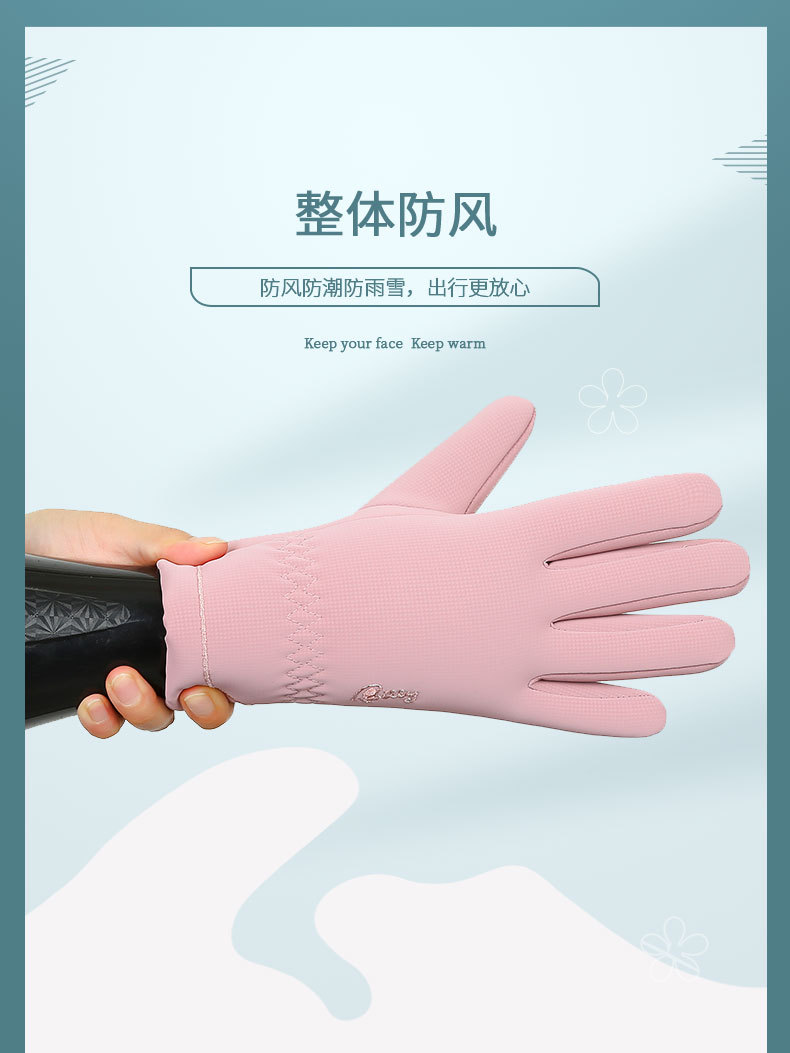 保暖手套女士秋冬季肤感加绒加防泼水版户外触屏骑行防风防寒手套