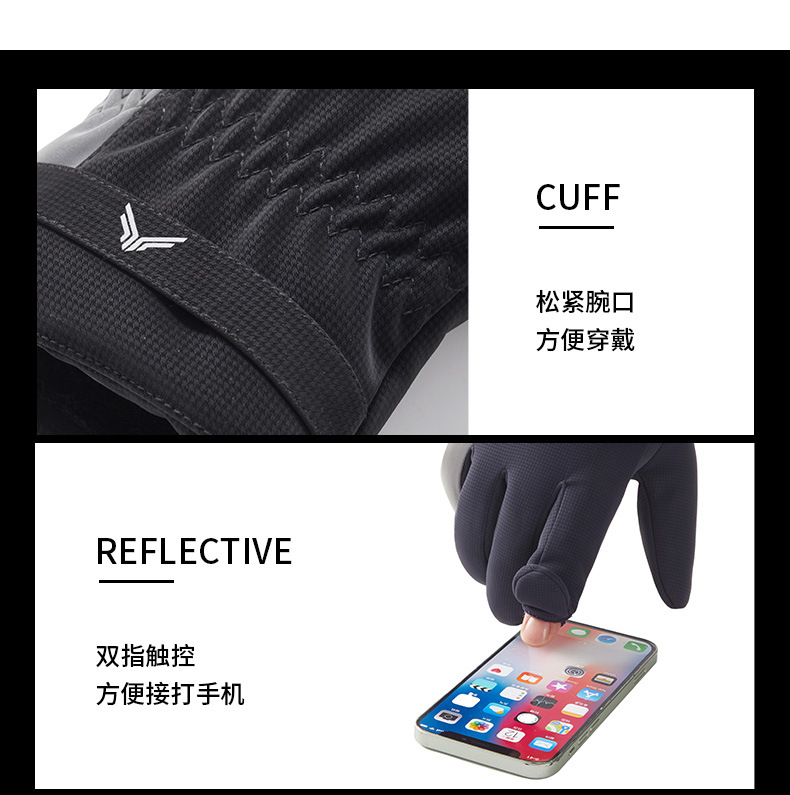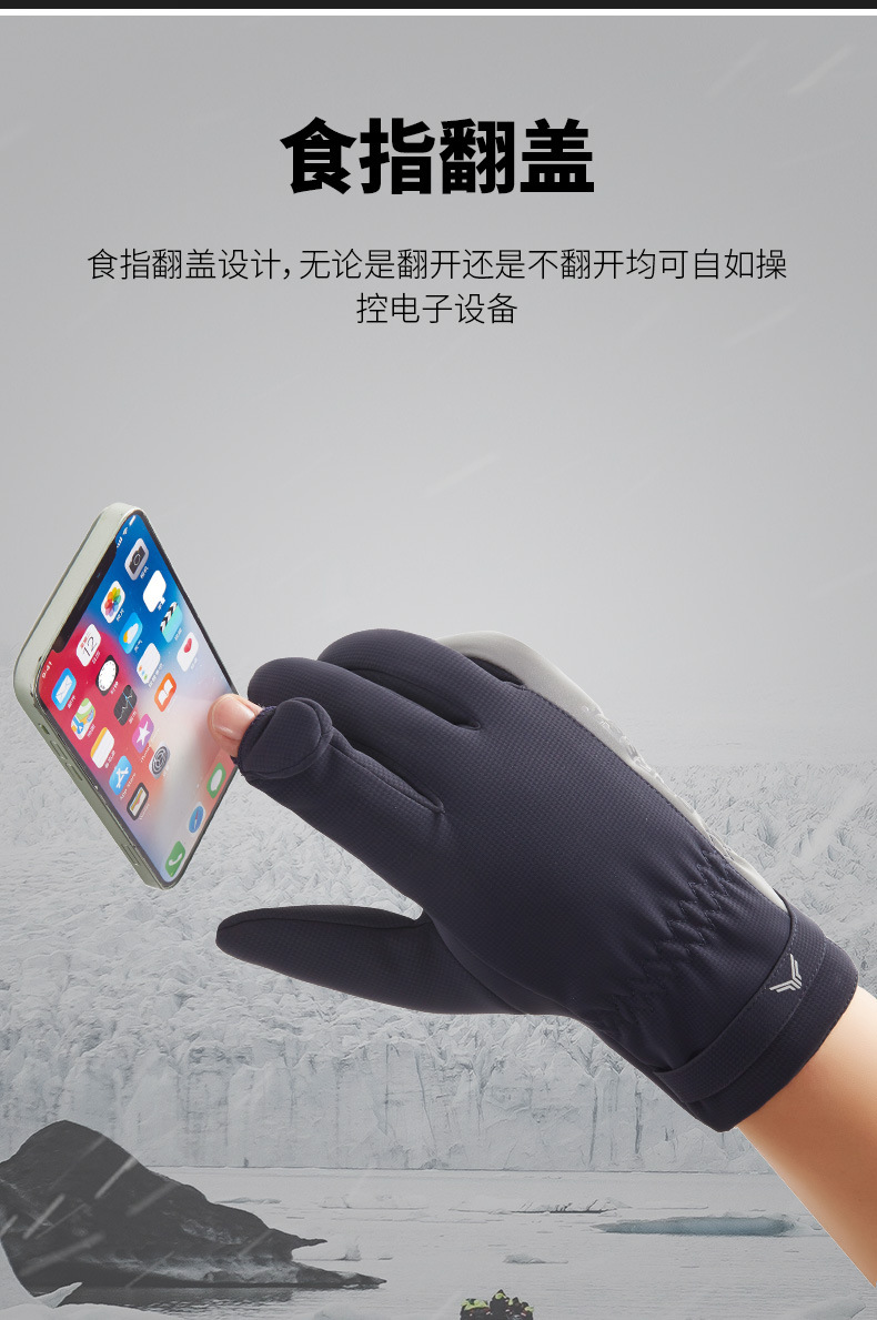 保暖手套冬季户外运动防风加绒加厚开车骑行运动翻盖露指手套男士
