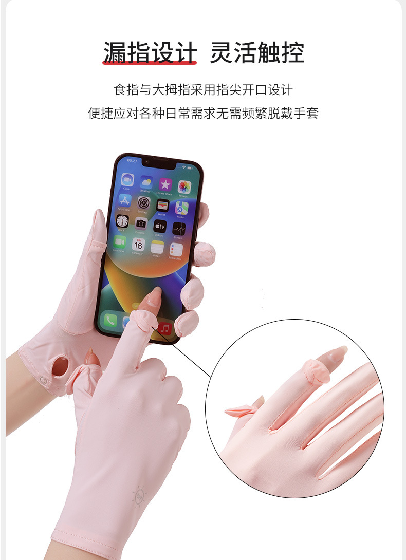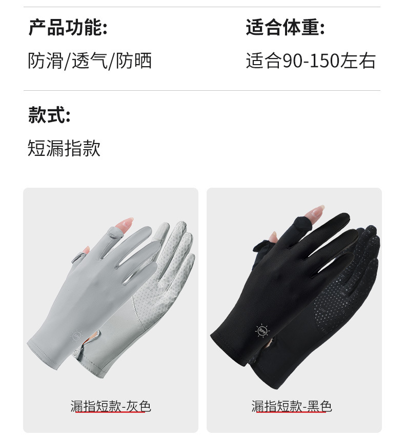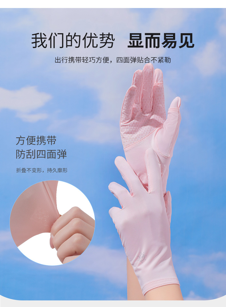 防晒手套女士夏季凉感户外防晒薄款透气防滑运动骑行冰丝漏指手套
