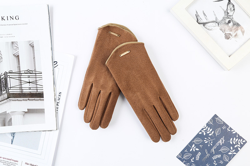新款冬季德绒手套女士逛街百搭骑行骑车防风加绒保暖手套翻指触屏