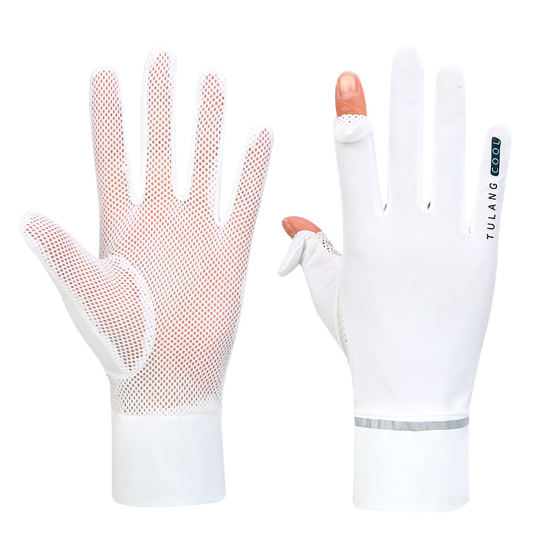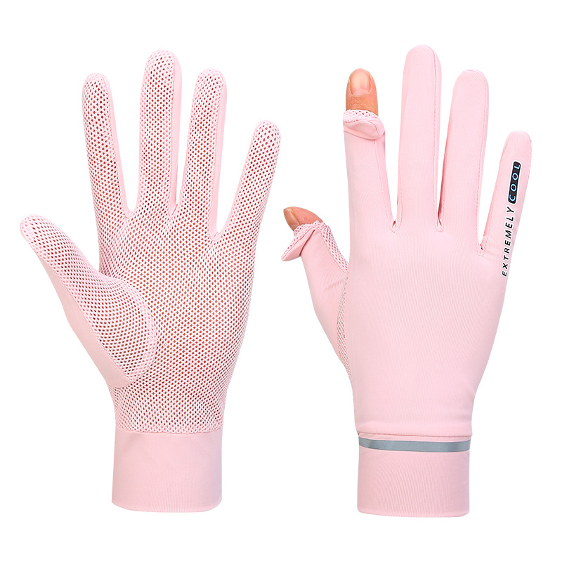 春夏季女士防晒手套二指防紫外线薄款冰丝凉感户外骑行全指手套女