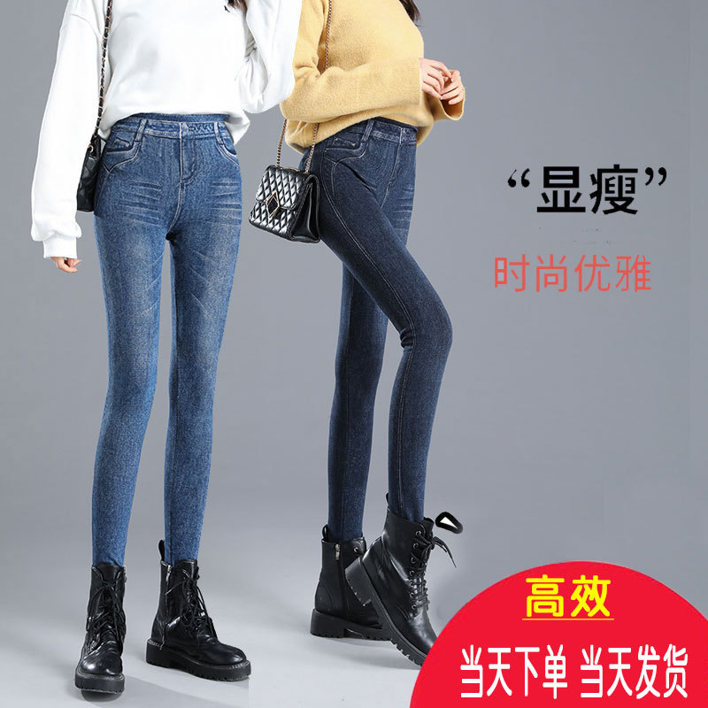 仿牛仔打底裤女批发秋冬外穿小脚裤高腰大码显瘦百搭铅笔裤棉裤面