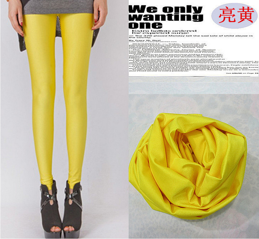 外贸大码女装新款弹力九分女裤夏季显瘦糖果色荧光打底裤