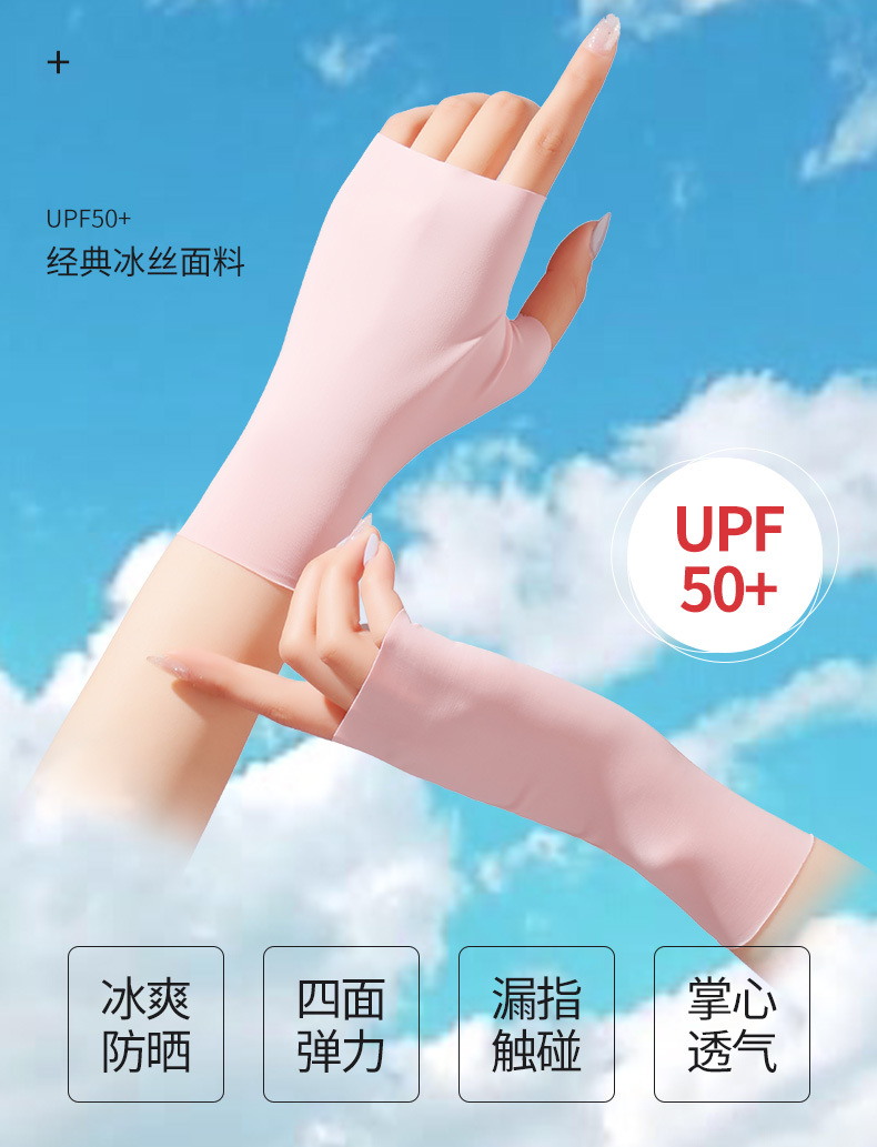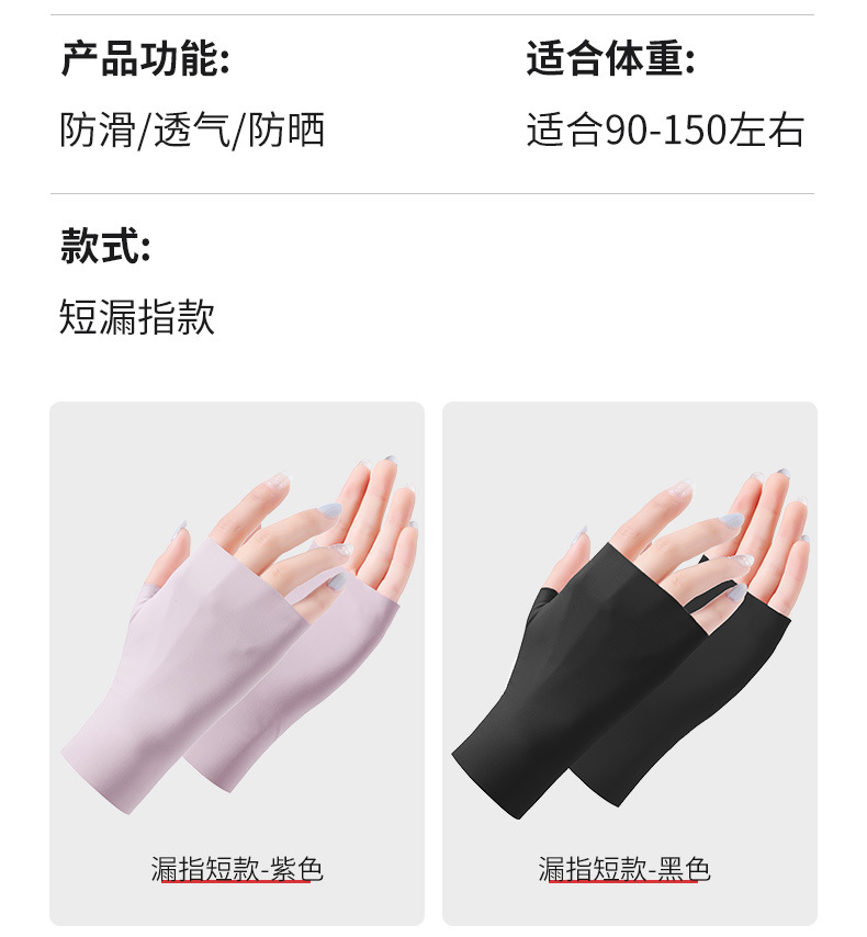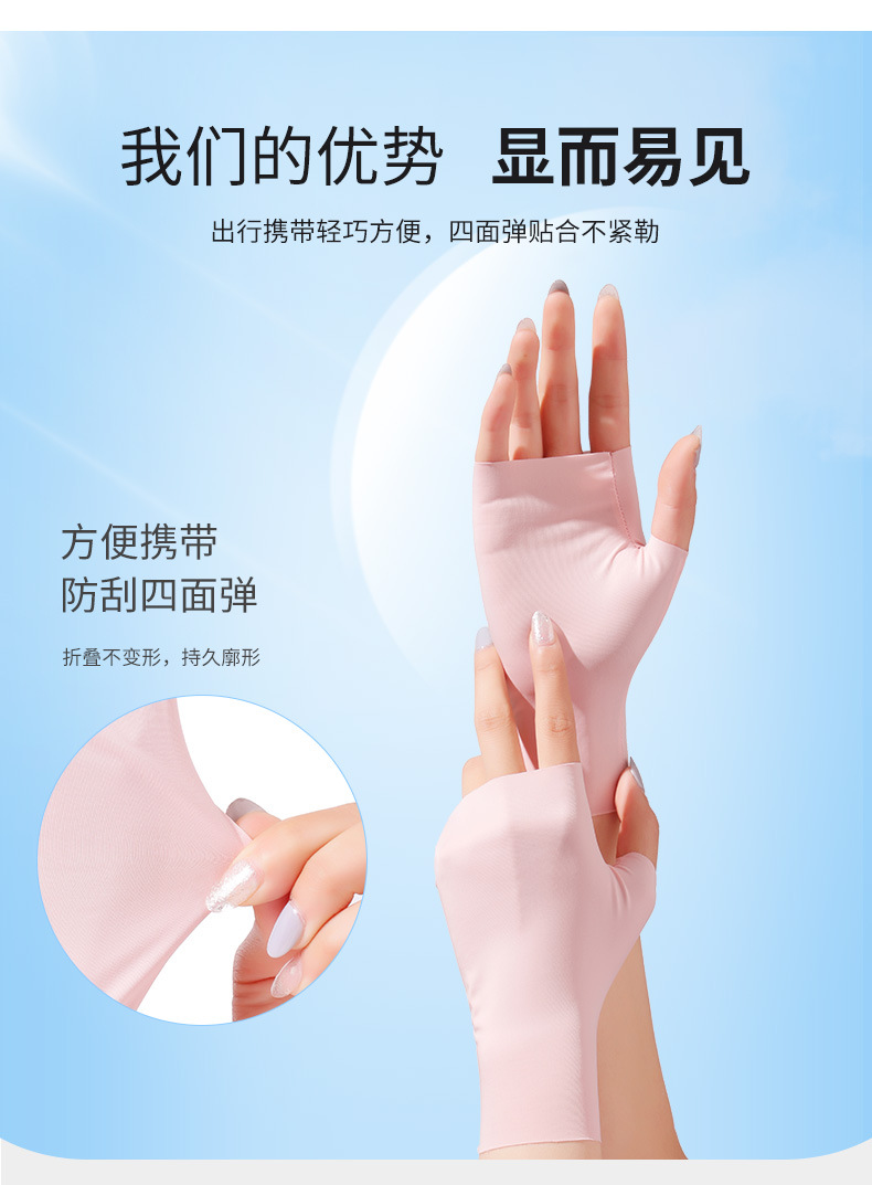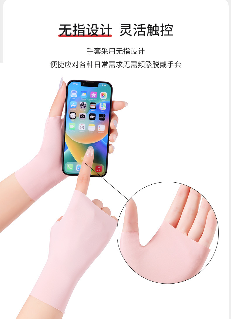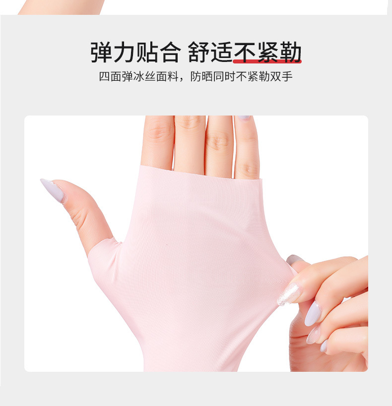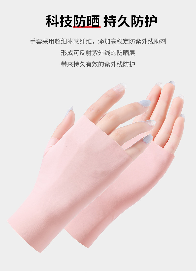 新款连指夏季防晒手套冰丝半指户外出行骑行防紫外线美甲薄款手套